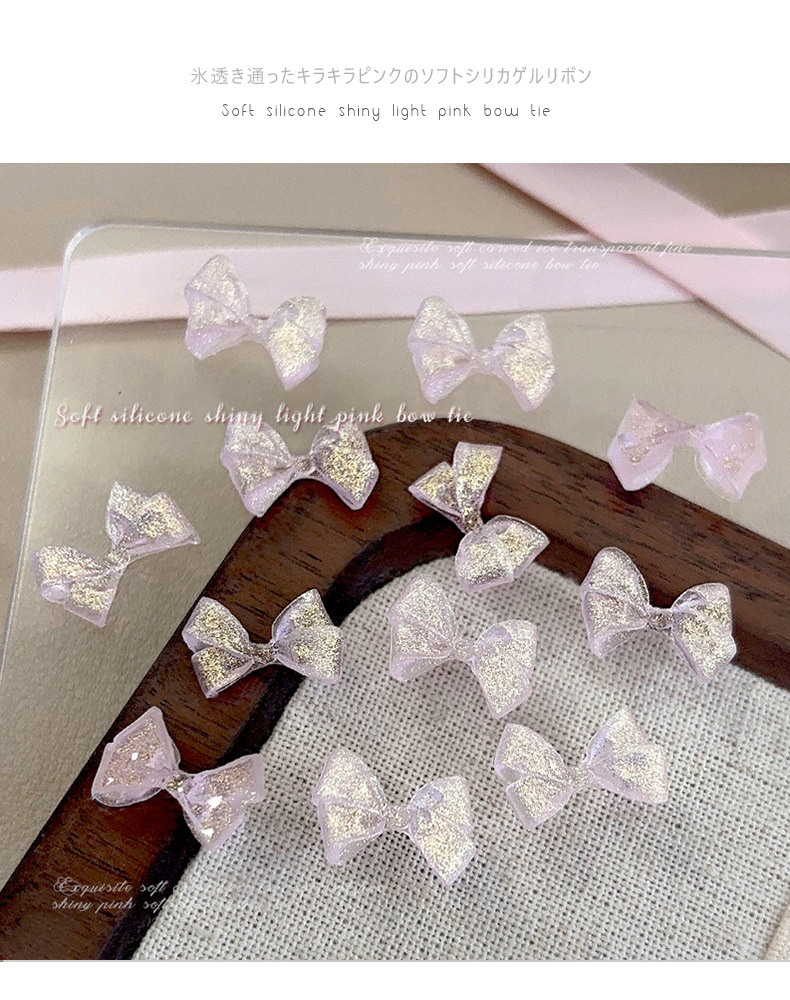 부드러운 조각 고급 반짝이 나비 매듭 네일 아트 쥬얼리 입체 얼음 투명 핑크 나비 넥타이 diy 웨어러블 네일 다이아몬드 액세서리