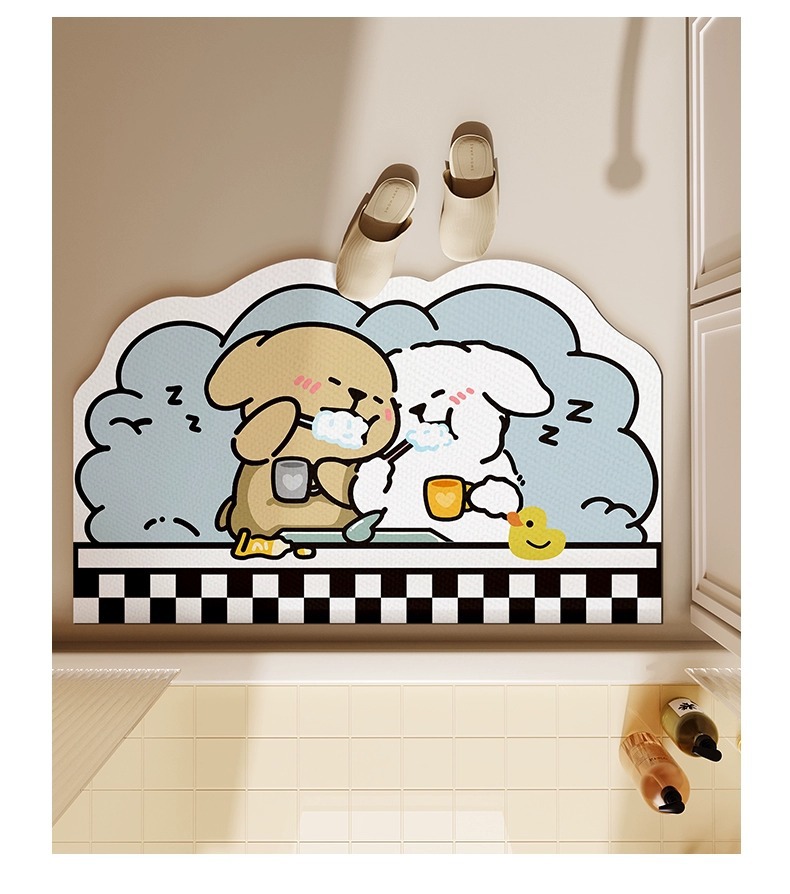 만화 귀여운 욕실 바닥 매트, 욕실 문, 규조토 진흙 흡수성 미끄럼 방지 도어 매트, 화장실 속건 카펫스토어 가기