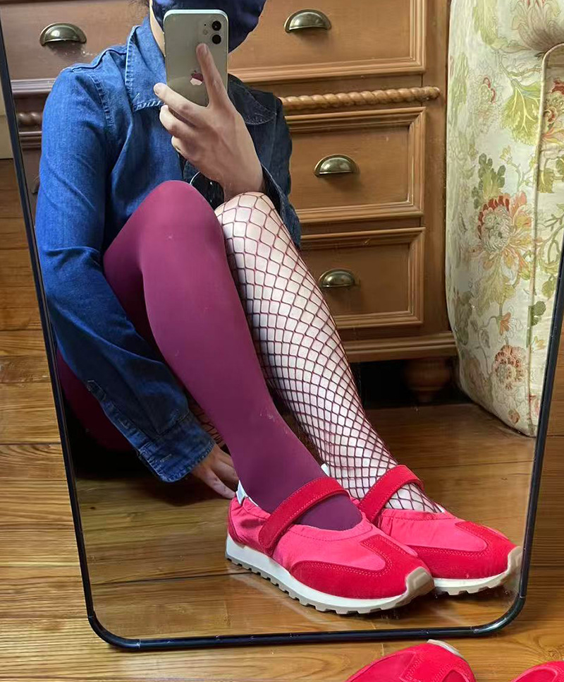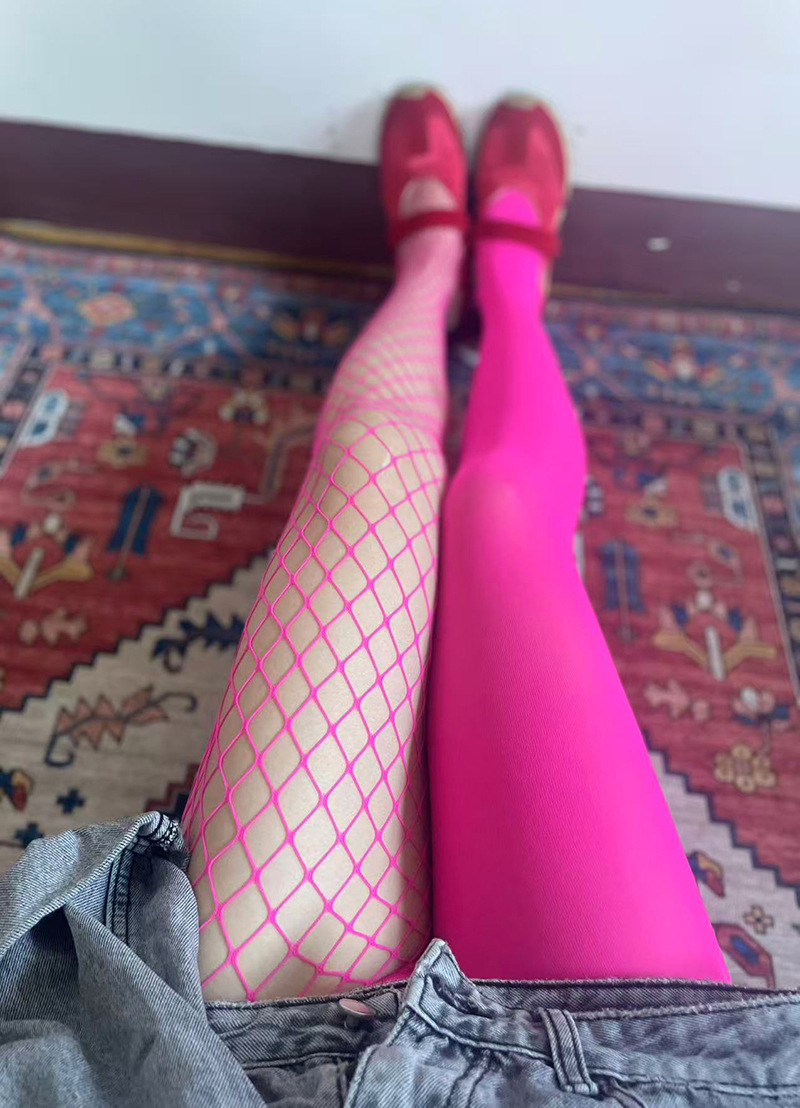 左右腿虽材质迥异,却巧妙运用“同色系糖果色”精心配搭。无论是活力四射的蜜桃粉、清新甜美的荧光绿、还是元气满满的柠檬黄... 每一款都保证了视觉上的和谐统一,碰撞出独特而协调的时髦感。