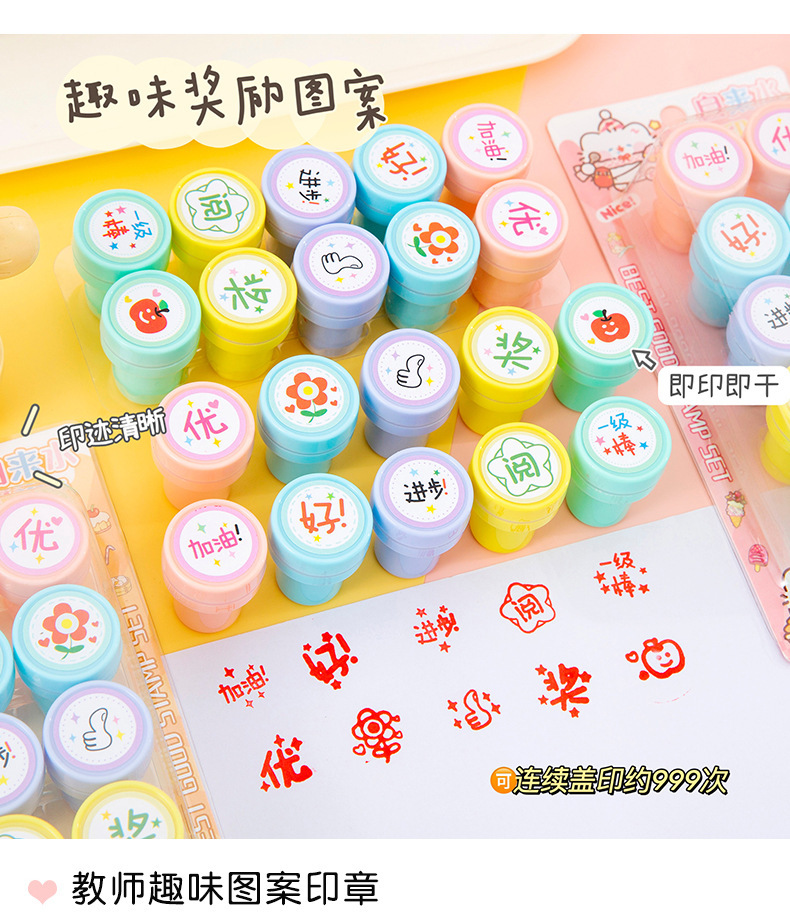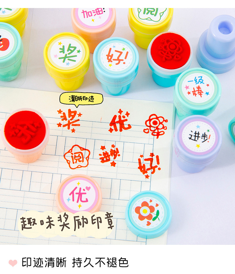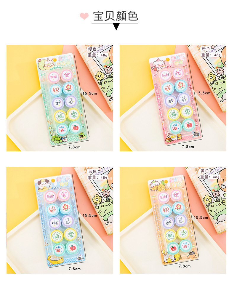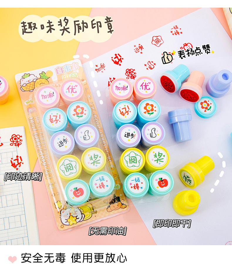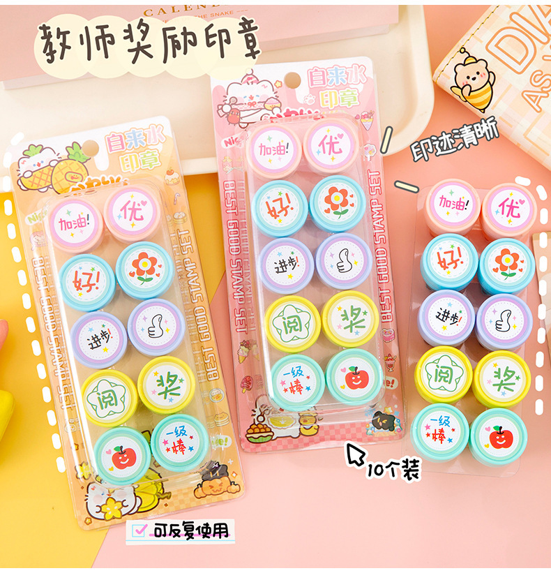 만화 어린이 칭찬 및 보상 스탬프 세트 10팩 수돗물 스탬프 교사의 의견 학생을 격려하는 스탬프스토어 가기