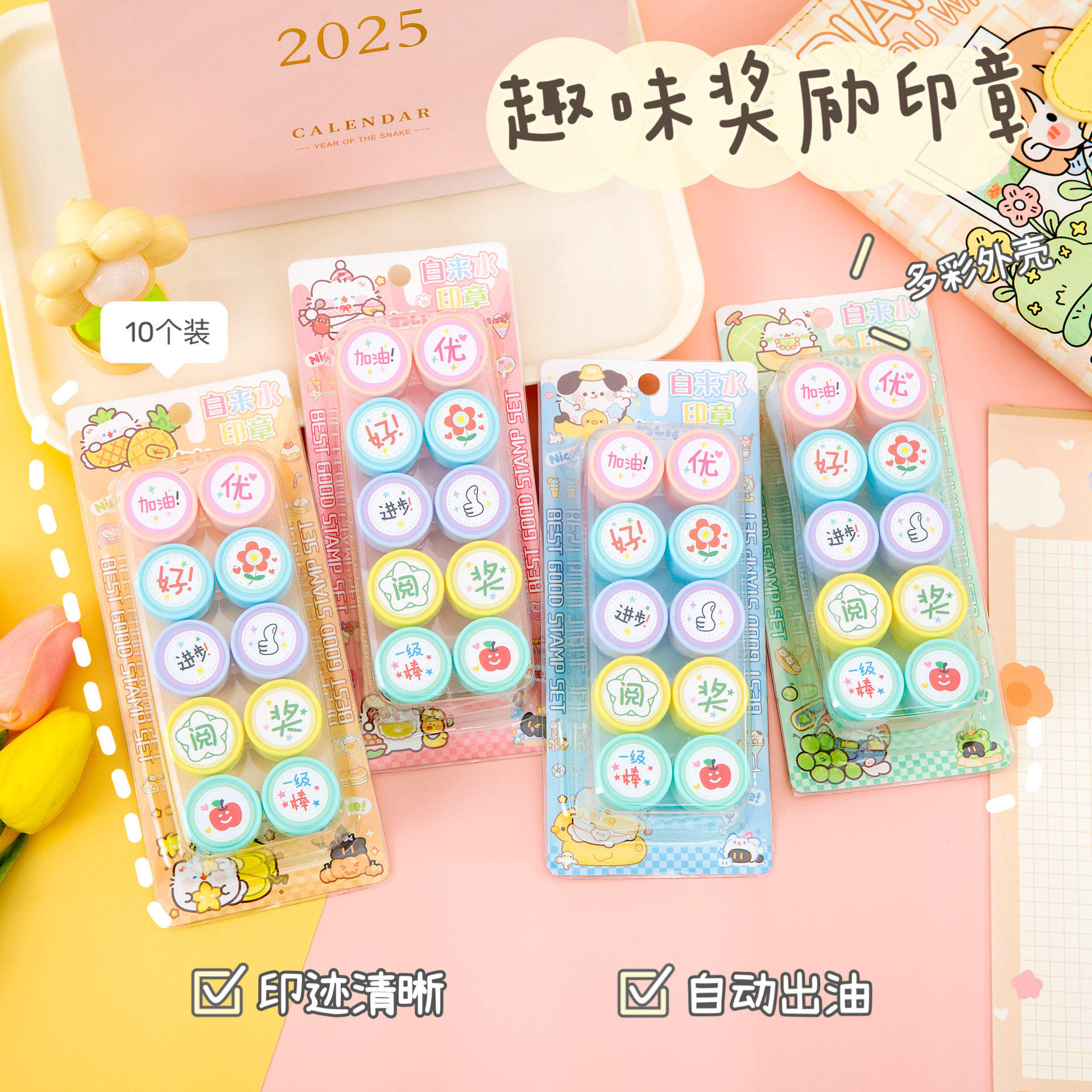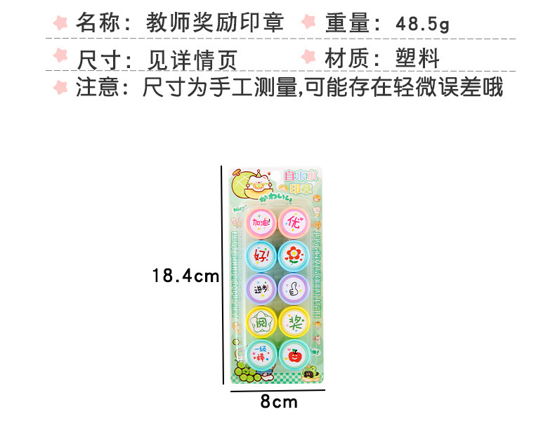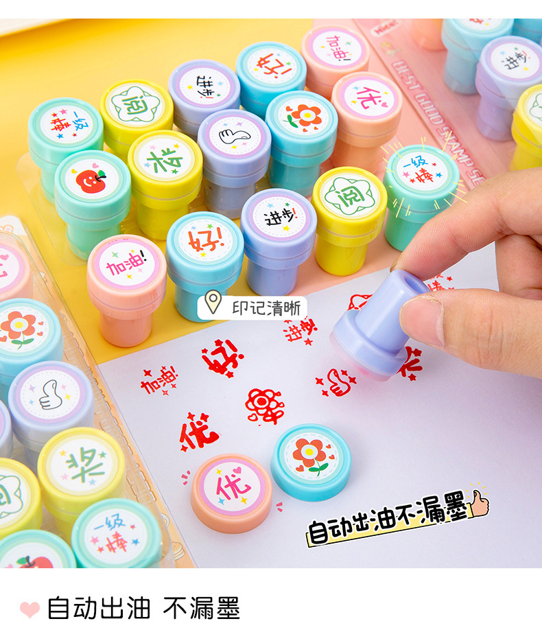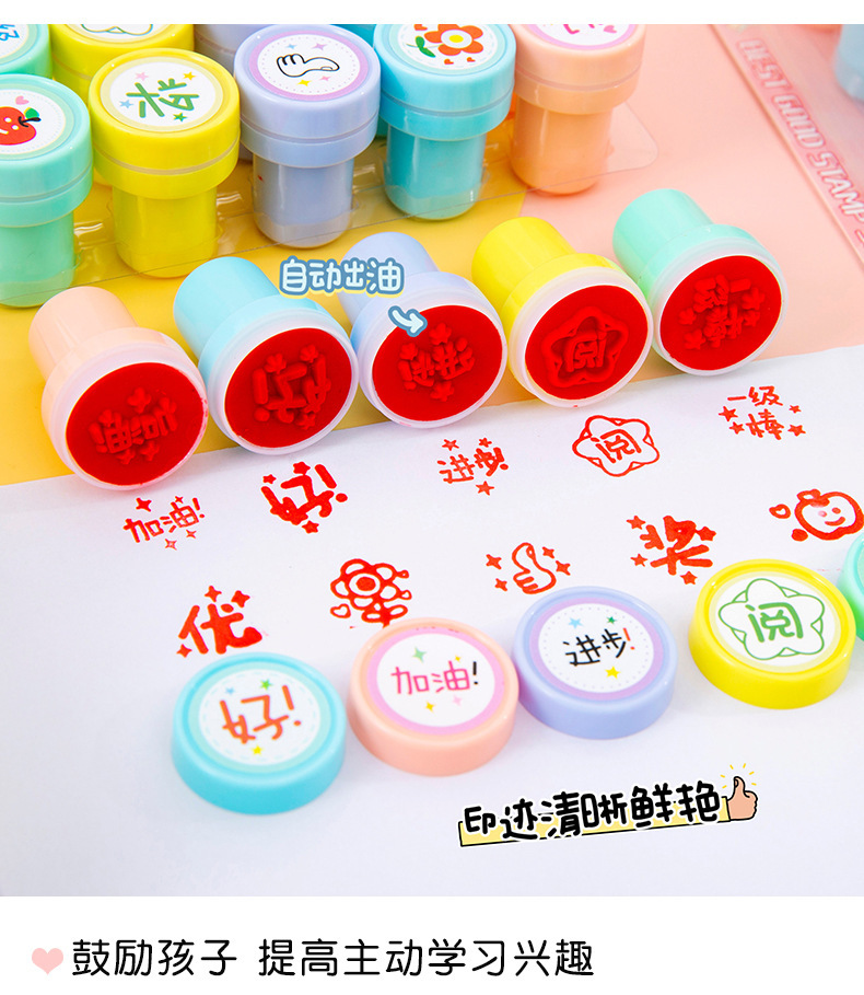 만화 어린이 칭찬 및 보상 스탬프 세트 10팩 수돗물 스탬프 교사의 의견 학생을 격려하는 스탬프스토어 가기