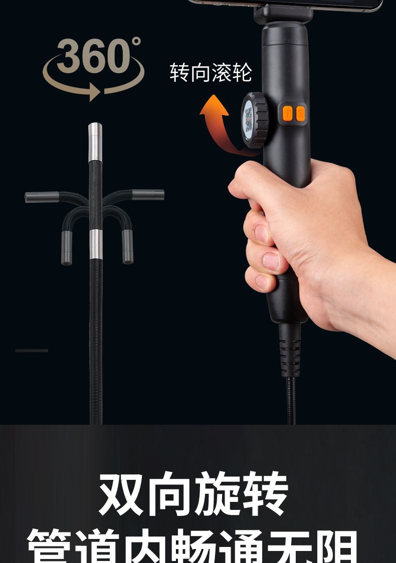 휴대 전화 내시경 HD 카메라 360도 회전 파이프라인 산업용 자동차 유지 보수 엔진 카본 에어컨