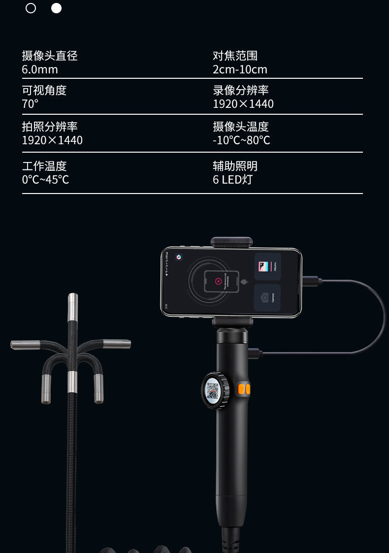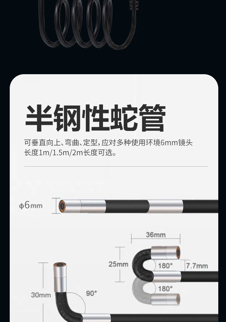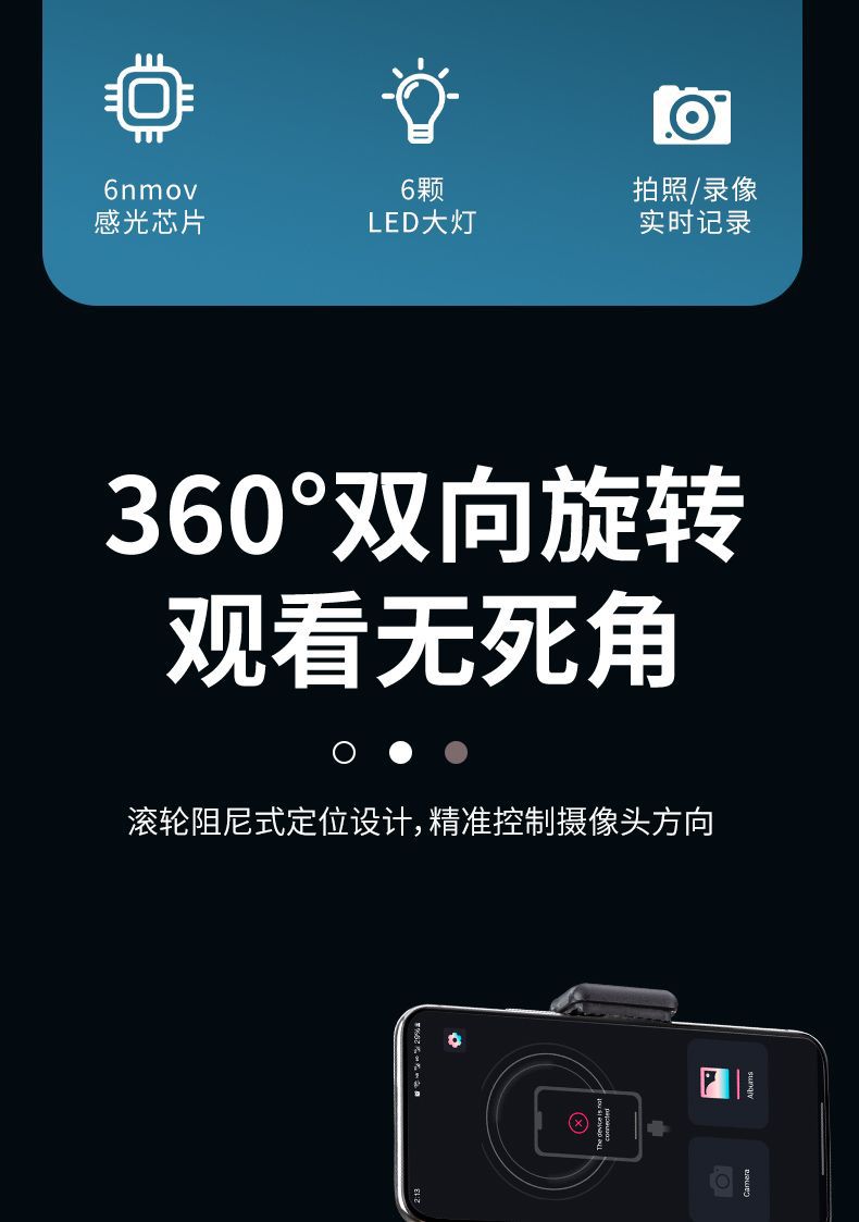 • Android 및 Apple과 완벽하게 호환 [6MM 렌즈 360도 조향] - 2m 하드 와이어