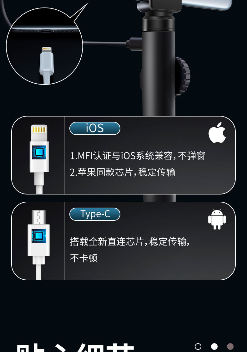 • Android 및 Apple과 완벽하게 호환 [6MM 렌즈 360도 조향] - 1m 하드 와이어