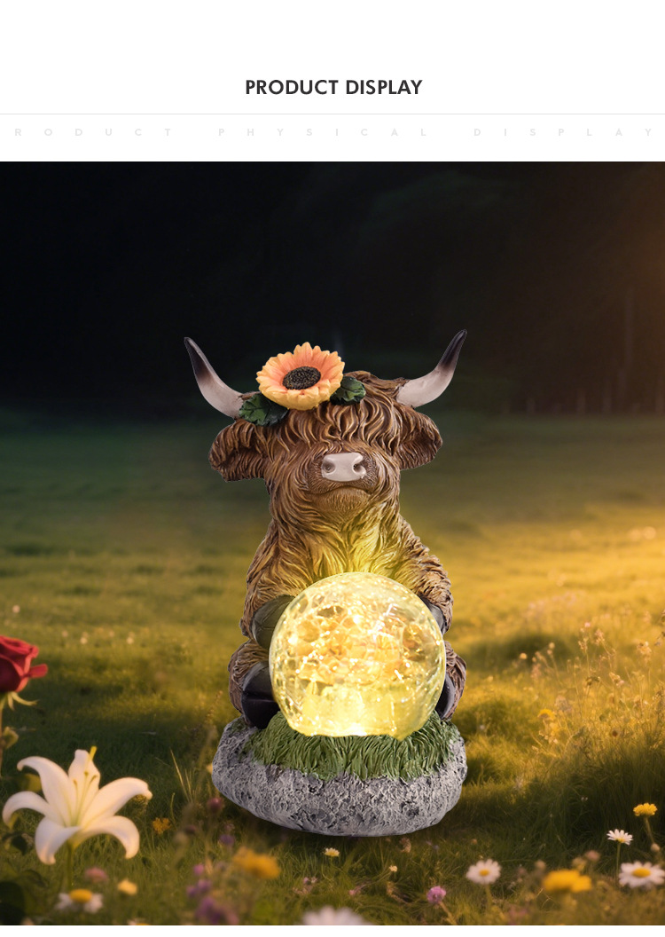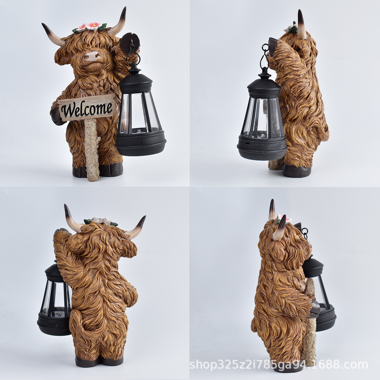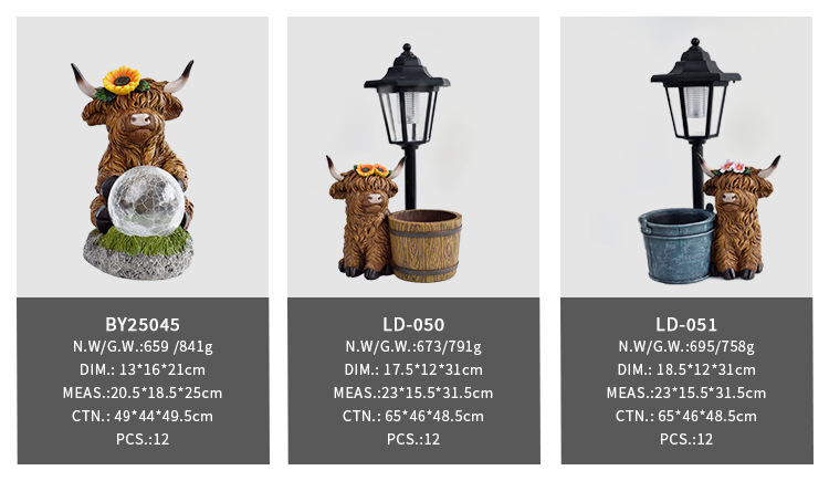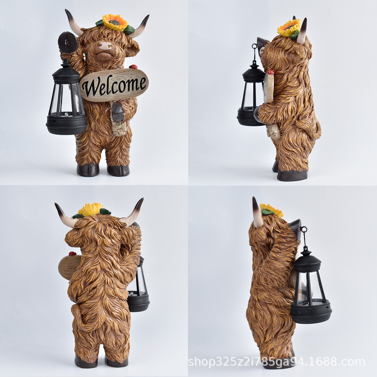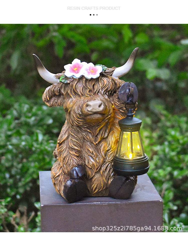 국경 간 태양 에너지 높고 낮은 암소 장식품 야크 정원 동상 야외 정원 장식 원예 수지 공예품스토어 가기