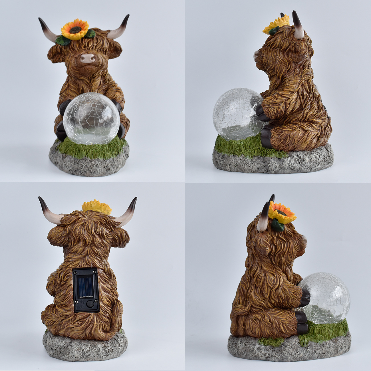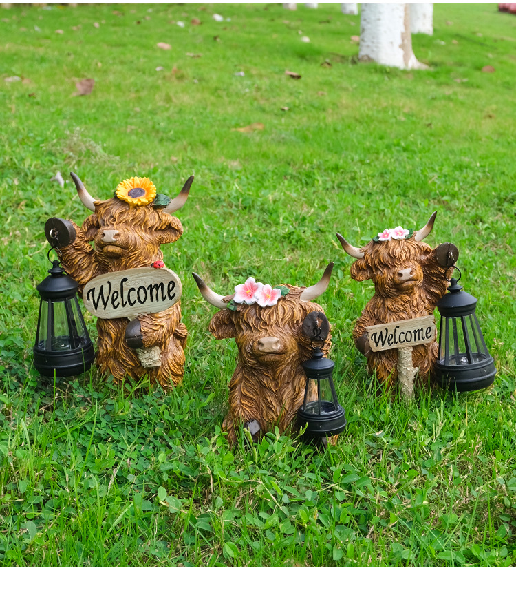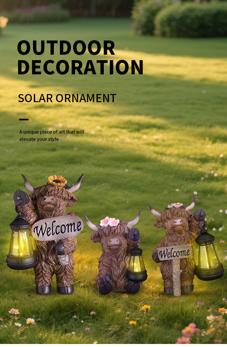 국경 간 태양 에너지 높고 낮은 암소 장식품 야크 정원 동상 야외 정원 장식 원예 수지 공예품