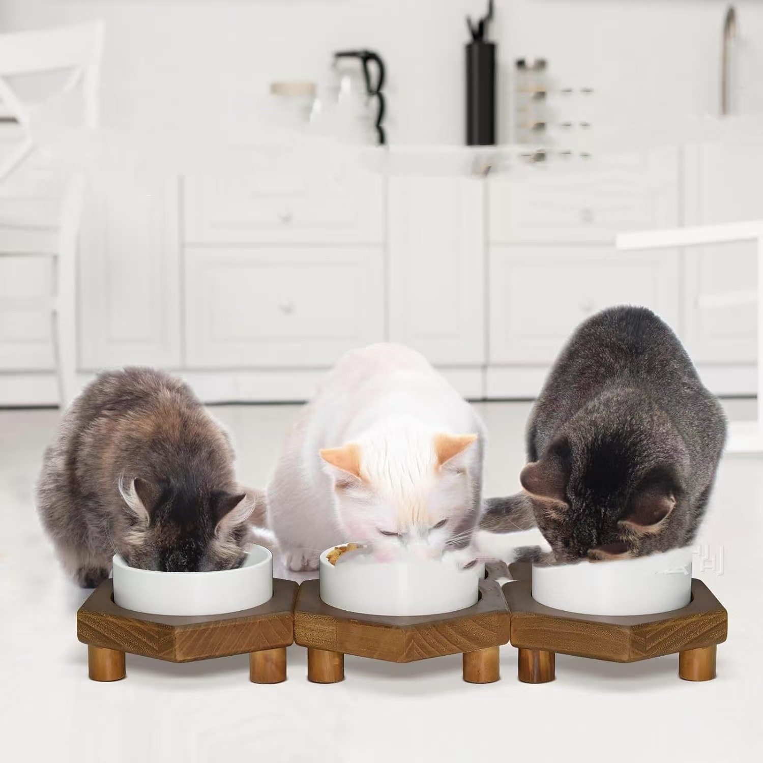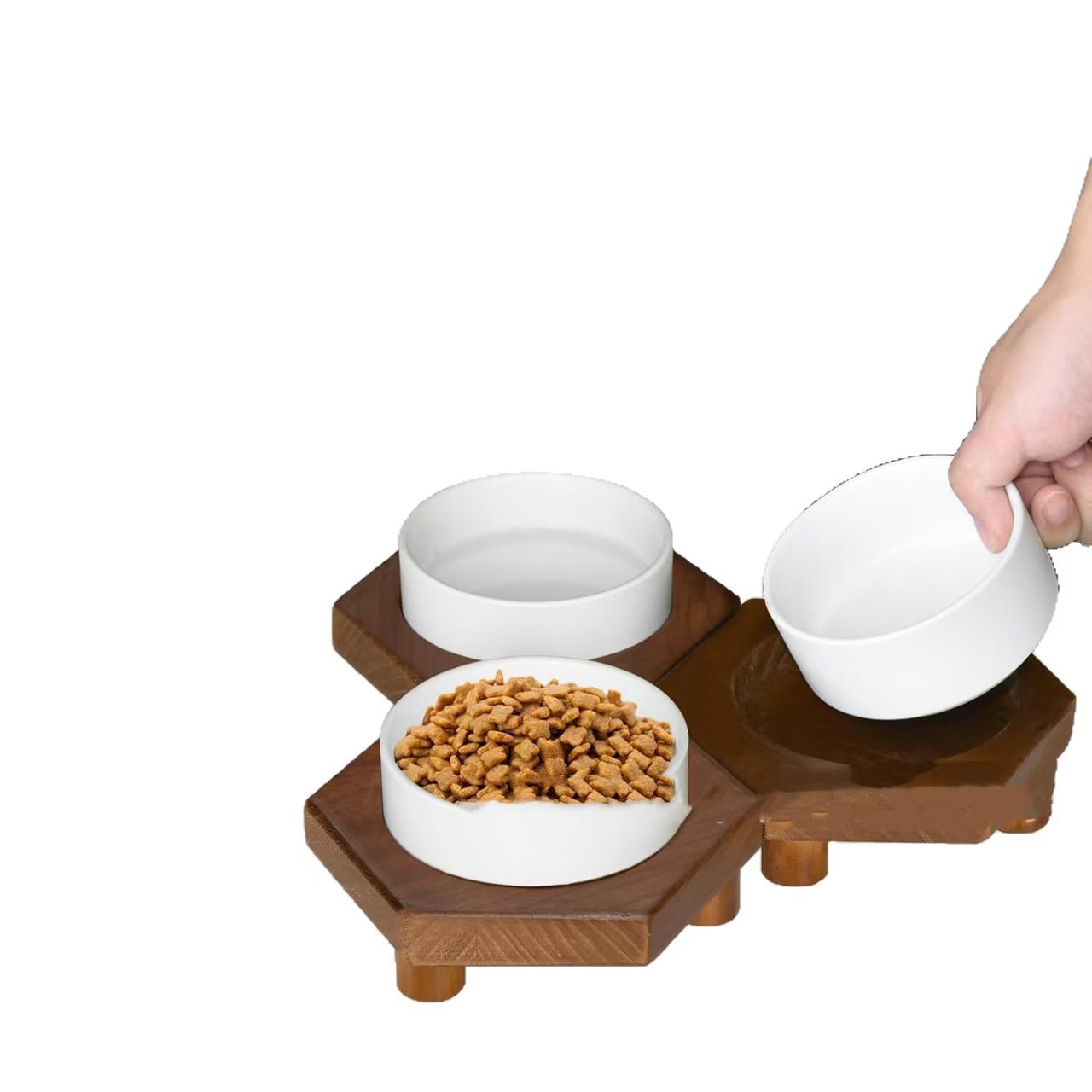 국경 간 목재 고양이 그릇 랙 단단한 목 보호 개 식수 랙 무료 조합 애완 동물 고양이 먹이 그릇 피더스토어 가기