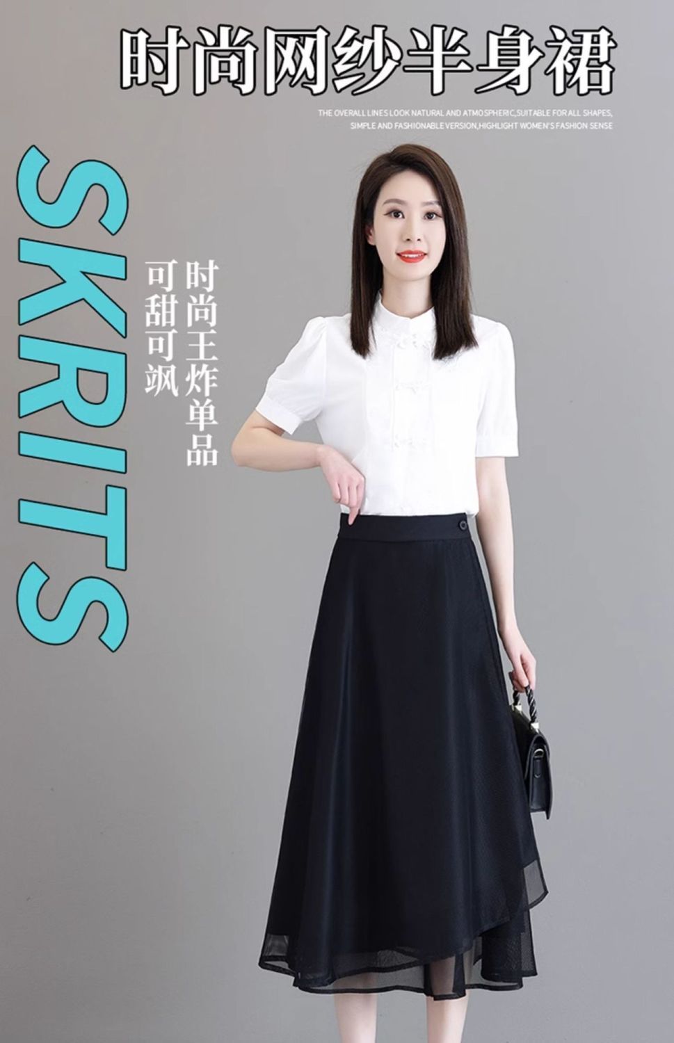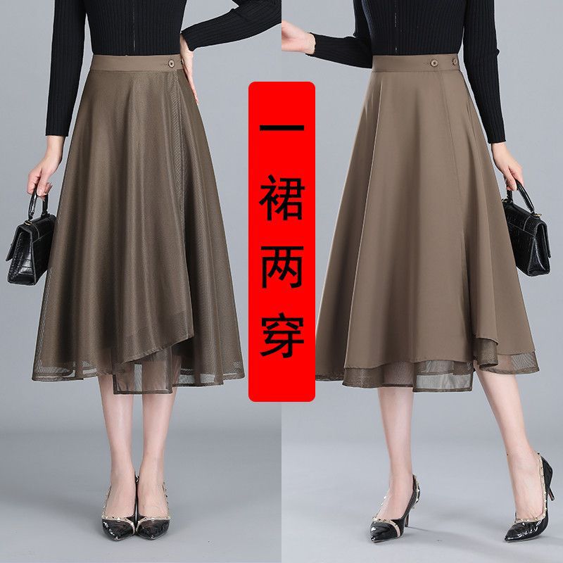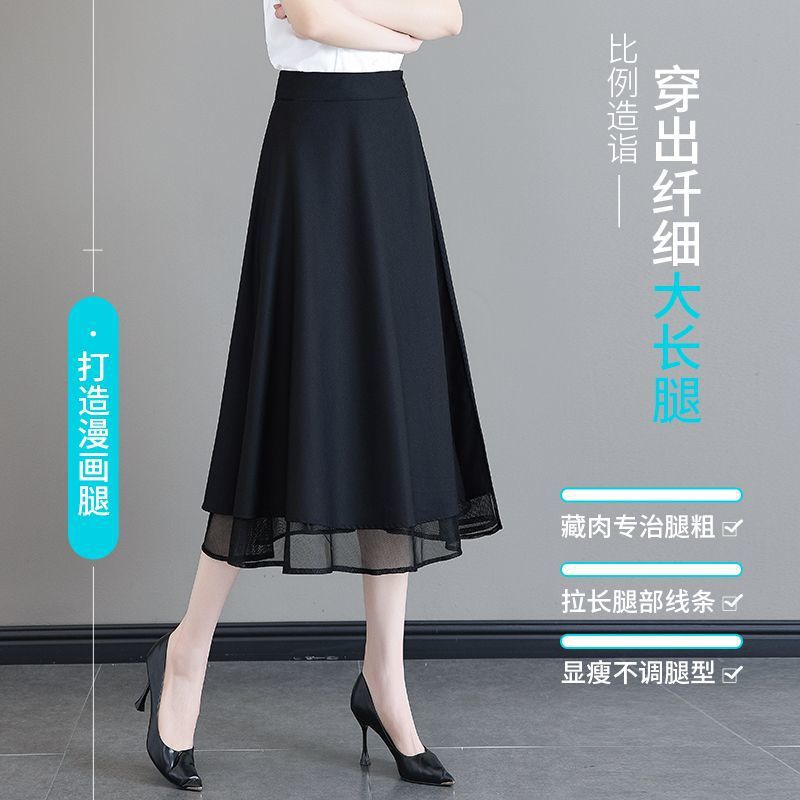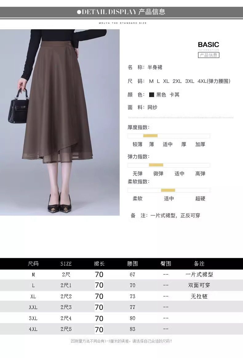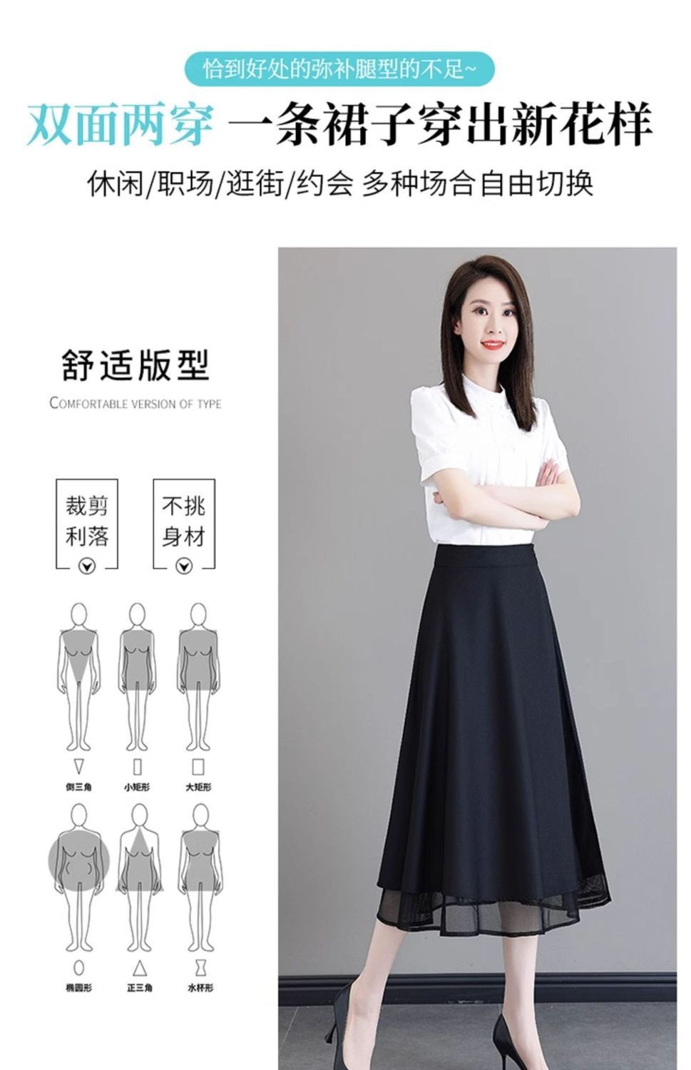 드레이프 거즈 스커트 원피스 하이엔드 리버시블 스커트 메쉬 여름 2024 하이웨이스트 중간 길이 새로운 스타일 슬리밍스토어 가기
