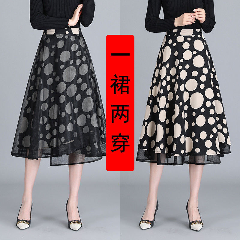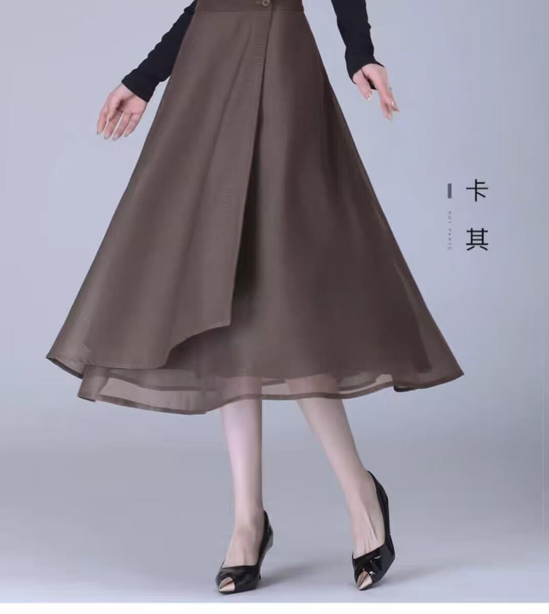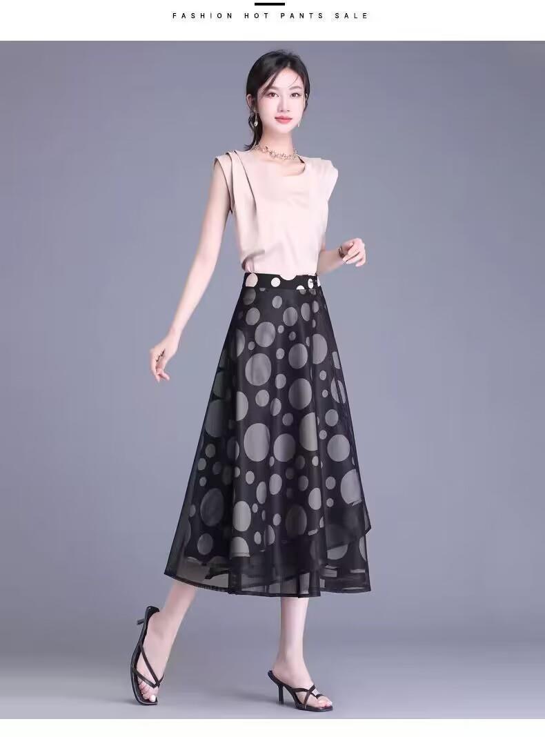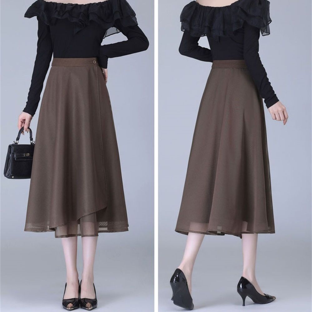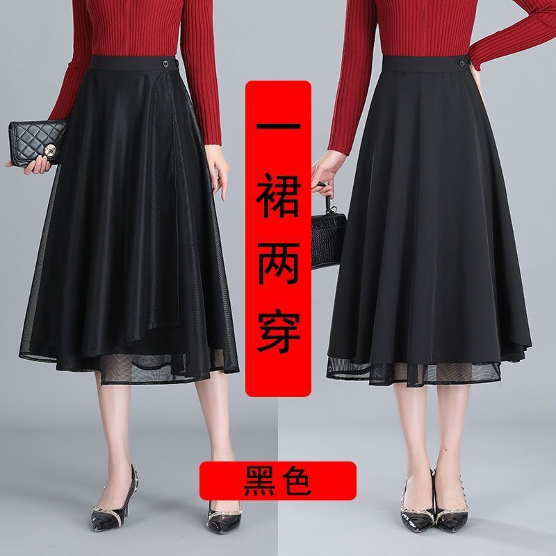 드레이프 거즈 스커트 원피스 하이엔드 리버시블 스커트 메쉬 여름 2024 하이웨이스트 중간 길이 새로운 스타일 슬리밍스토어 가기