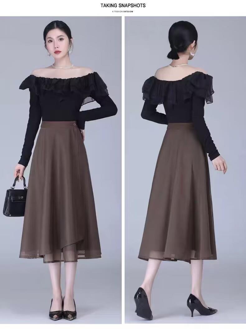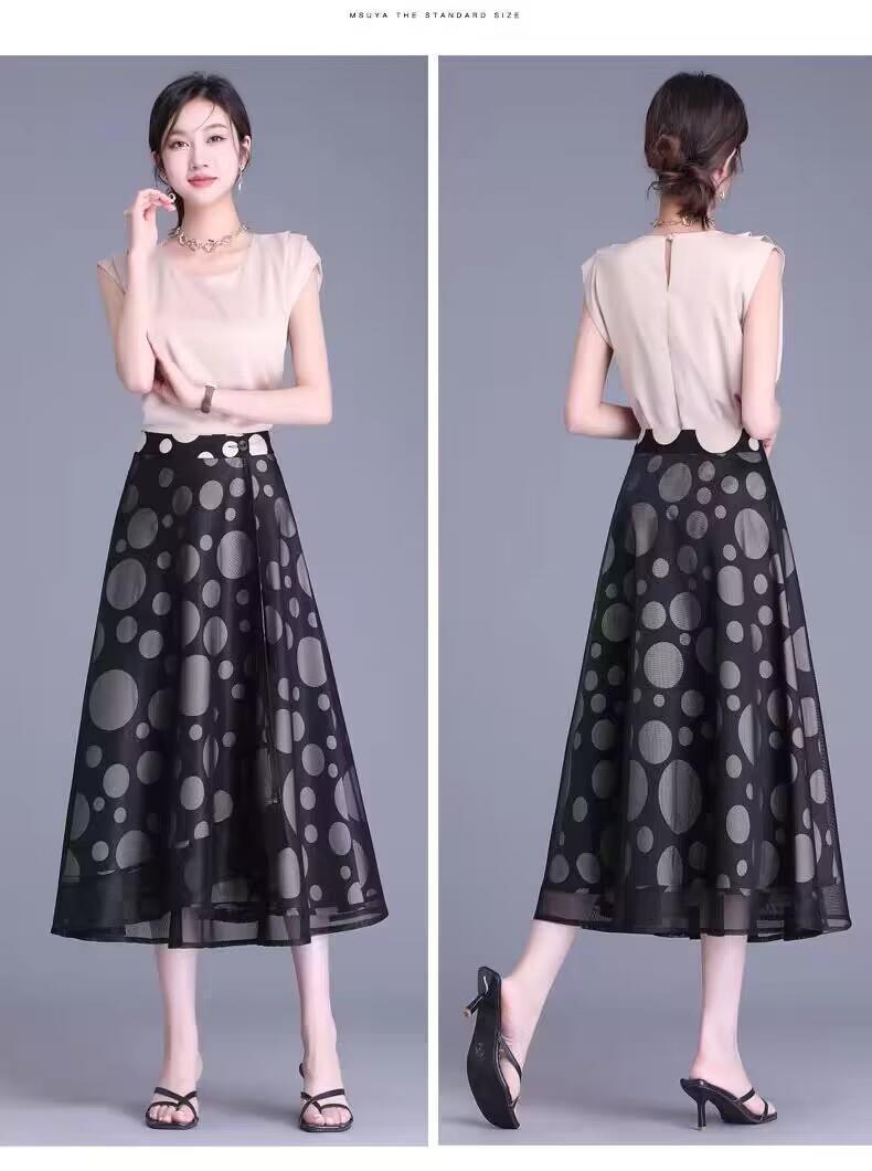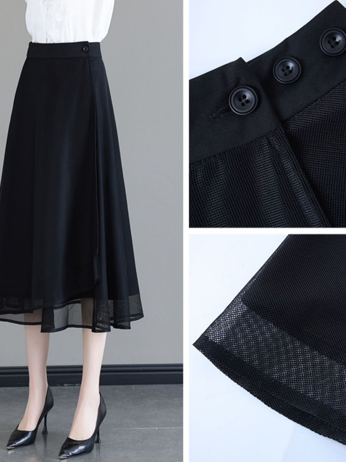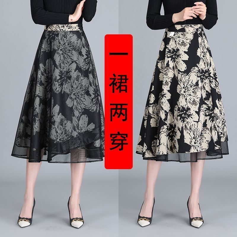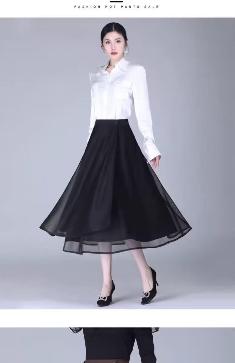드레이프 거즈 스커트 원피스 하이엔드 리버시블 스커트 메쉬 여름 2024 하이웨이스트 중간 길이 새로운 스타일 슬리밍스토어 가기