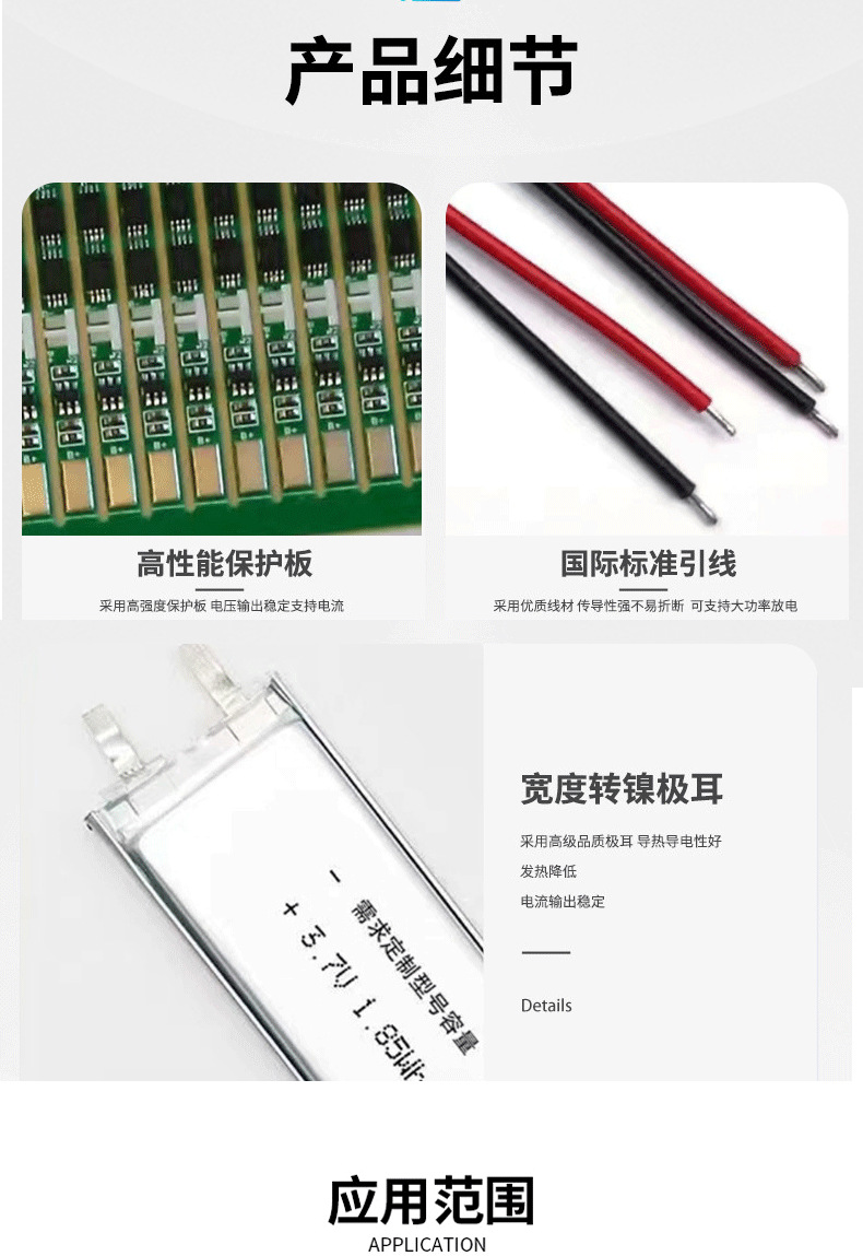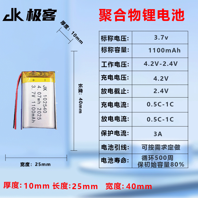 • 102540-1100mAh 배터리 셀 + 보호 보드 콘센트