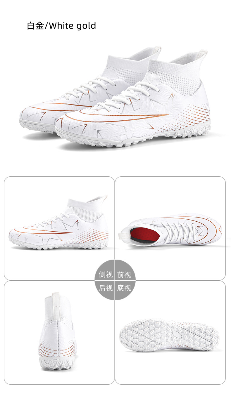 남성과 여성을 위한 크로스보더 하이탑 축구화, 대형 청소년 양말, 롱 스파이크, 스매시 스파이크, 학생 스포츠 경기 트레이닝 슈즈
