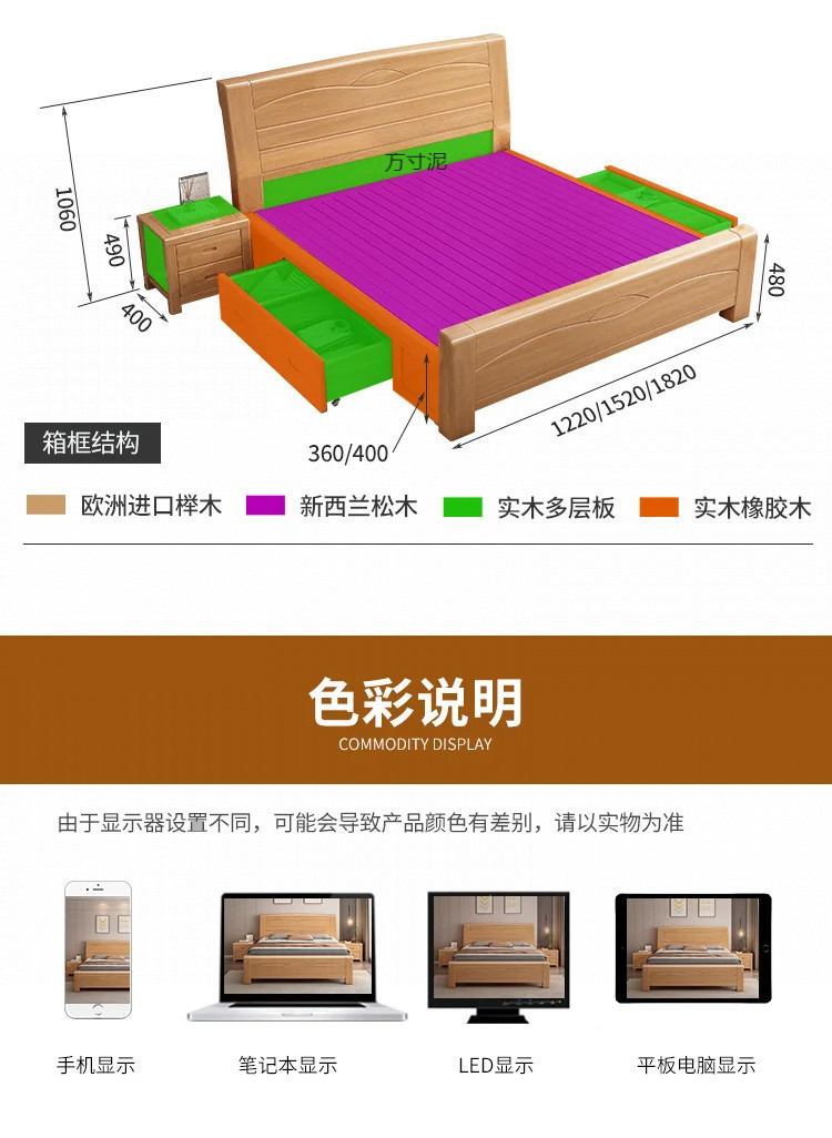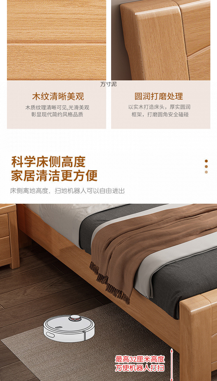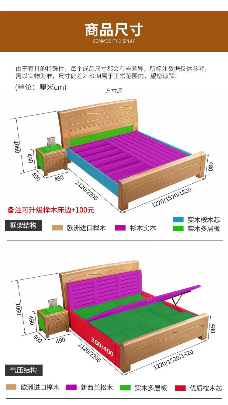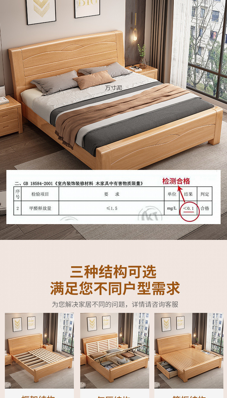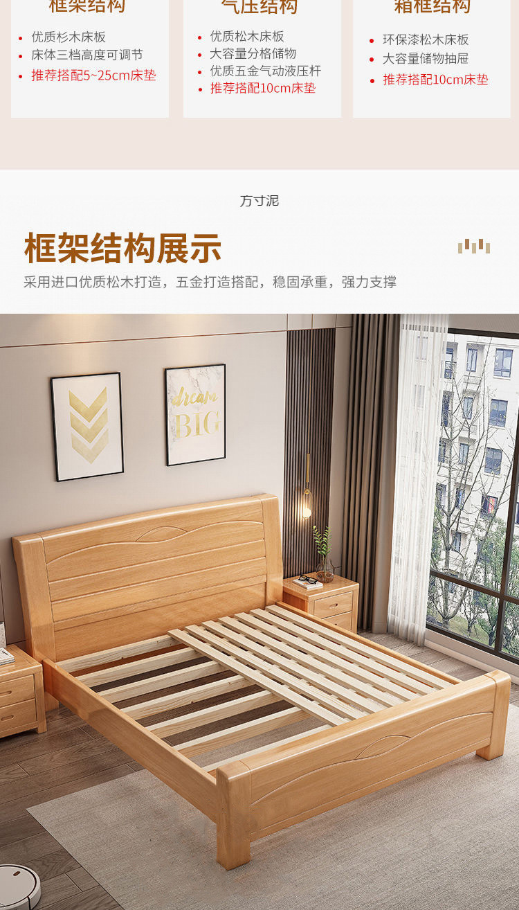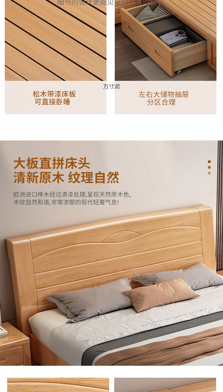 너도밤나무 원목 침대 공장 1.8m 더블 침대 1.2m 어린이 침대 1.5m 통나무 마스터 침실 수납 대형 침대 도매