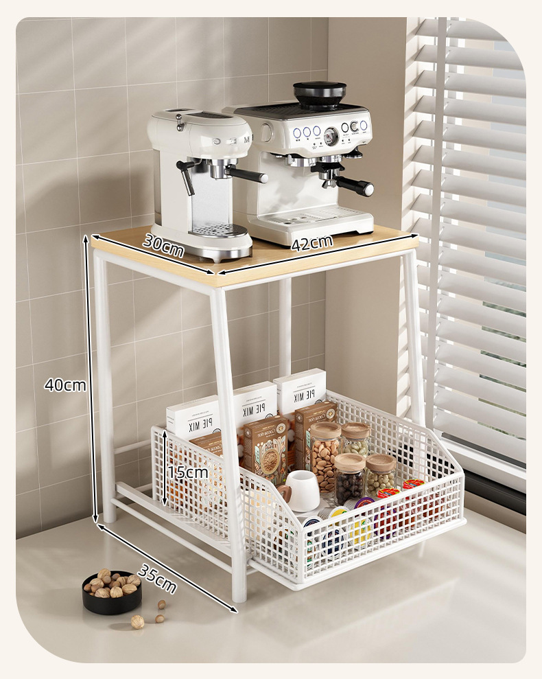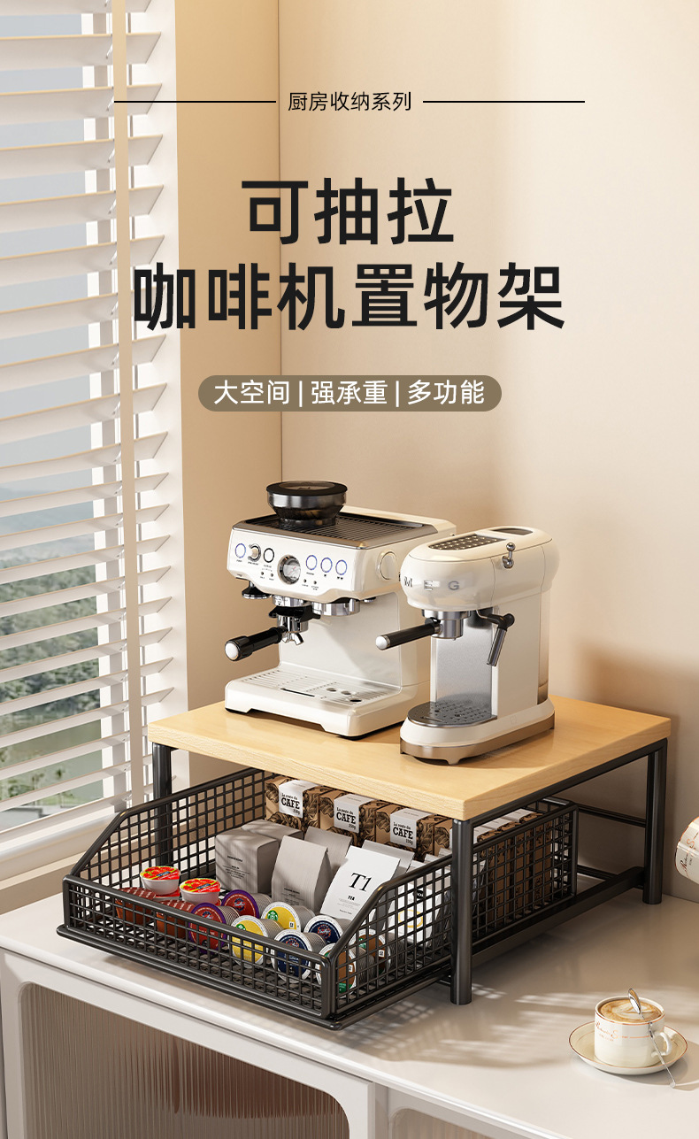 단단한 나무 커피 머신 높이 조절 커피 캡슐 티백 보관함 데스크탑 컵 홀더 서랍 컵 보관함