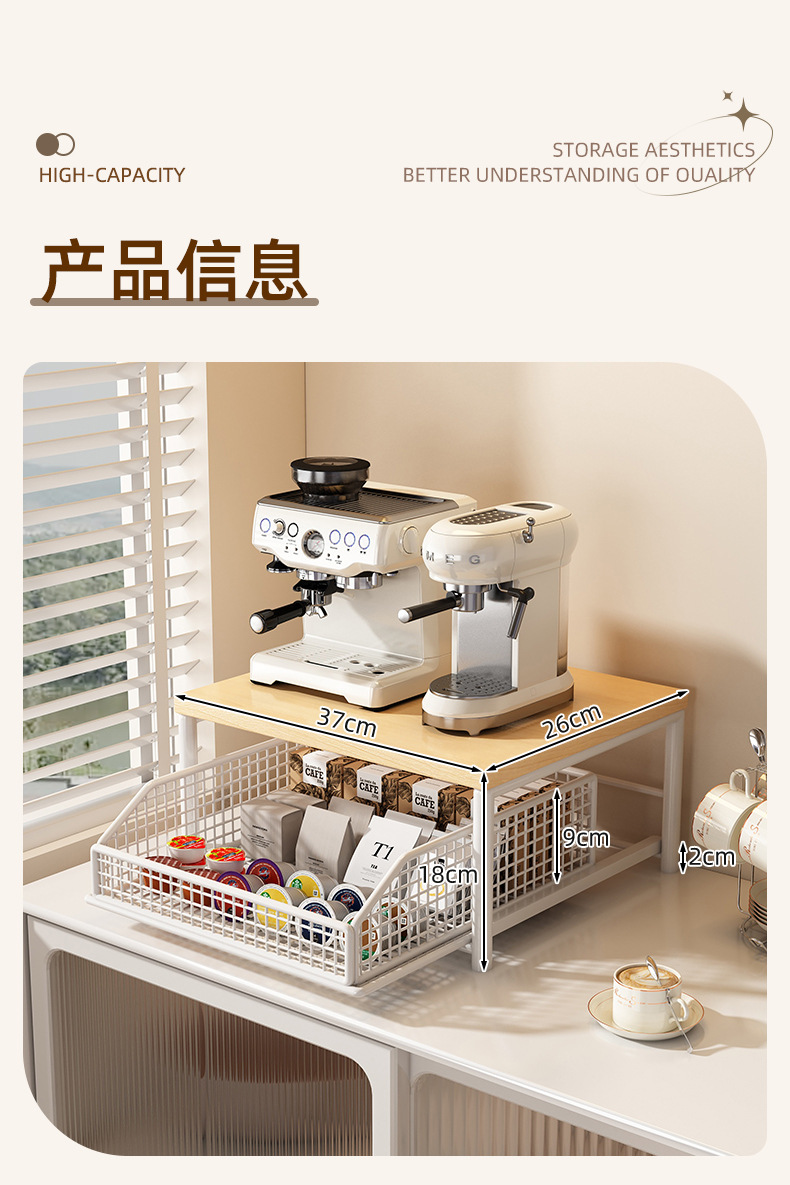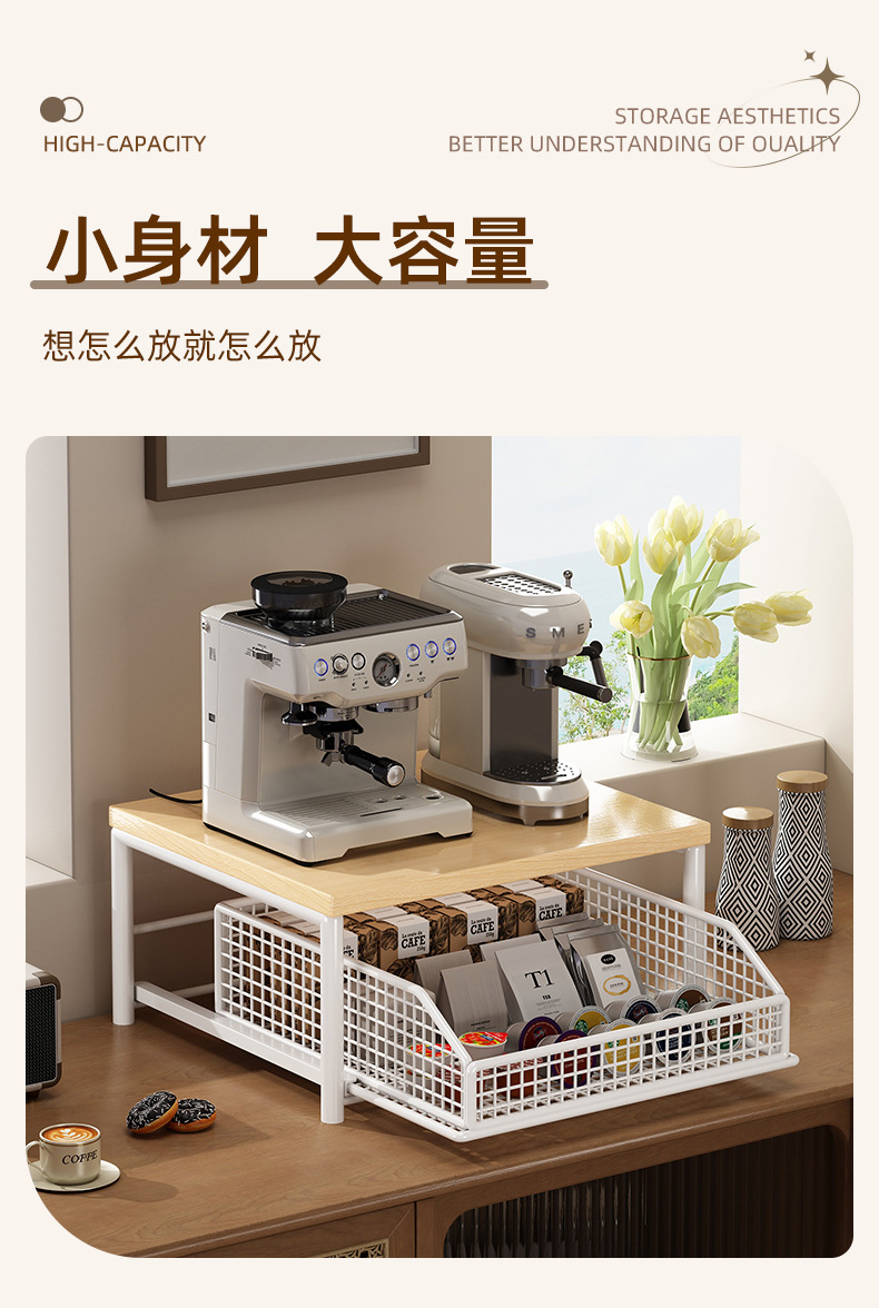 단단한 나무 커피 머신 높이 조절 커피 캡슐 티백 보관함 데스크탑 컵 홀더 서랍 컵 보관함스토어 가기