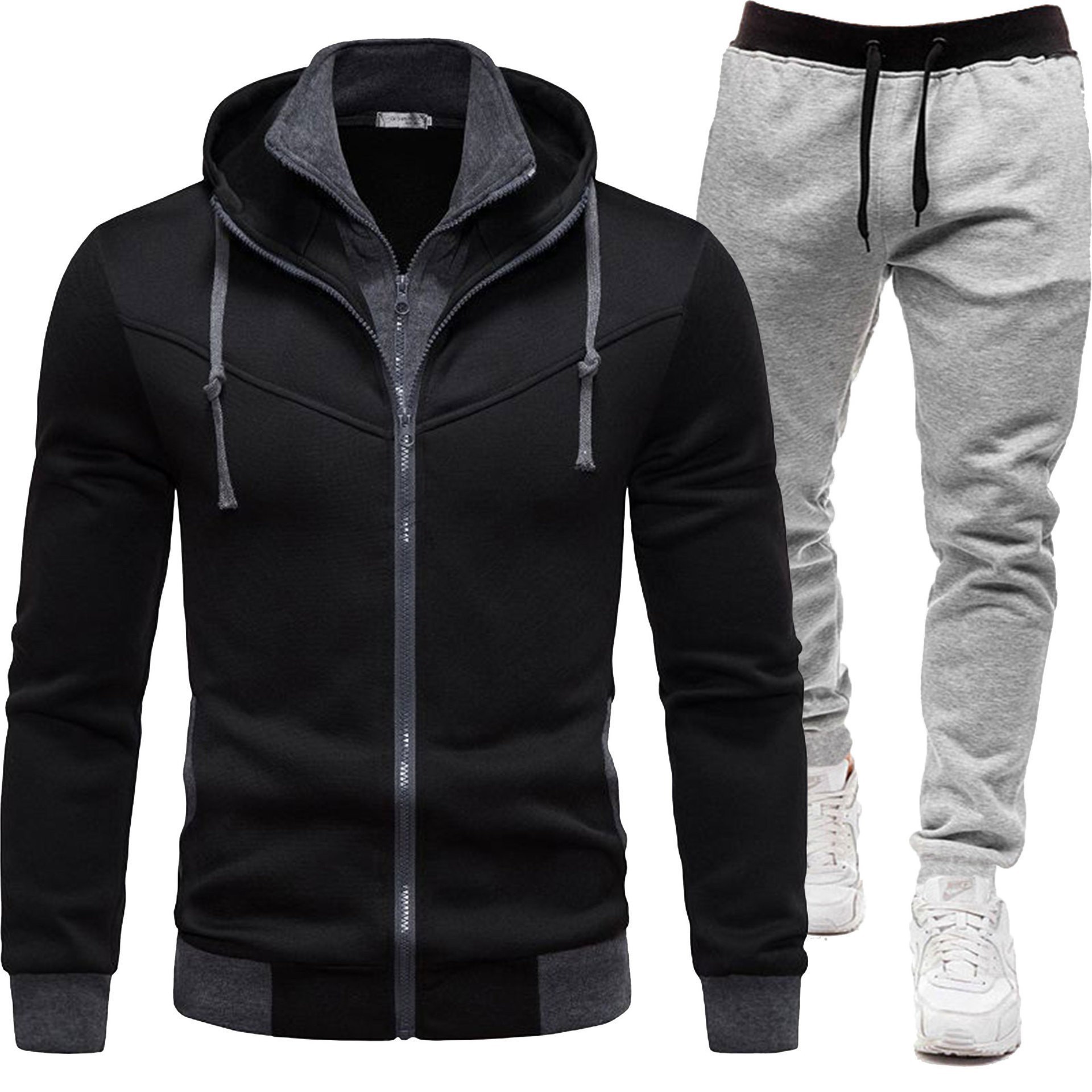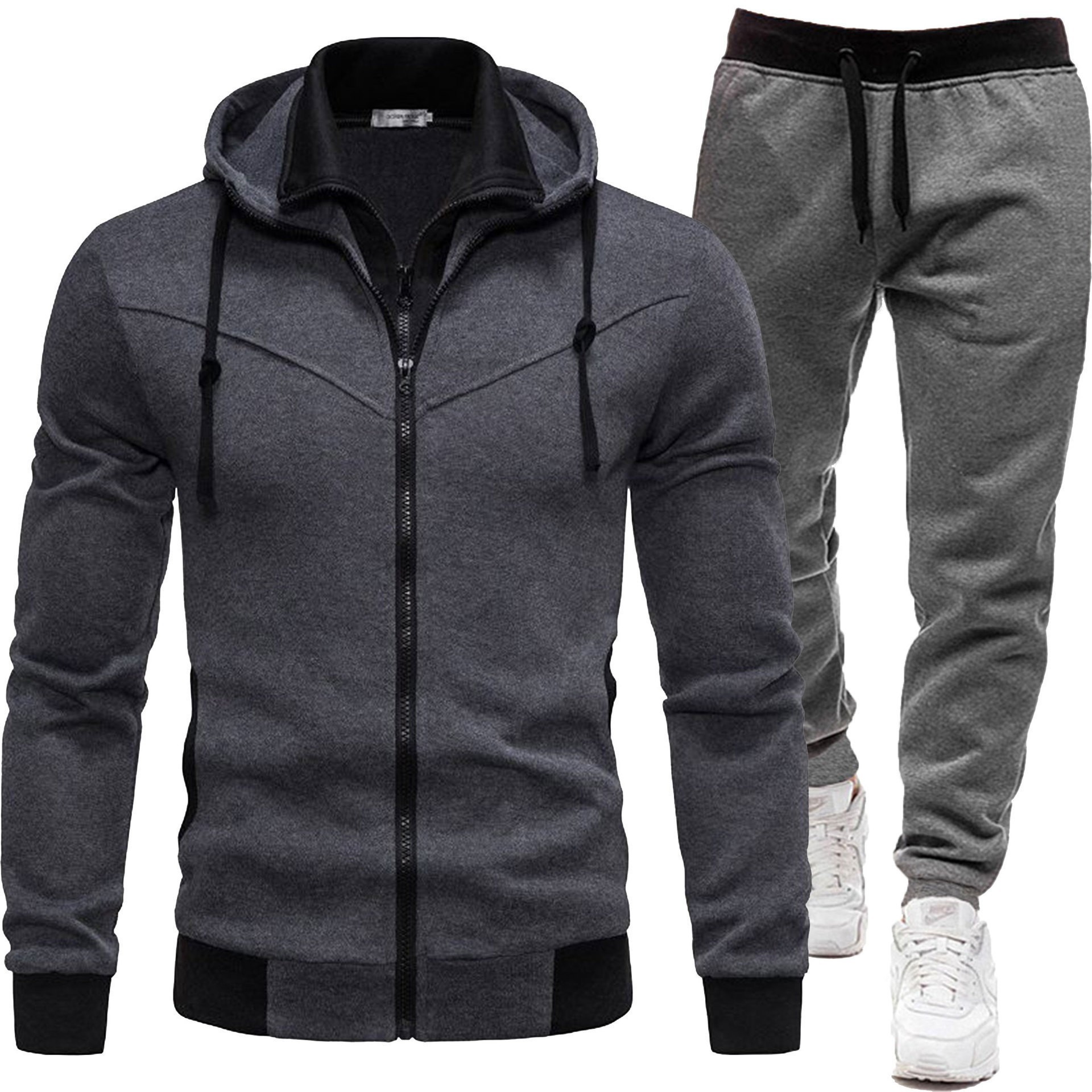 가을, 겨울 스포츠 스플 라이스 남성 자켓 캐주얼 긴팔 바지 후드 스포츠 남성 정장 투피스 세트