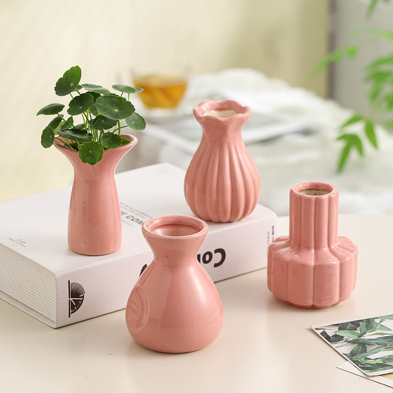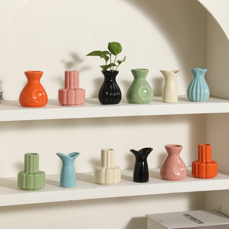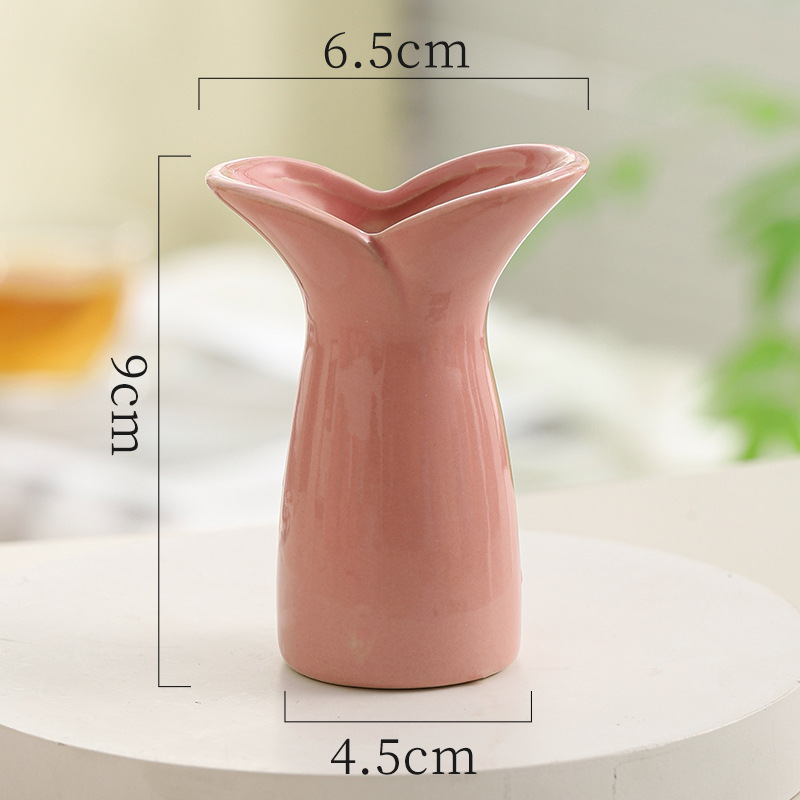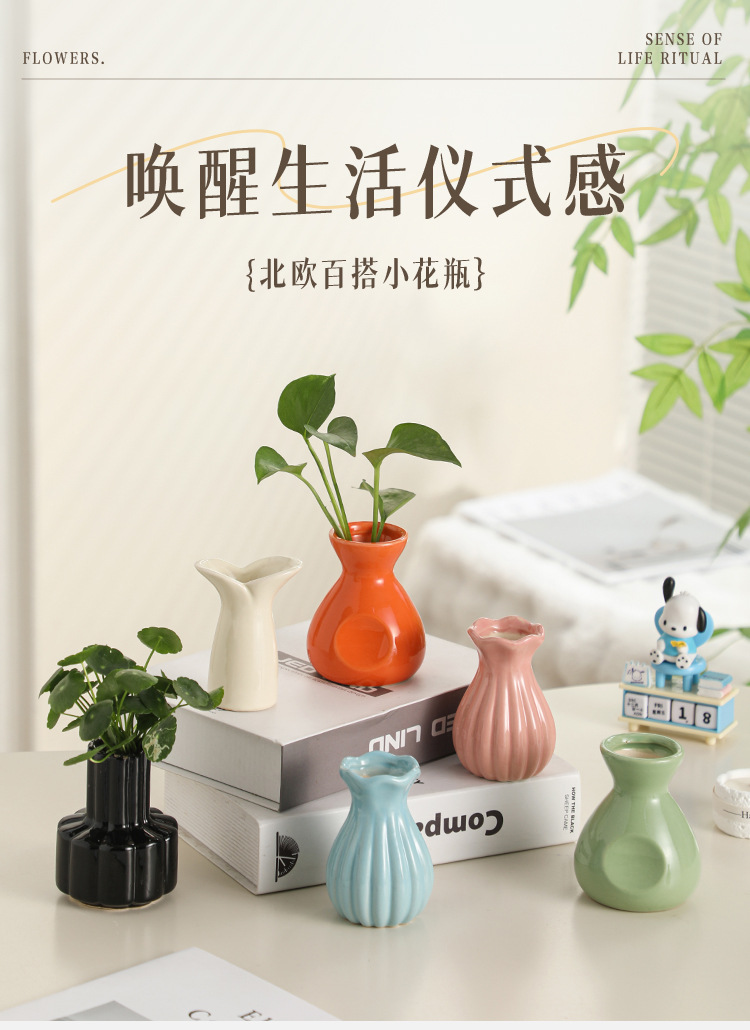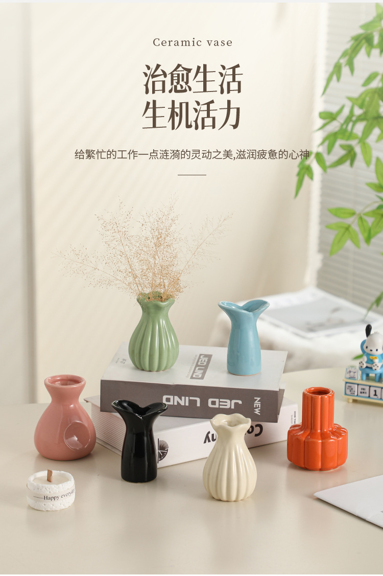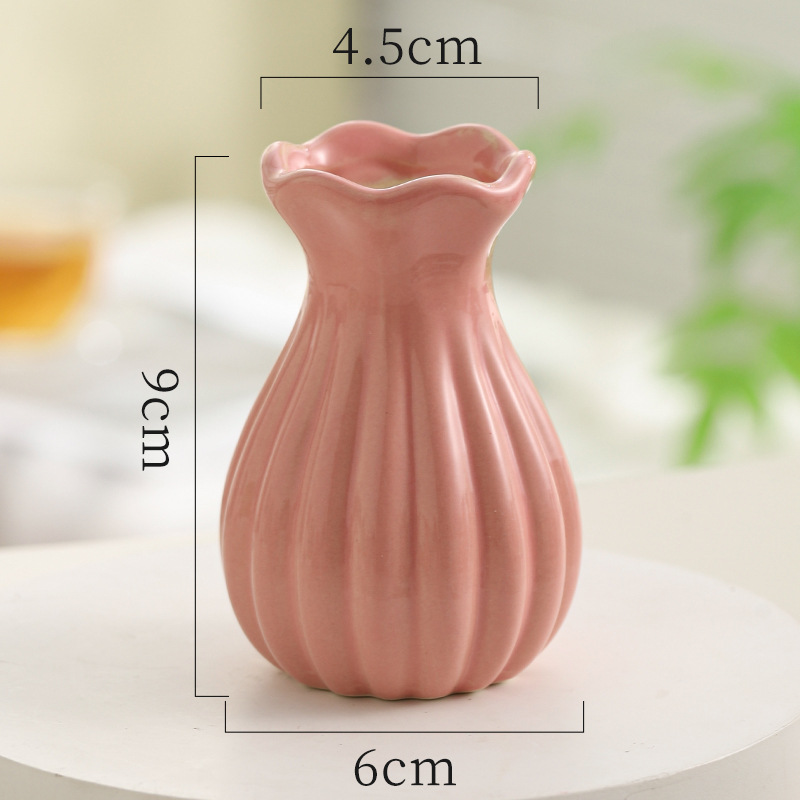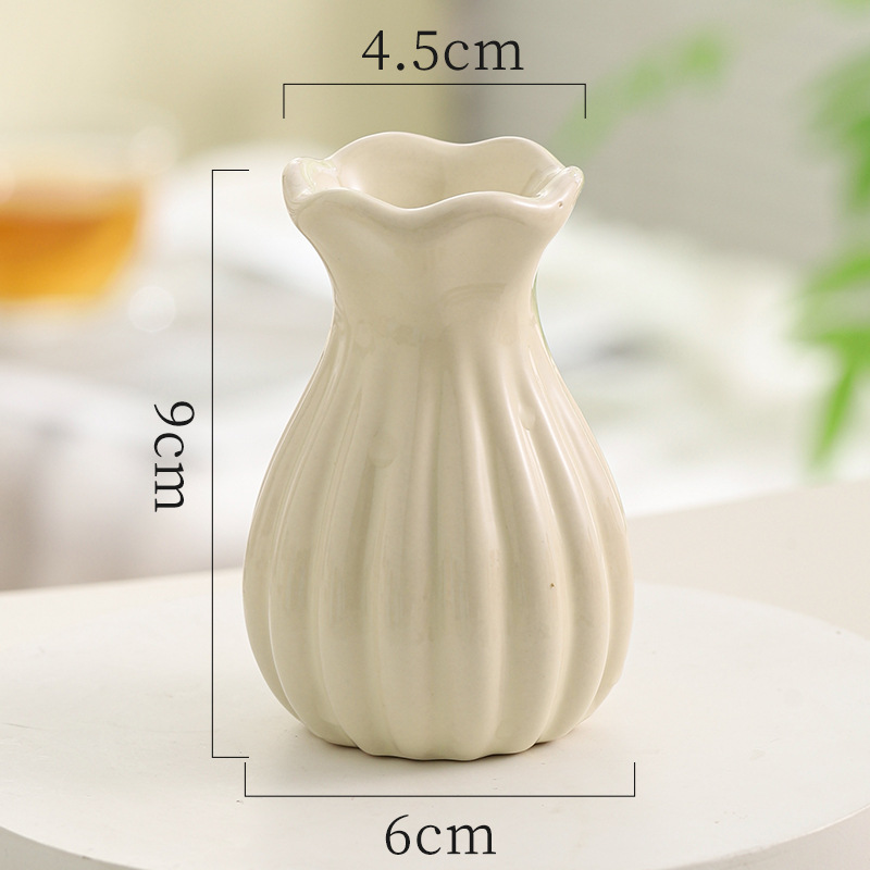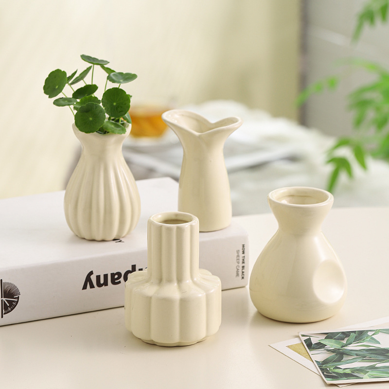 Ins 크림 스타일 데스크탑 세라믹 작은 꽃병 방 개조 작은 물건 따뜻한 시뮬레이션 꽃 장식품 사무실 장식스토어 가기