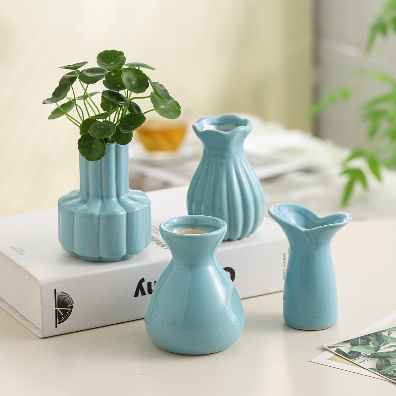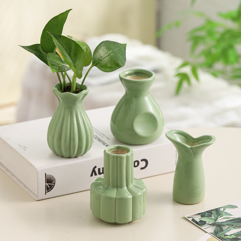 Ins 크림 스타일 데스크탑 세라믹 작은 꽃병 방 개조 작은 물건 따뜻한 시뮬레이션 꽃 장식품 사무실 장식