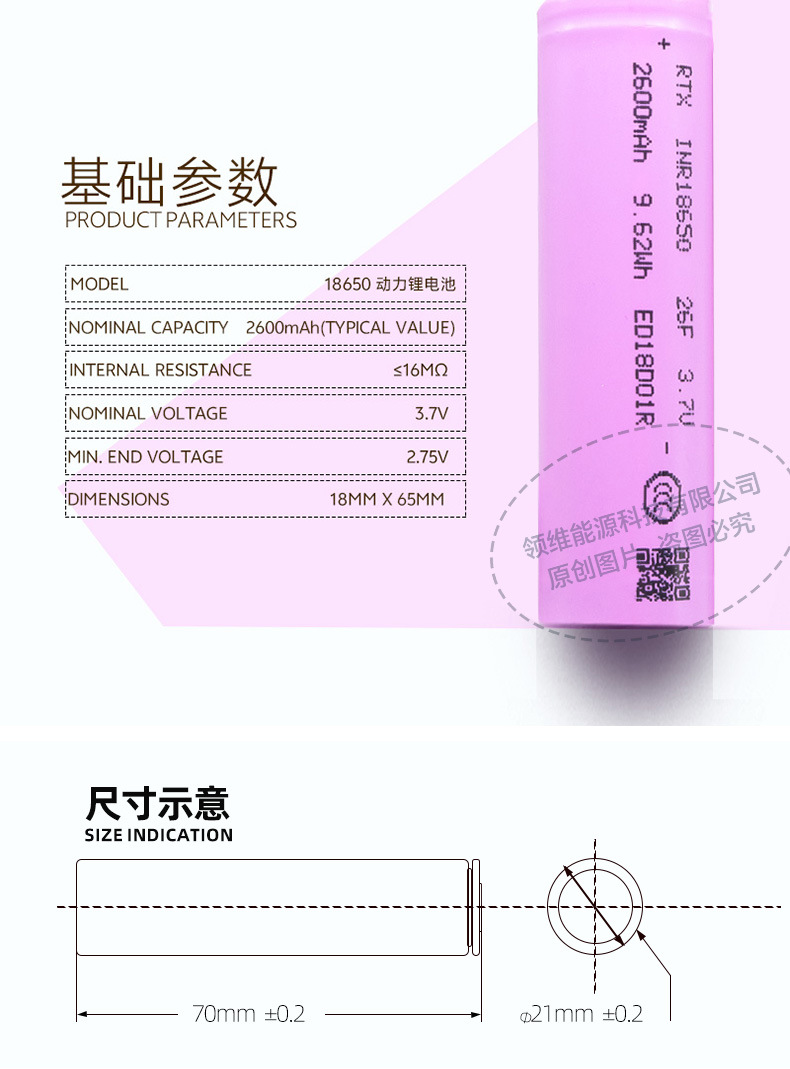 • RTX18650-2600mAh
