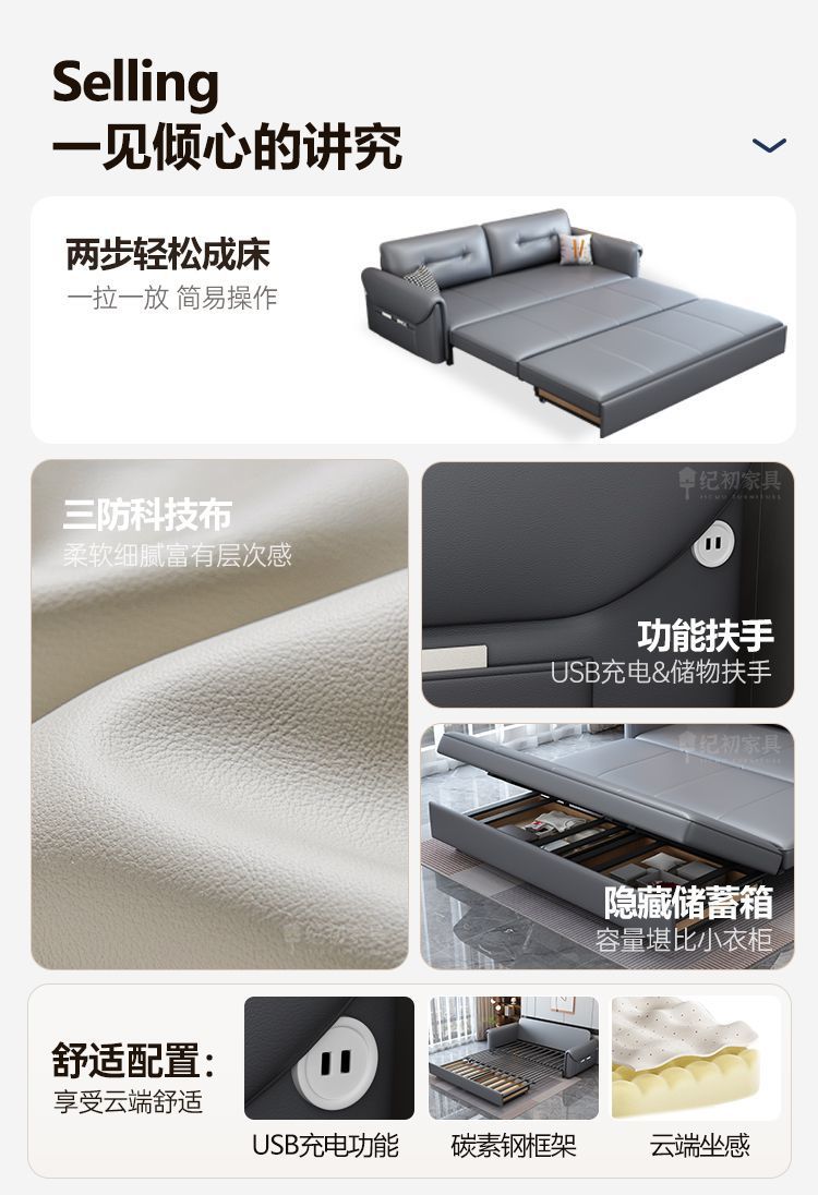 2025 새로운 기술 천 소파 침대 접이식 텔레스코픽 이중 목적 저장 다기능 작은 아파트 거실 직선형 풀 아웃
