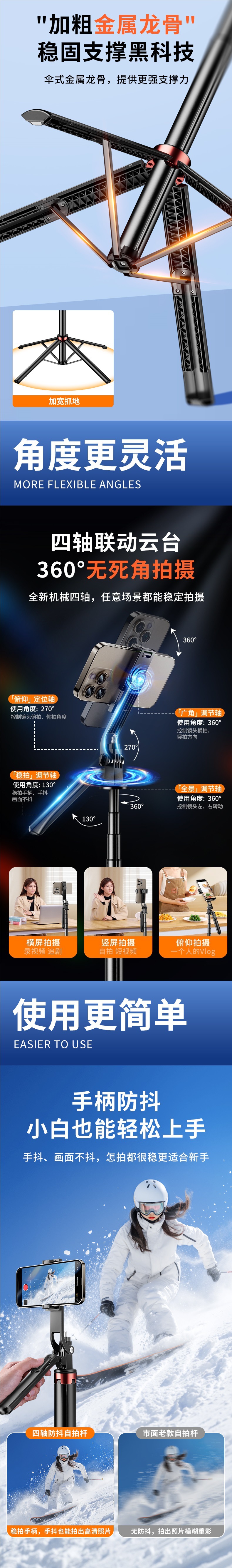 • 1.8m [알루미늄 합금 4각대 + 라이브 근육 조명] 듀얼 카메라 위치 ✿ 4축 안정화된 촬영 ✿ 분리형 충전 리모콘
