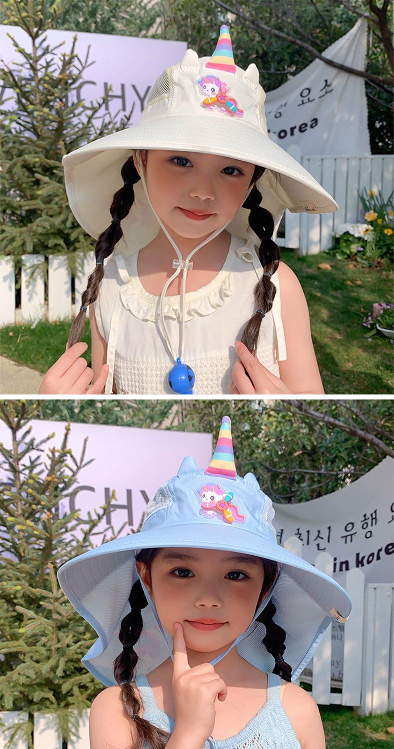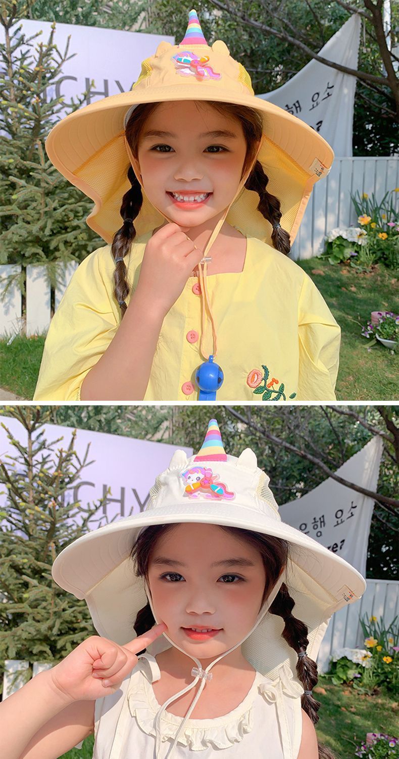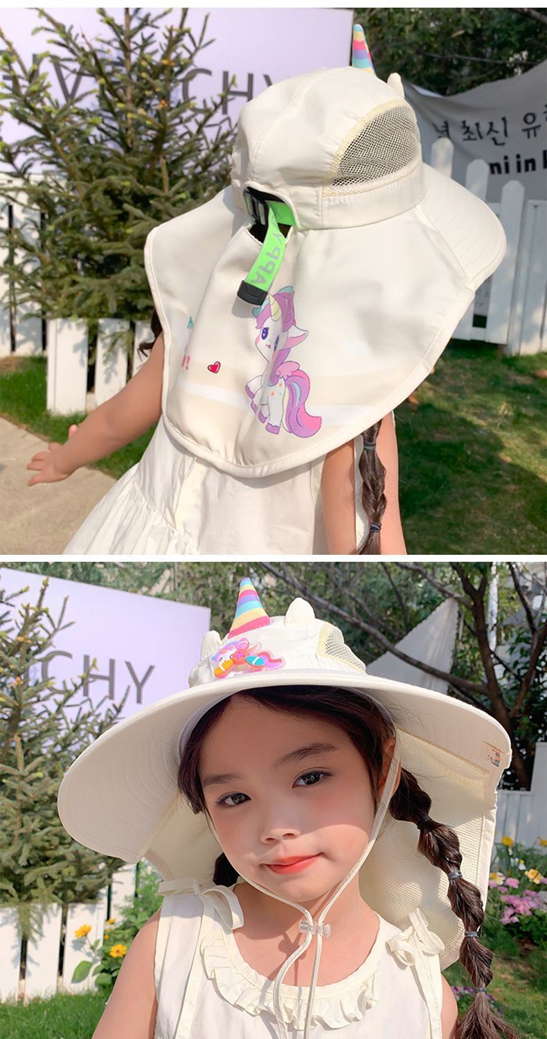 어린이 유니콘 만화 태양 보호 모자 여름 챙 태양 모자 목도리 소녀 태양 모자 아기 UV