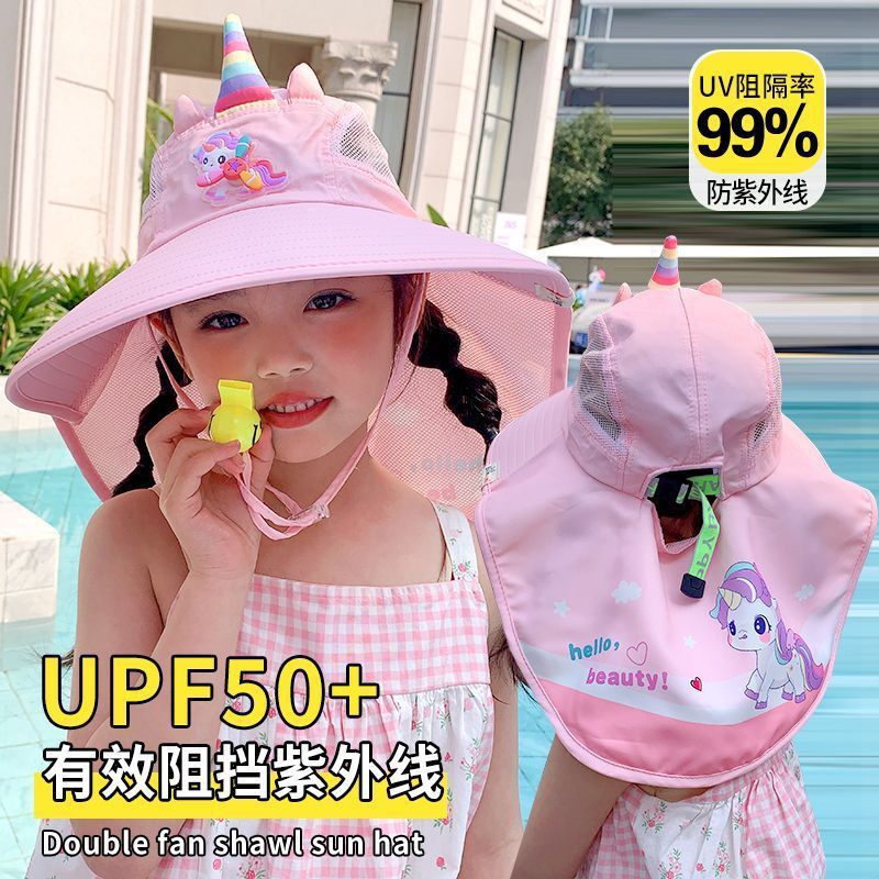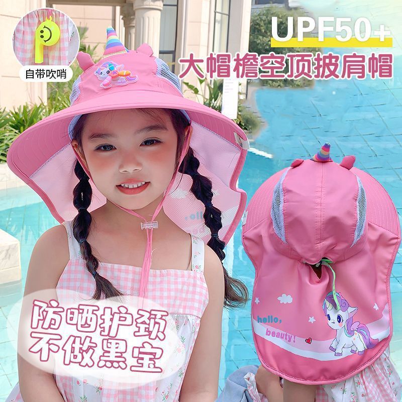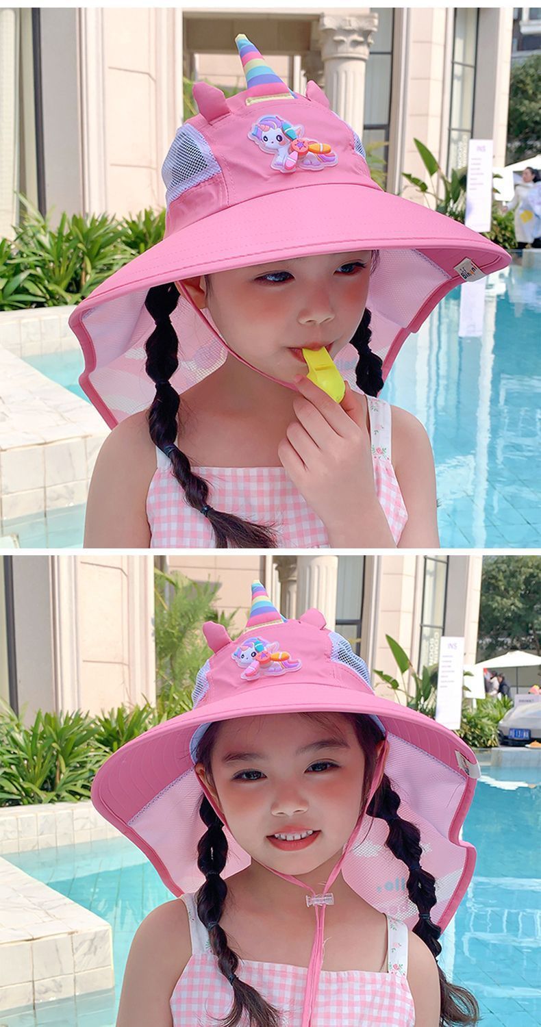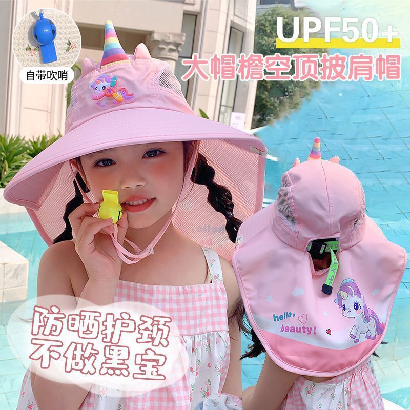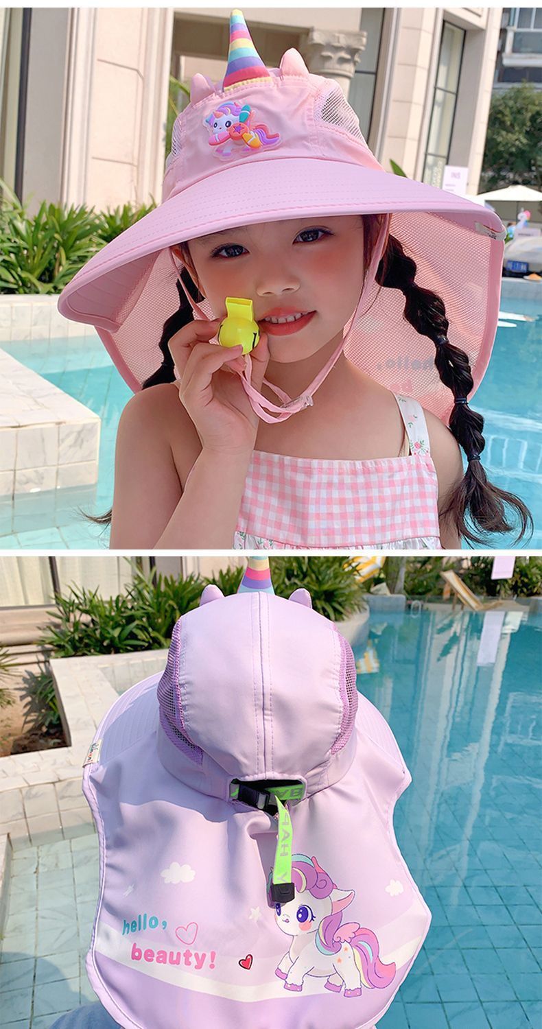 어린이 유니콘 만화 태양 보호 모자 여름 챙 태양 모자 목도리 소녀 태양 모자 아기 UV