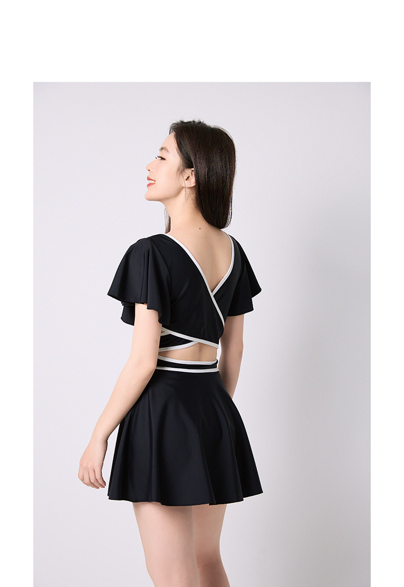 여성 온천 수영복 검은 색 살을 덮는 슬리밍 드레스 2025 새로운 수영복 여성 보수적 인 복서 팬티스토어 가기