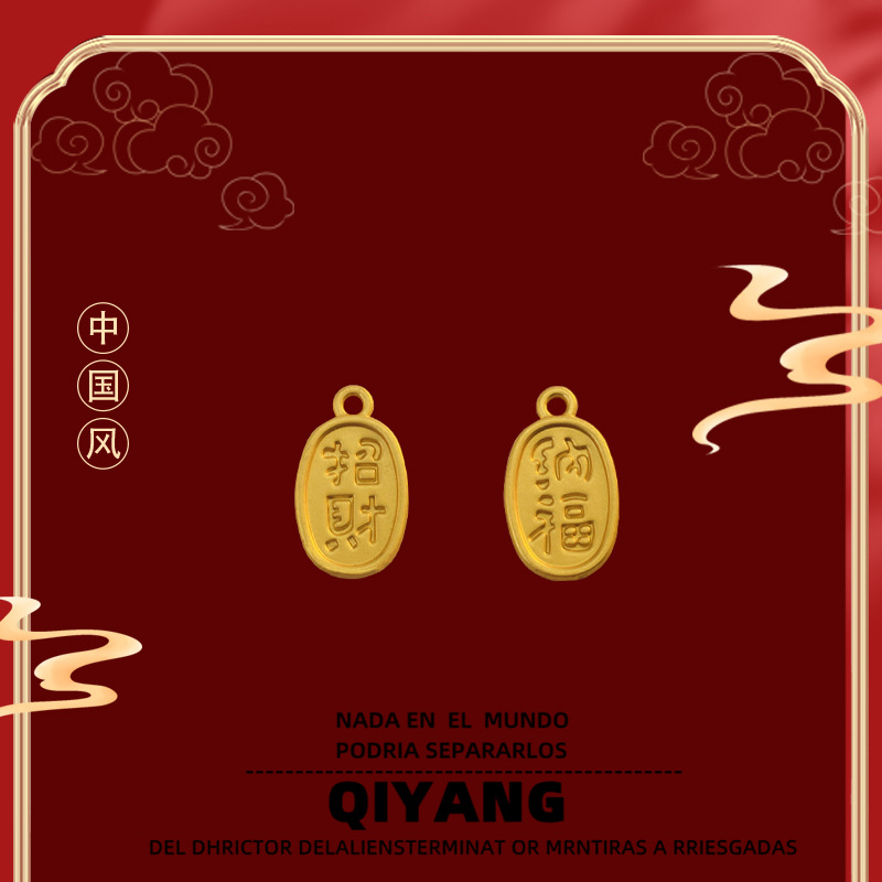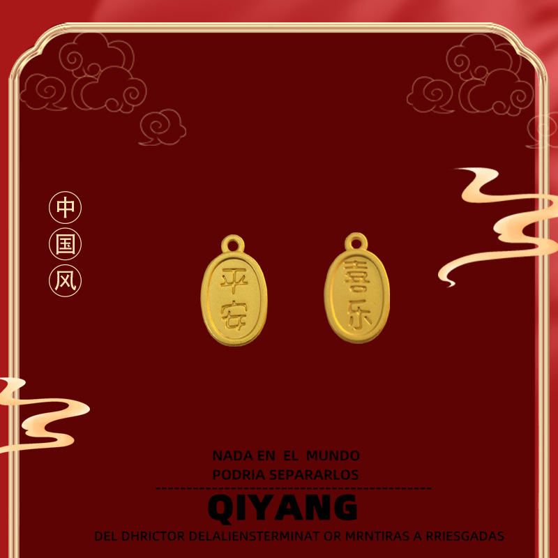 [컬렉션] 고대 샌드 골드 레터링, 평화, 부와 축복 펜던트, 팔찌, 소형 휴대용 펜던트, 무광택 골드 액세서리