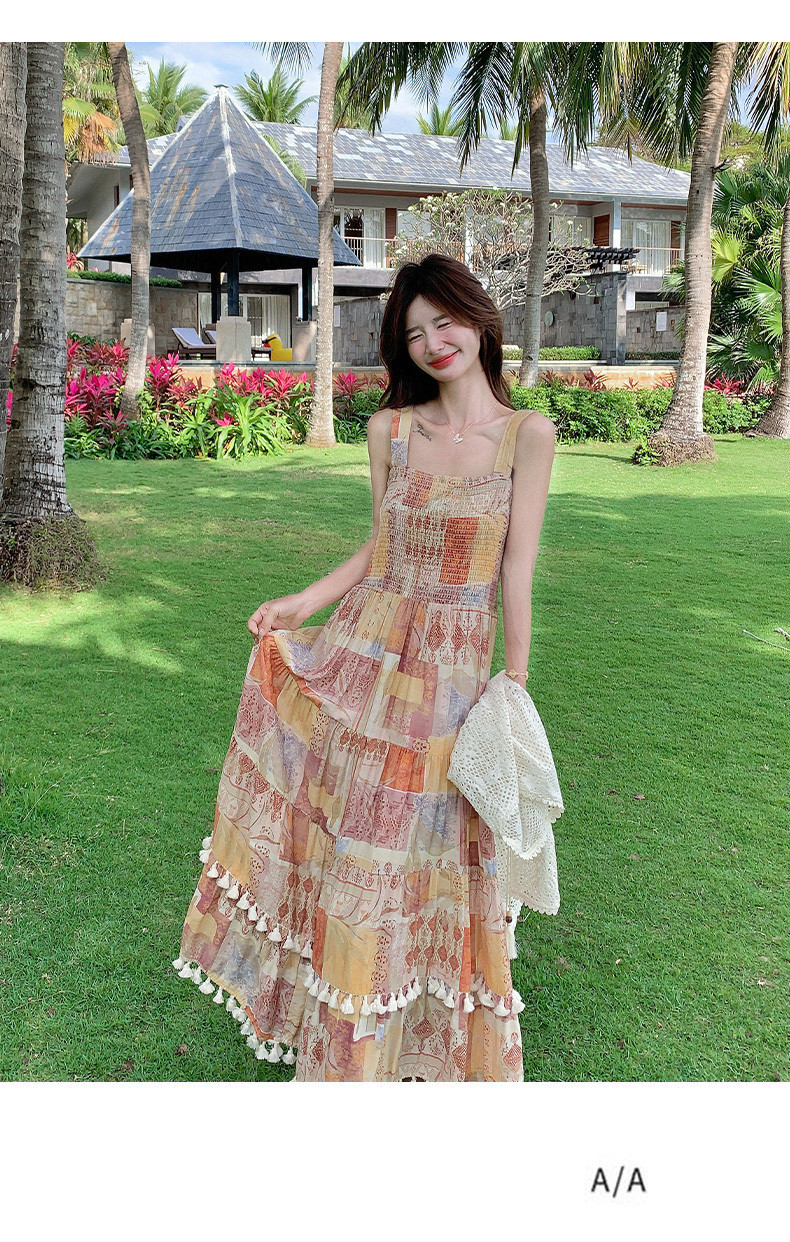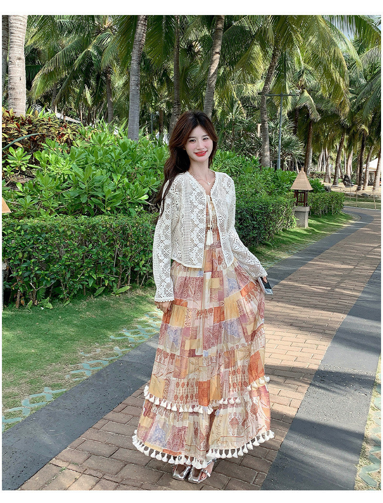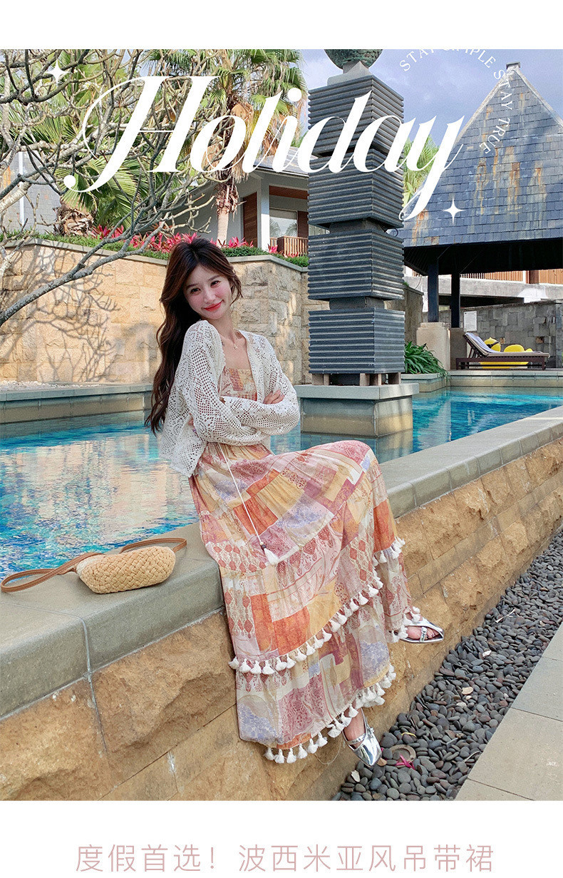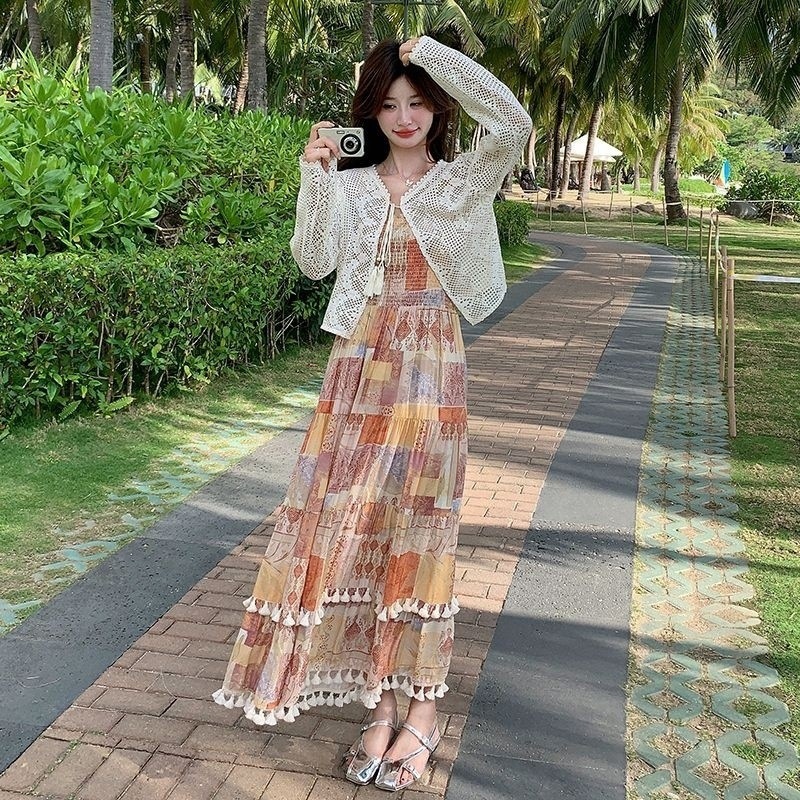여성을 위한 H2V 해변 휴가 아름다운 의상, 여름 보헤미안 태슬 서스펜더 드레스, 속이 빈 가디건 2개