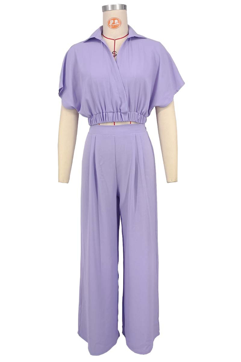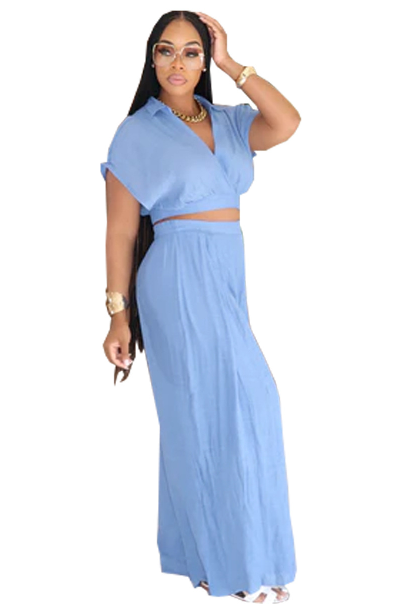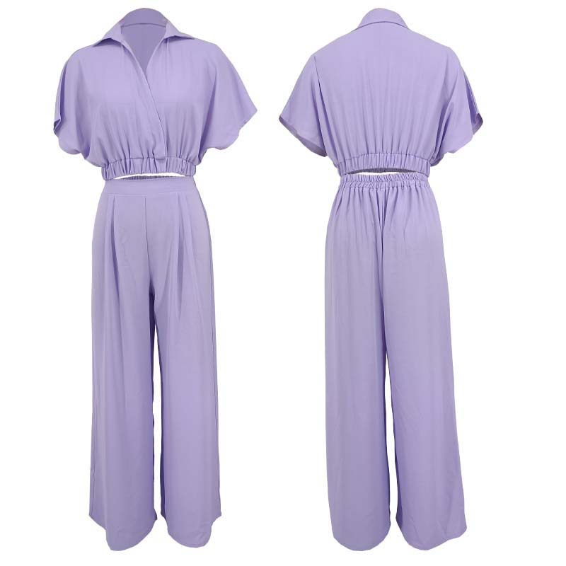 8722 유럽, 미국 및 아프리카 국경 간 대외 무역 솔리드 컬러 라펠 V 입 배트 탑 와이드 레그 팬츠 패셔너블 루즈 슈트스토어 가기