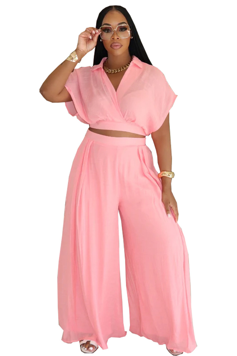 8722 유럽, 미국 및 아프리카 국경 간 대외 무역 솔리드 컬러 라펠 V 입 배트 탑 와이드 레그 팬츠 패셔너블 루즈 슈트