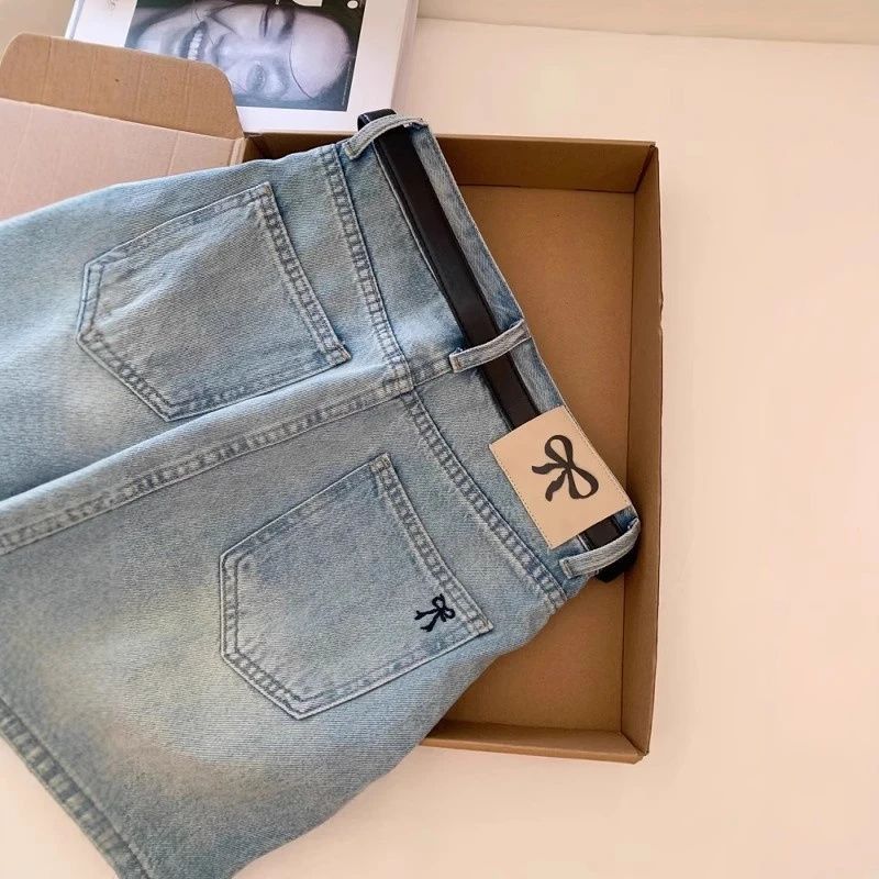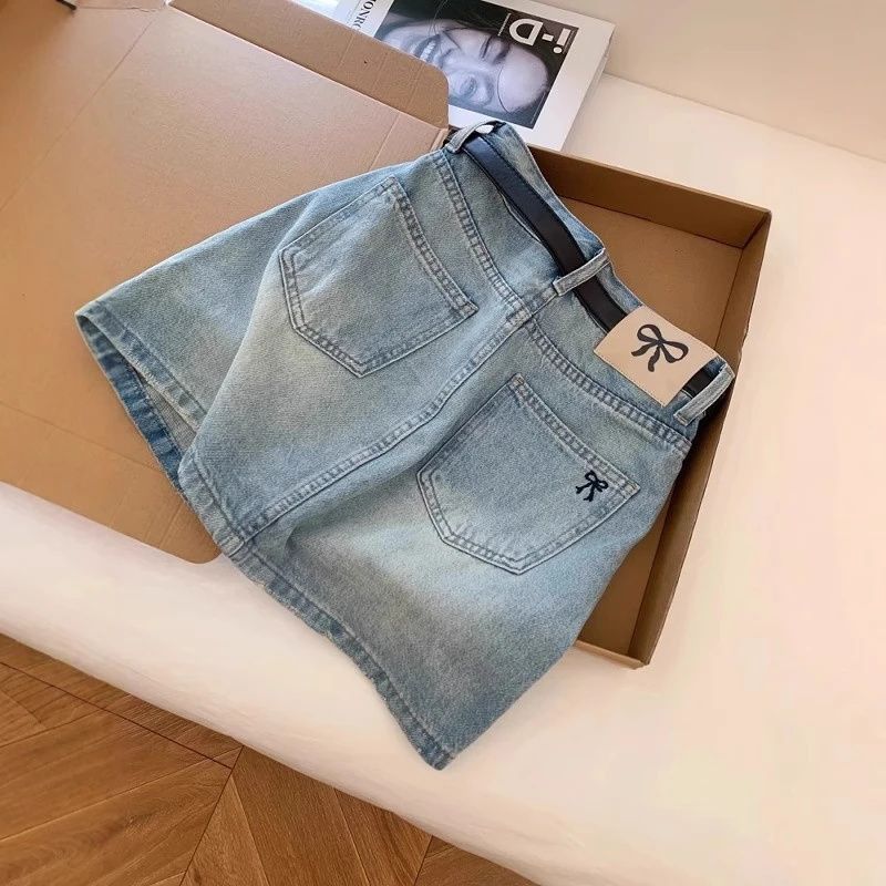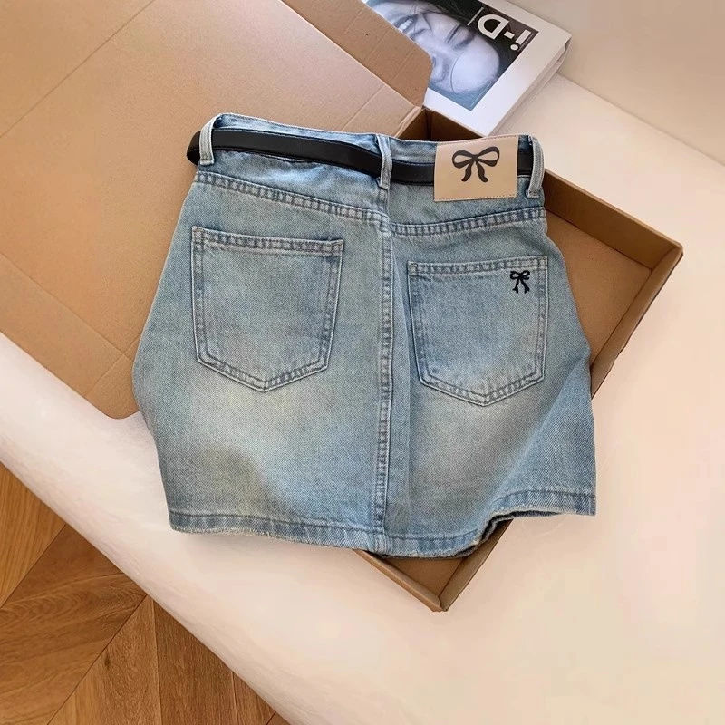 여름 핫걸을 위한 아메리칸 레트로 보우 자수 데님 스커트, 힙 커버 미니 스커트, A라인 슬리밍 스커트스토어 가기
