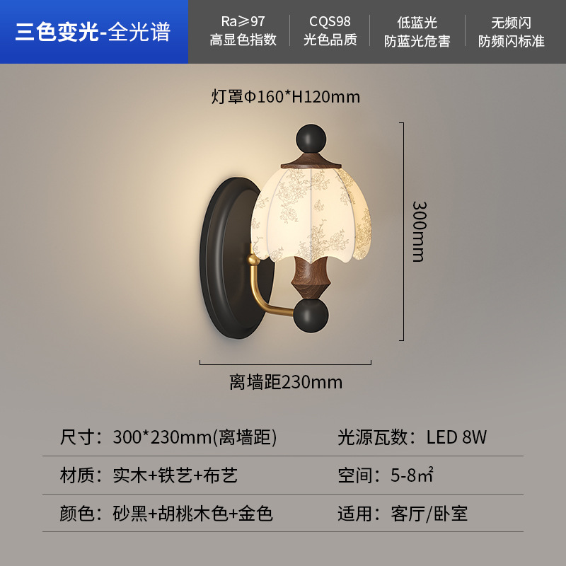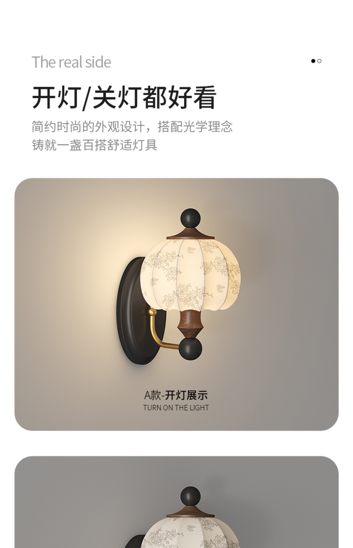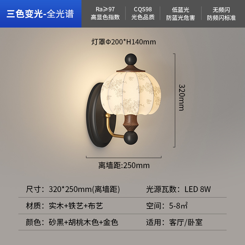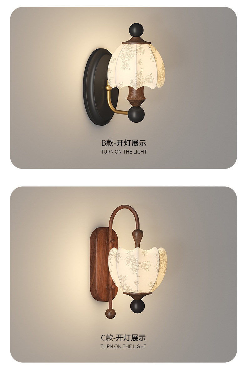 송나라 미적 벽 램프 새로운 중국 스타일 침실 머리맡 램프 중국 스타일 선 인쇄 패브릭 거실 배경 벽 램프스토어 가기