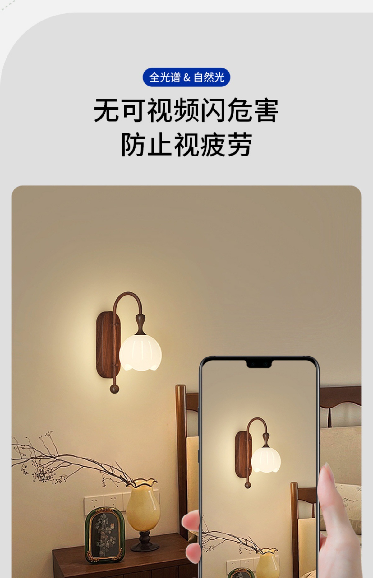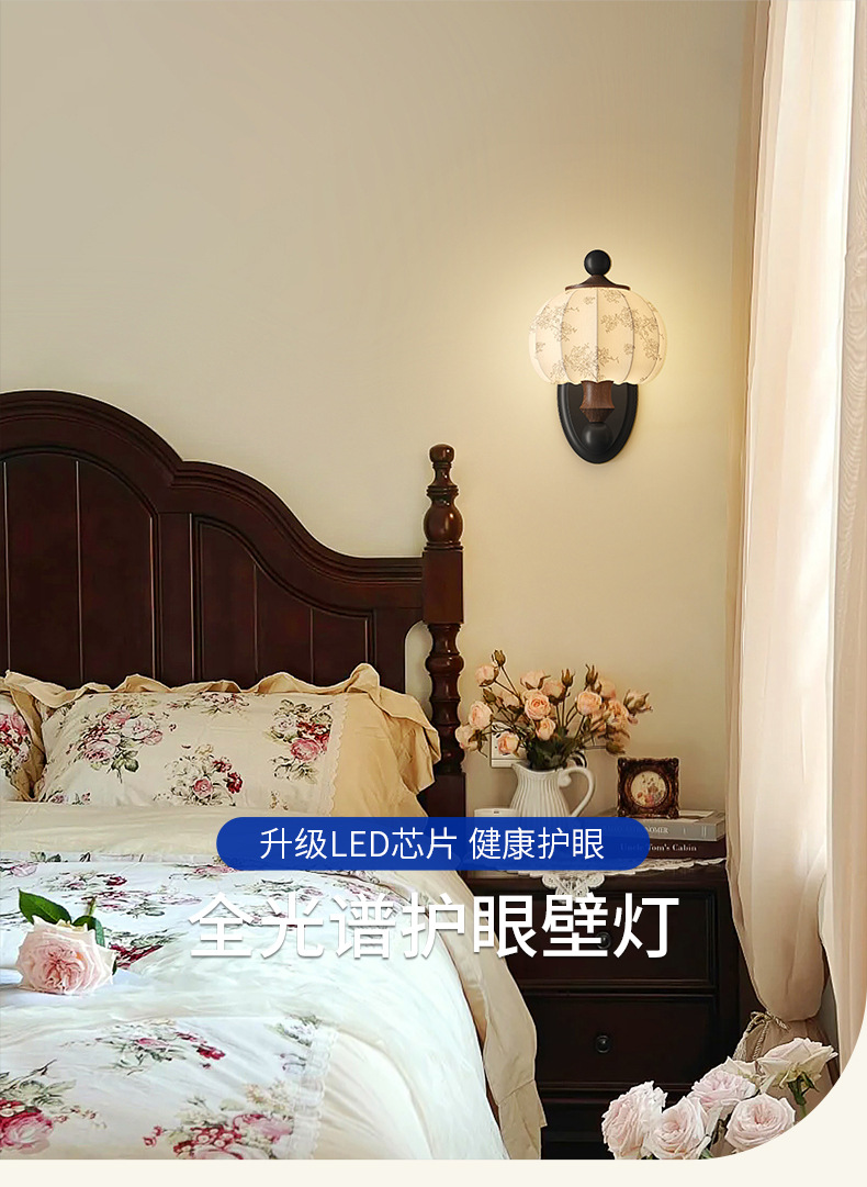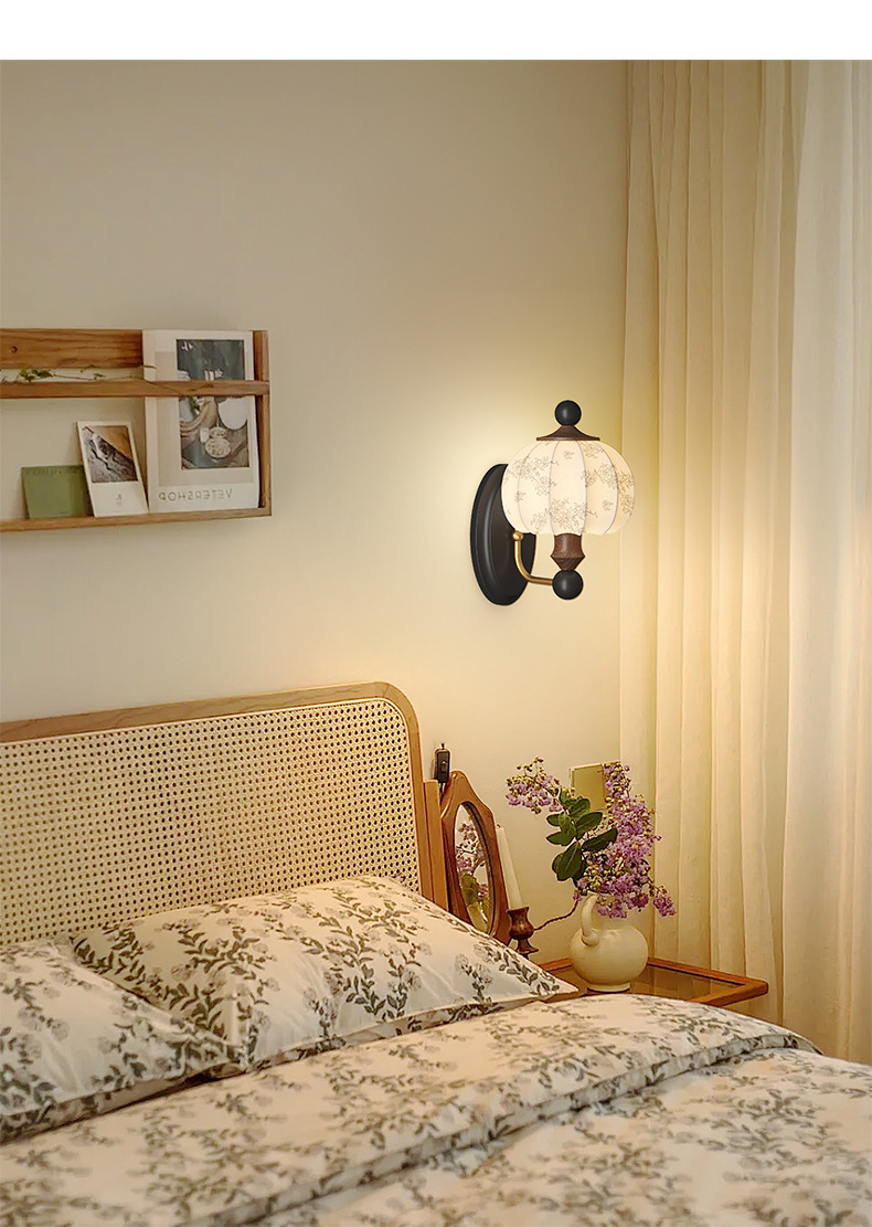송나라 미적 벽 램프 새로운 중국 스타일 침실 머리맡 램프 중국 스타일 선 인쇄 패브릭 거실 배경 벽 램프스토어 가기