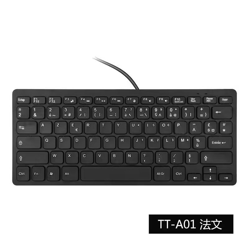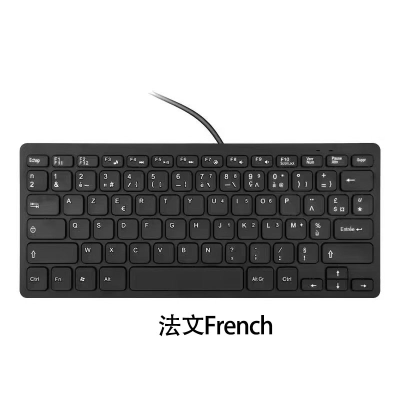 소형 언어용 유선 키보드 미니 초콜릿 키보드 USB 휴대용 독일어 러시아어 일본어 등