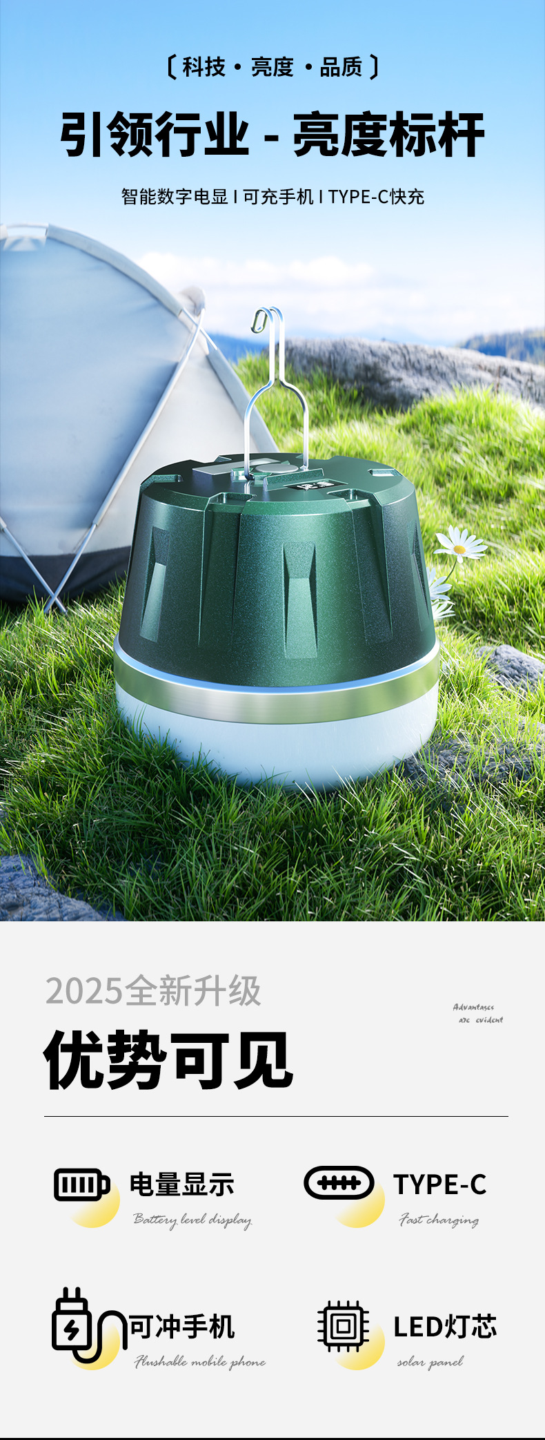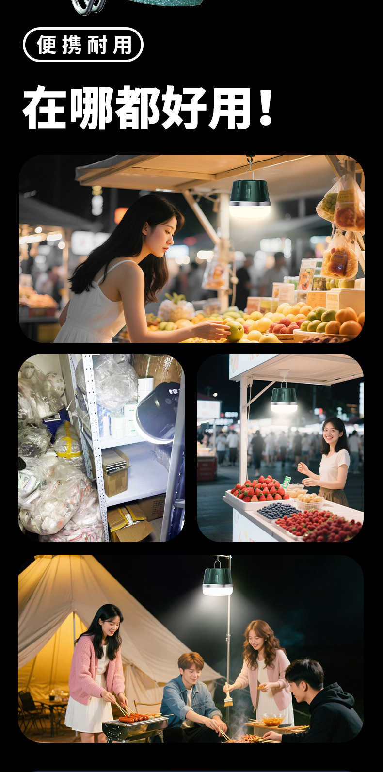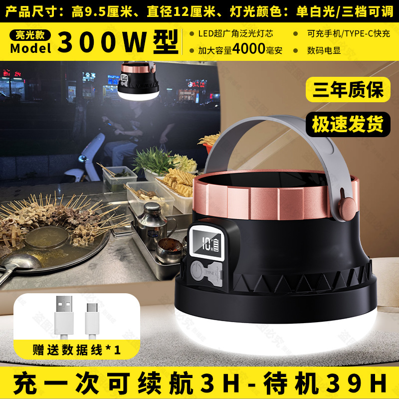 야외 충전식 조명, 야시장 매점 조명, 캠핑 텐트 조명, 매우 긴 배터리 수명, 비상 전구, 밝기 조절 가능