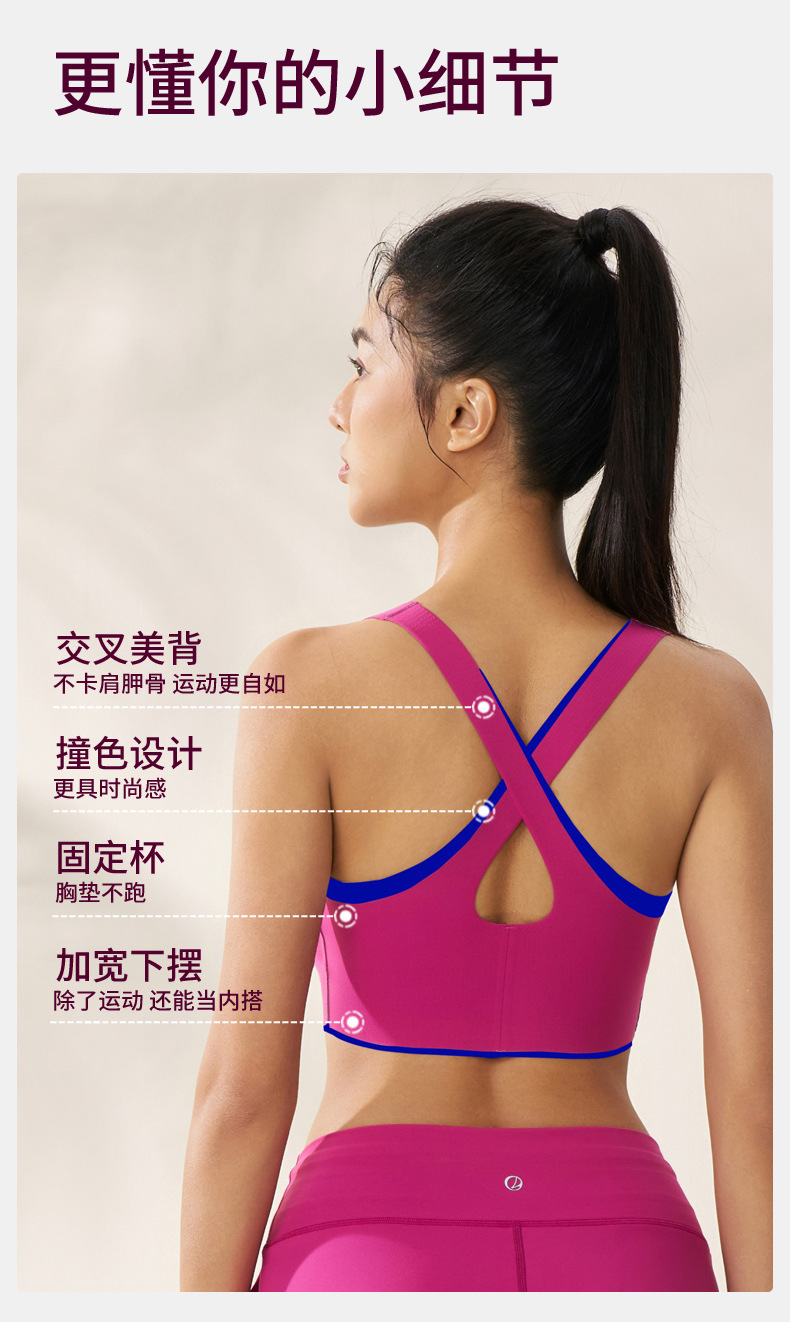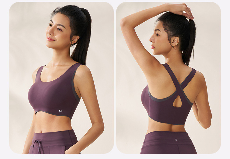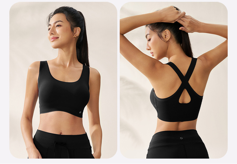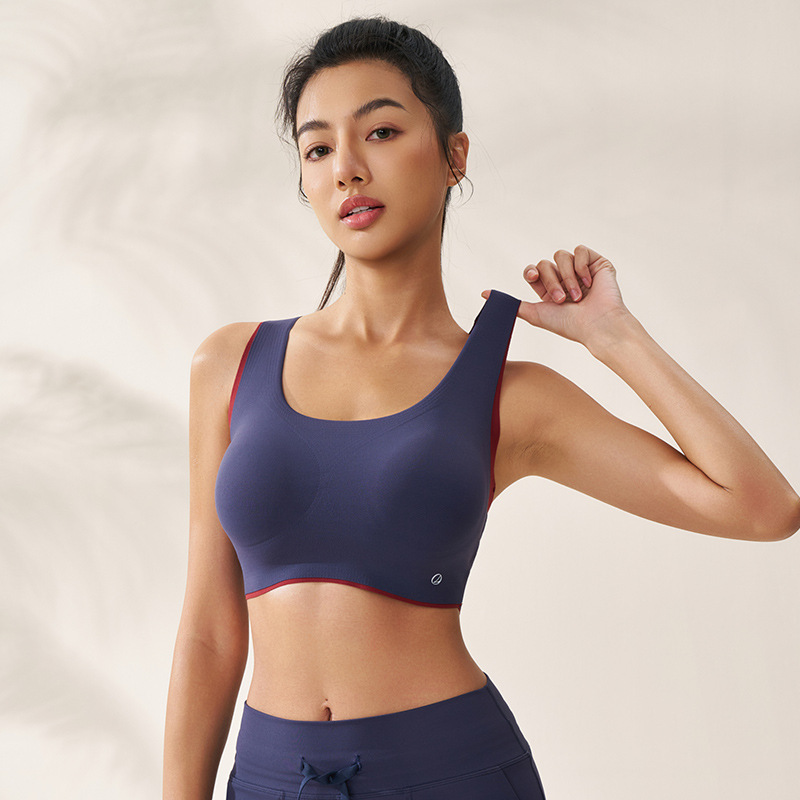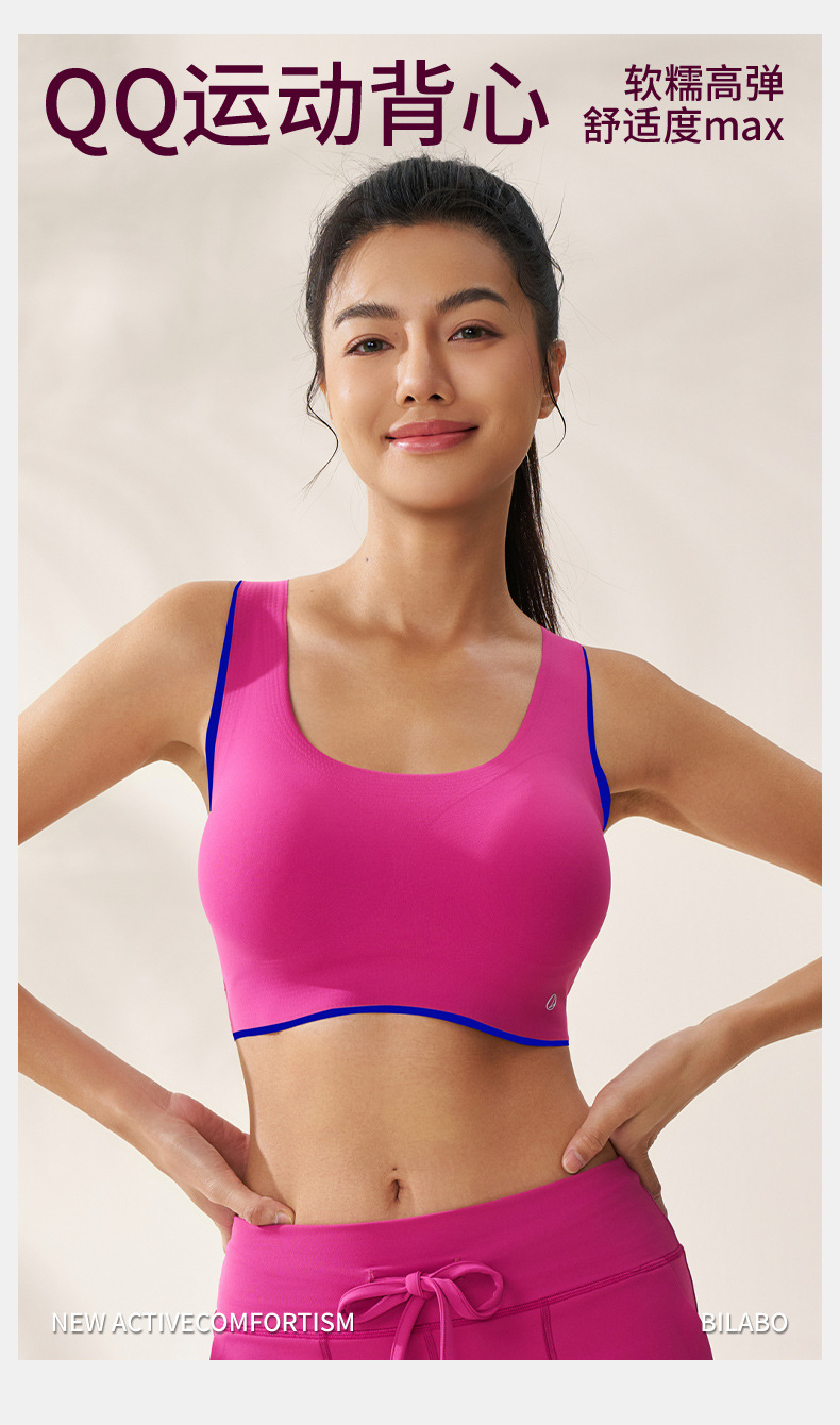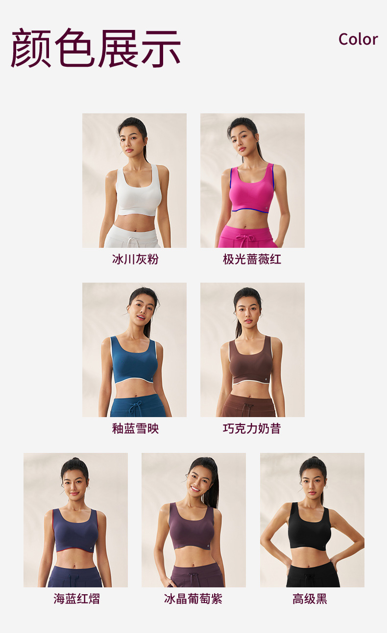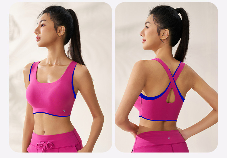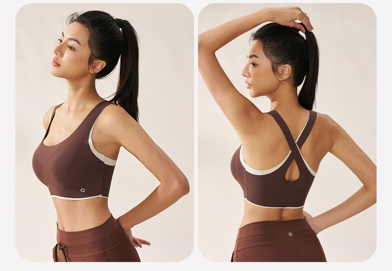 여성용 중간 강도 컬러 매칭 뷰티 백 스포츠 브라, 고정식 원컵 요가 조끼, 피트니스 필라테스 브라스토어 가기
