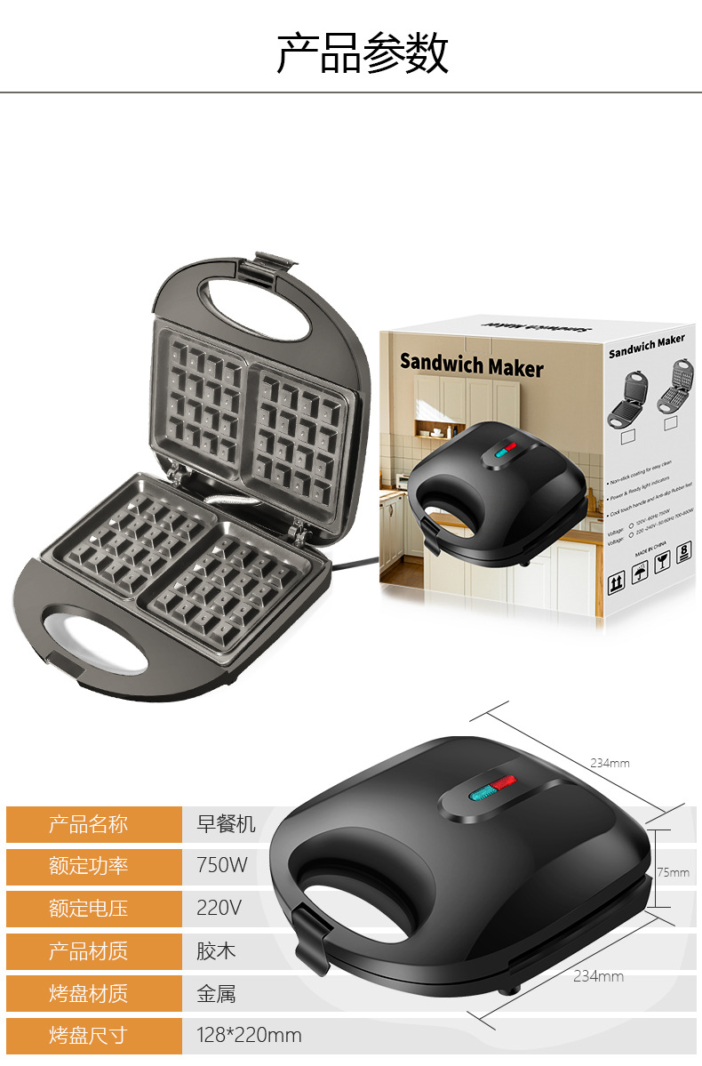 국경 간 110V 3-in-1 샌드위치 메이커 아침 식사 메이커 양면 가열 다기능 토스트 와플 메이커 스테이크