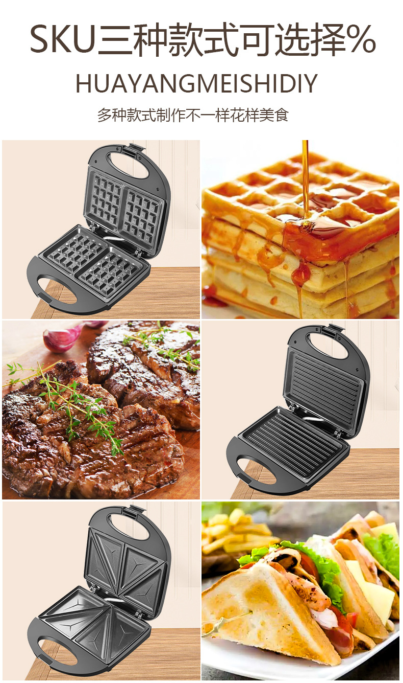 국경 간 110V 3-in-1 샌드위치 메이커 아침 식사 메이커 양면 가열 다기능 토스트 와플 메이커 스테이크스토어 가기