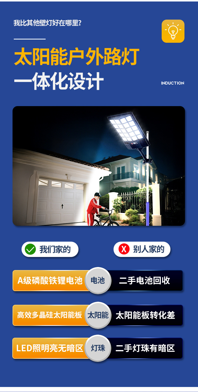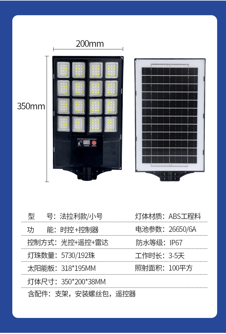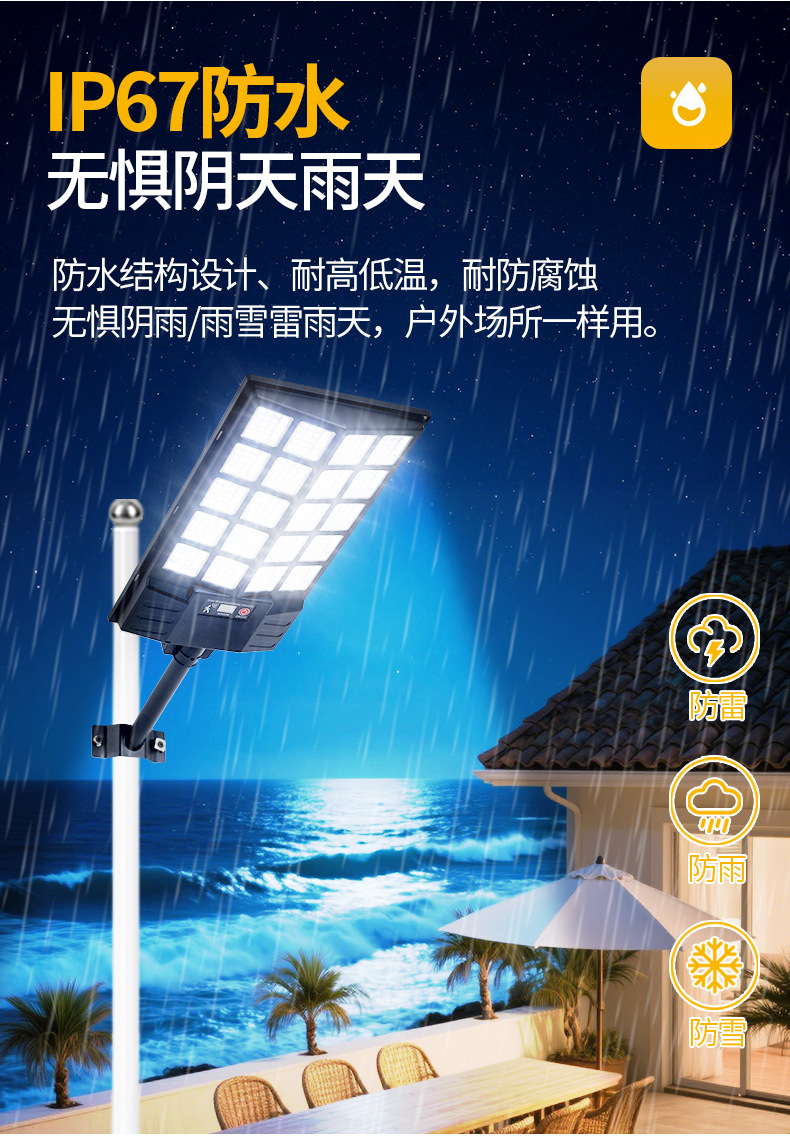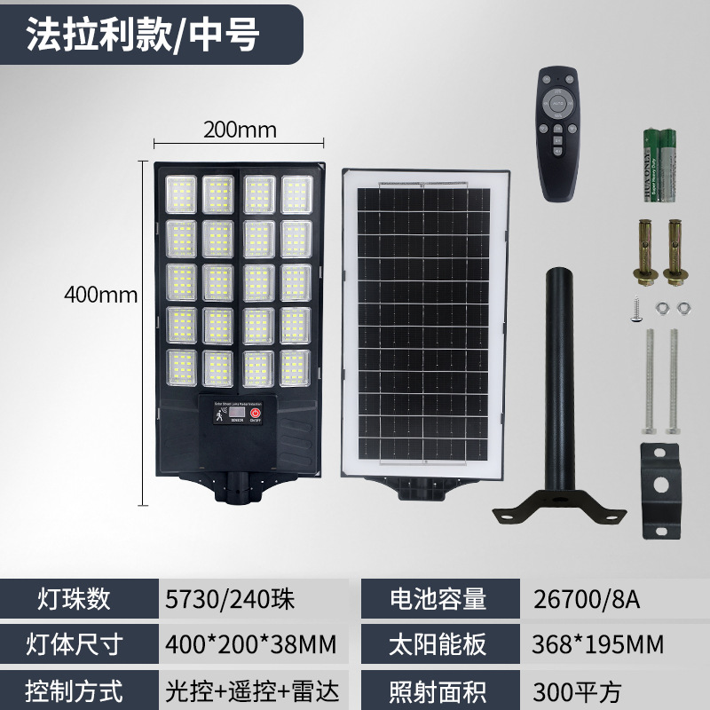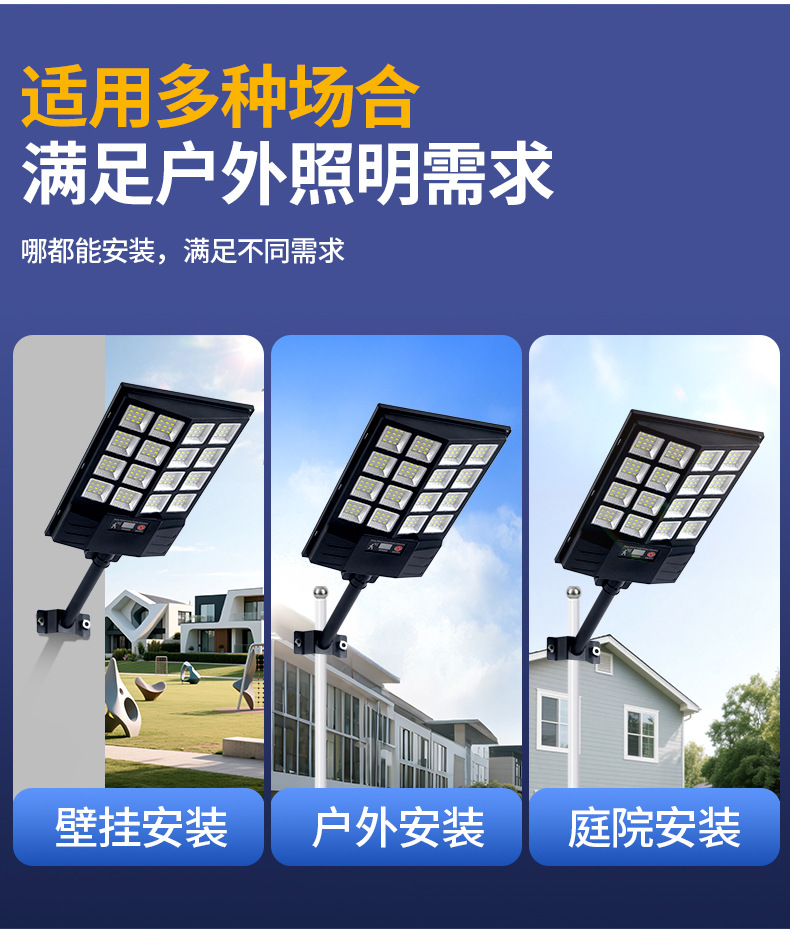 새로운 올인원 태양광 가로등, 실외 방수 조명, 완전 자동 인체 감지, 새로운 농촌 도로 가정용