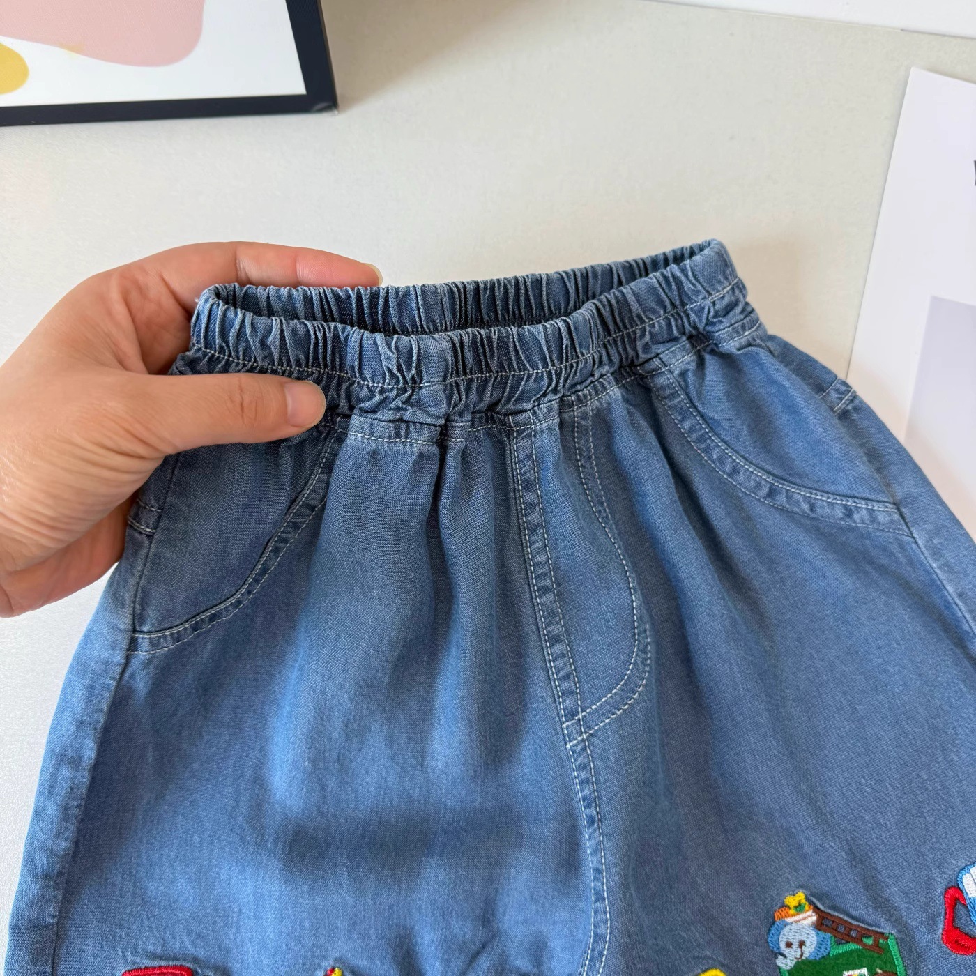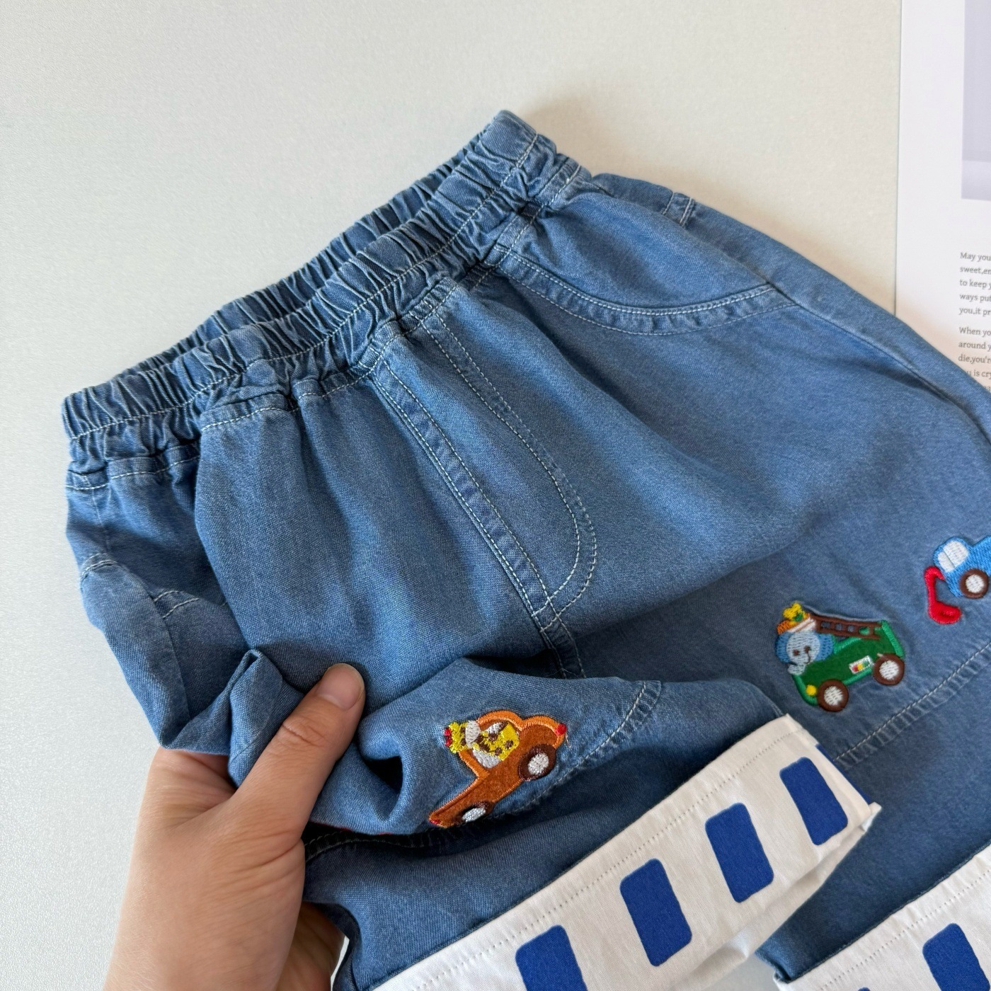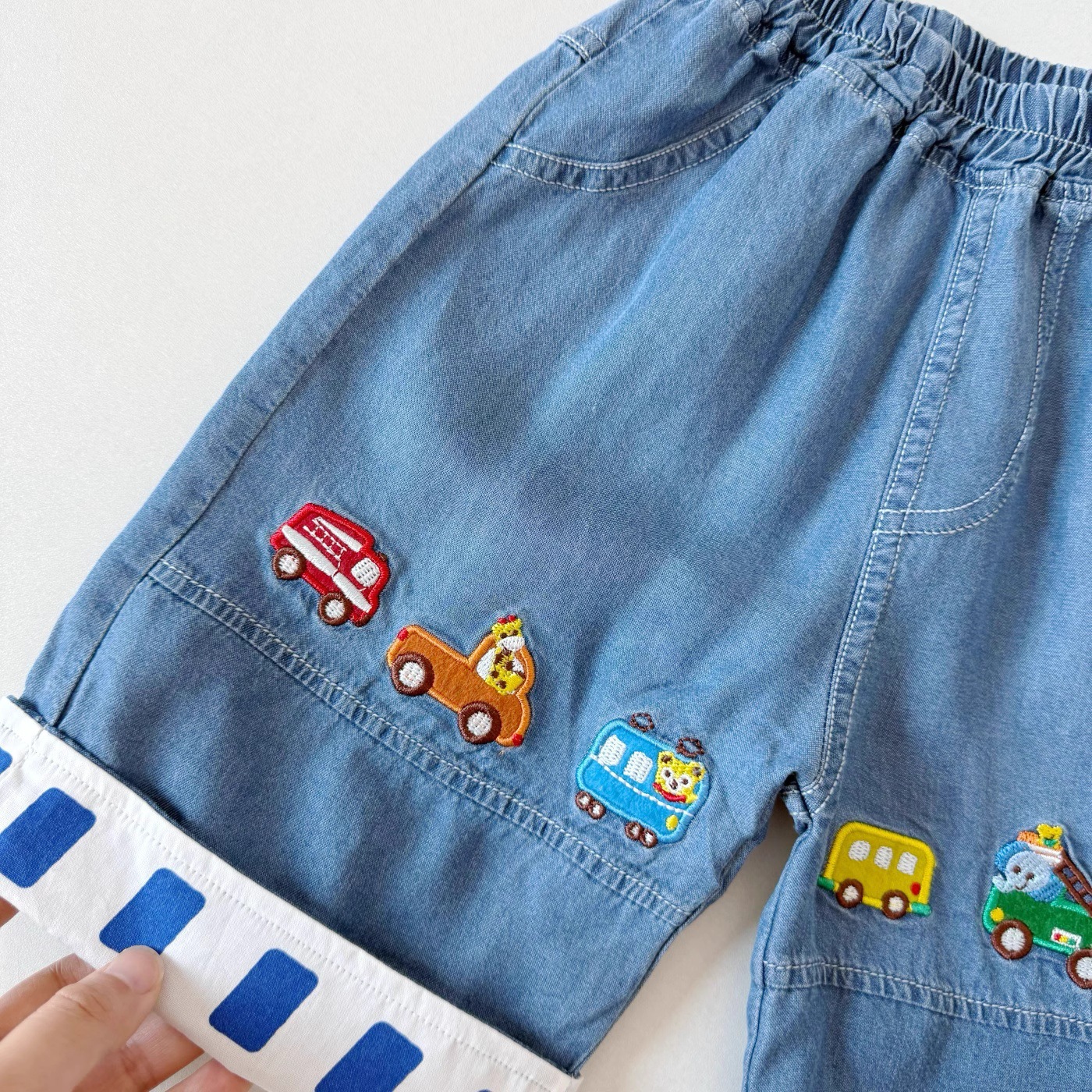 아동용 5부 바지 2025 여름 일본 소년 자수 자동차 텐셀 면 바지 아기 5부 바지 도매스토어 가기