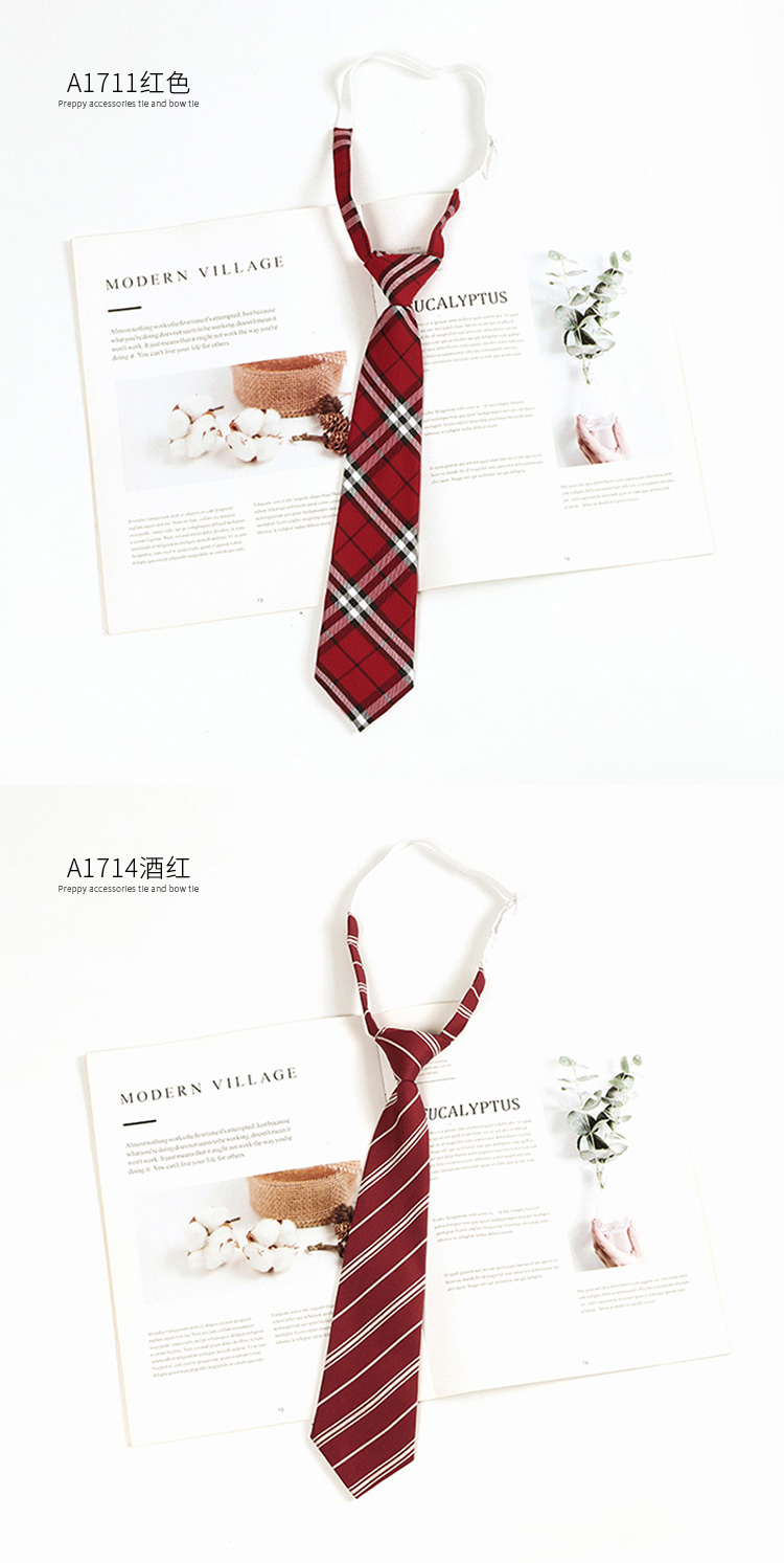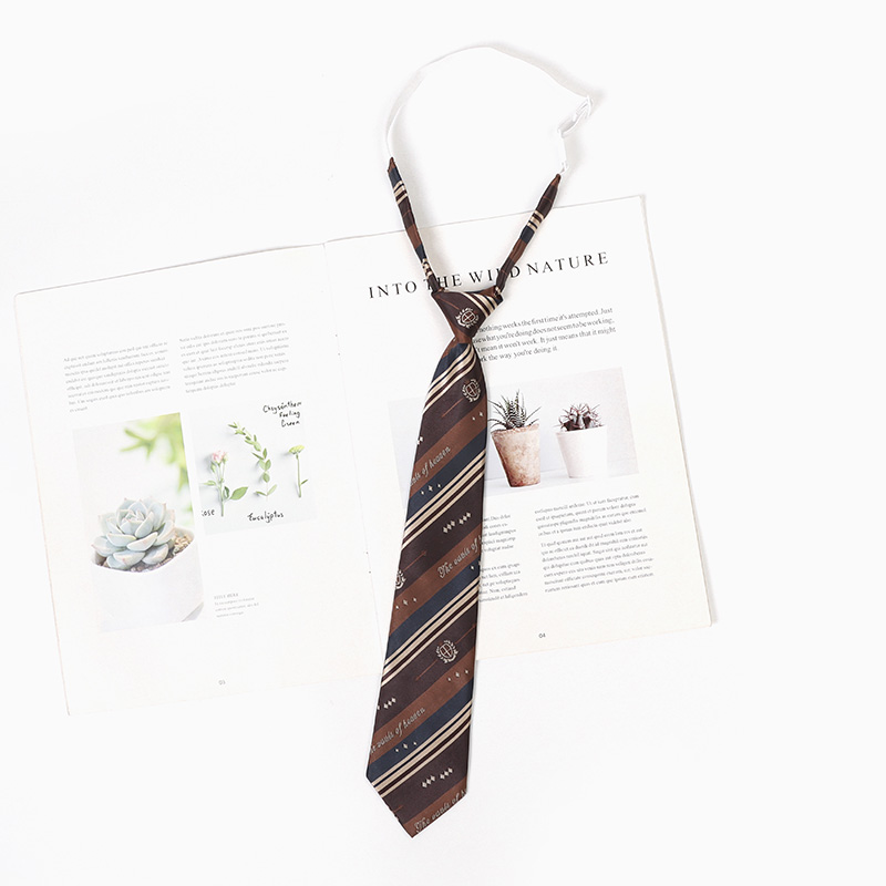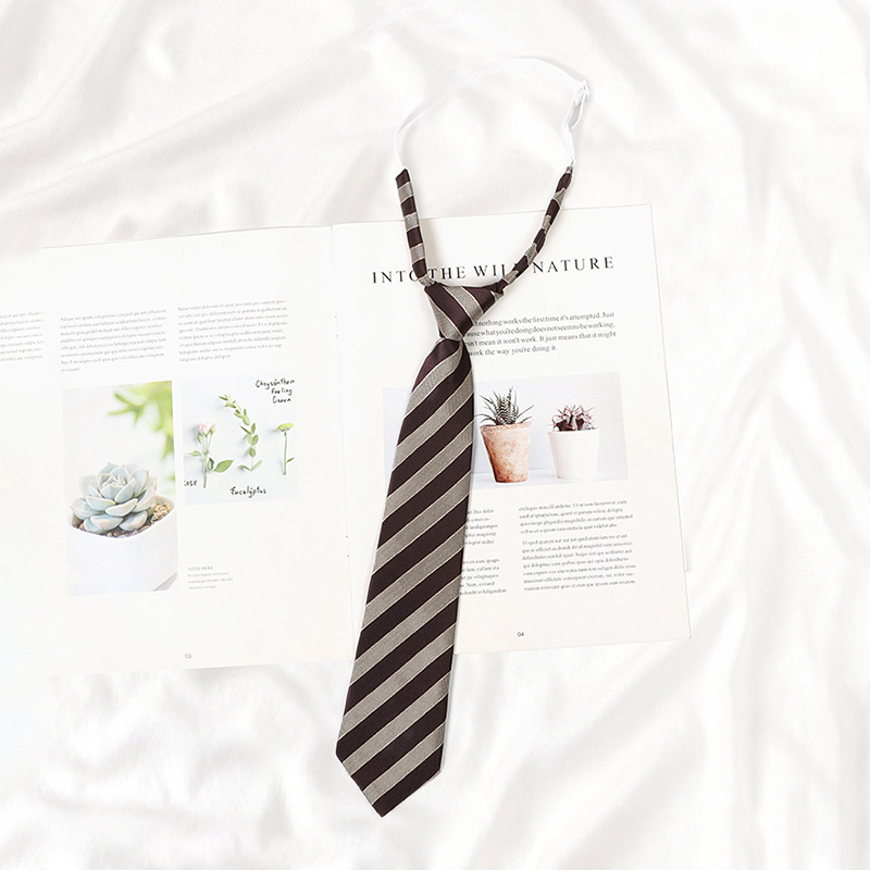 일본 jk 대학 스타일 갈색 복고풍 넥타이 여성 게으른 와인 레드 셔츠 액세서리 다목적 검은 줄무늬스토어 가기