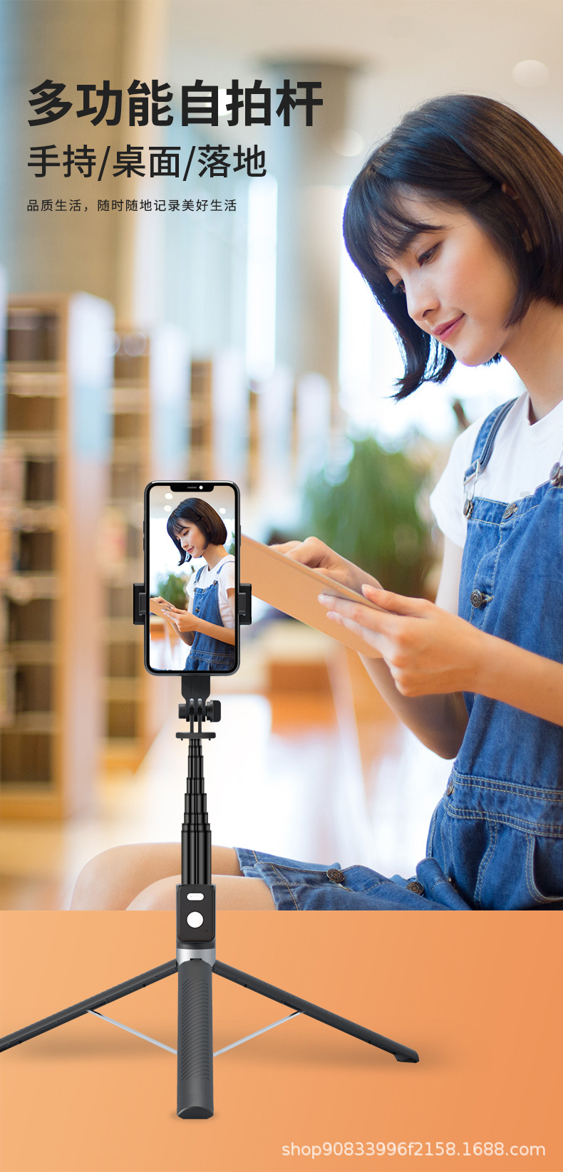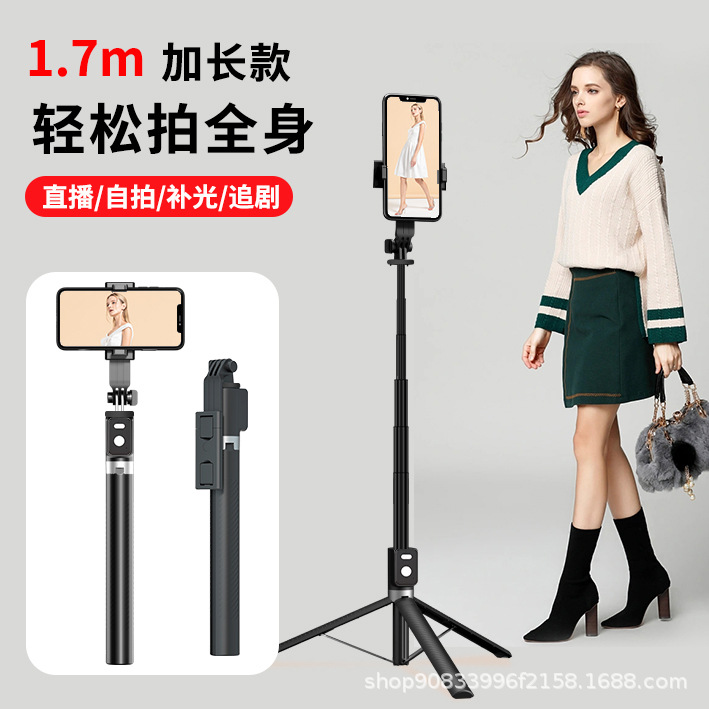 T12 휴대 전화 블루투스 셀카 스틱 1.7m 야외 휴대용 회전식 삼각대 라이브 방송 스탠드 야외 관광스토어 가기