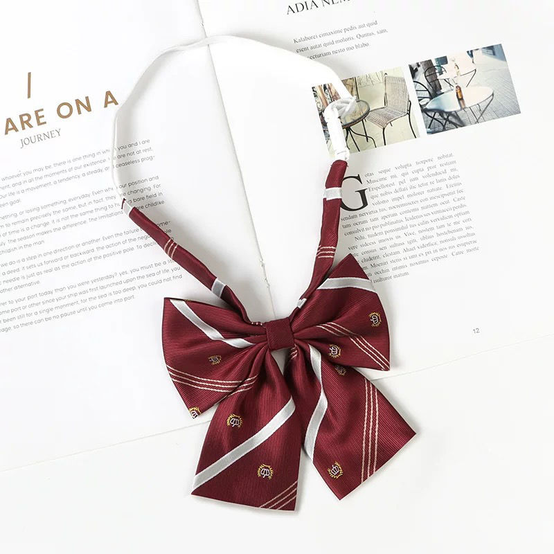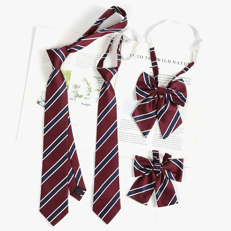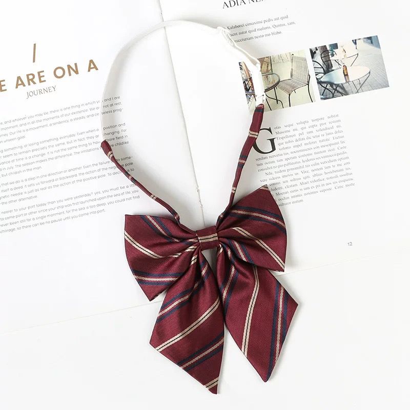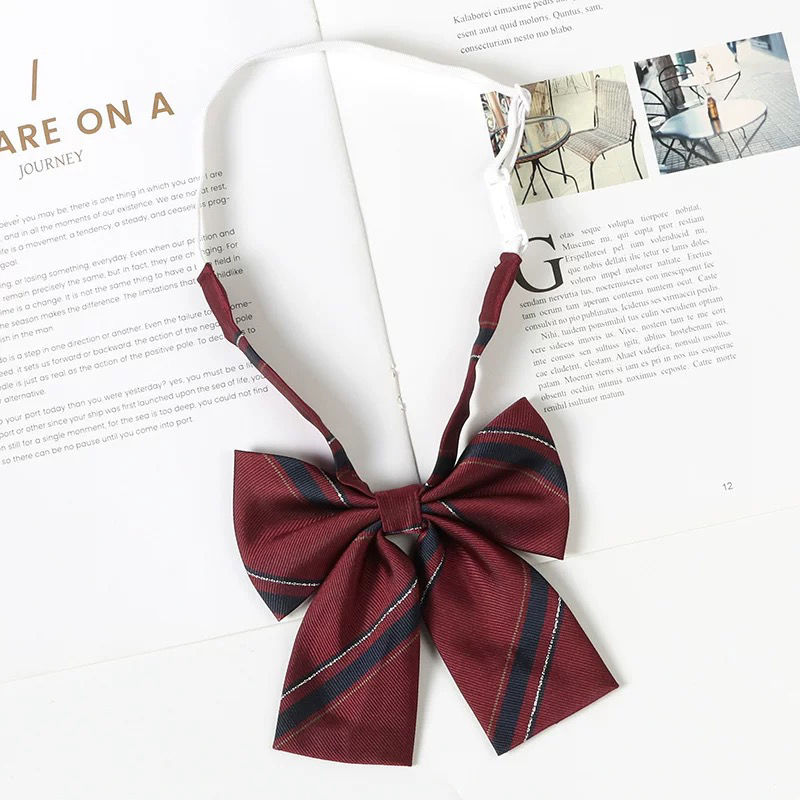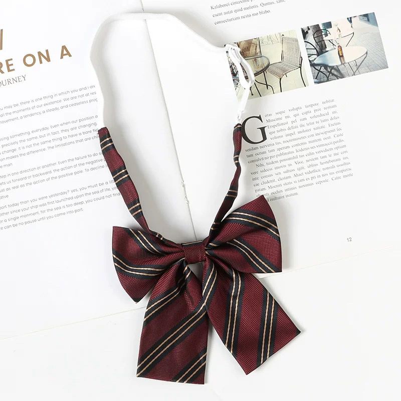 여성용 버건디 jk 넥타이 일본 대학 스타일 줄무늬 게으른 무료 졸업 사진 학사복 나비 넥타이 교복 액세서리