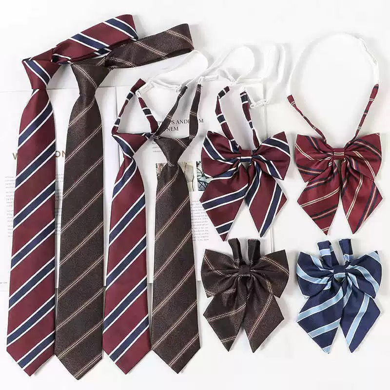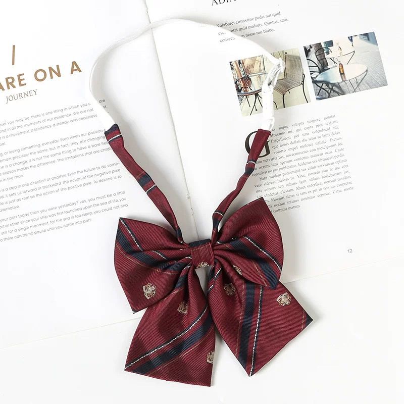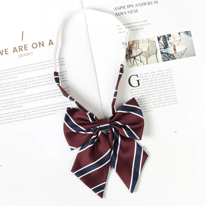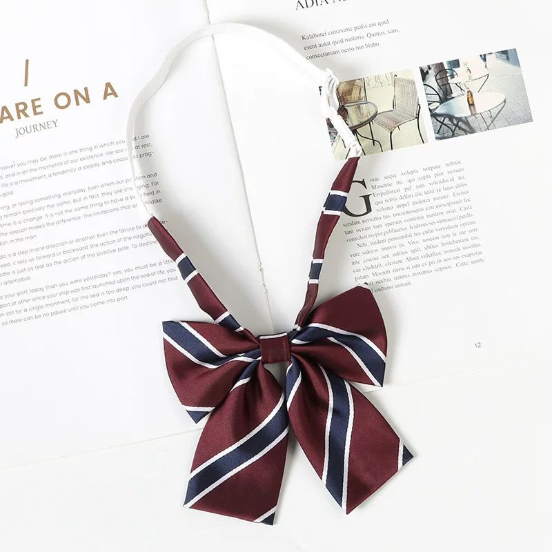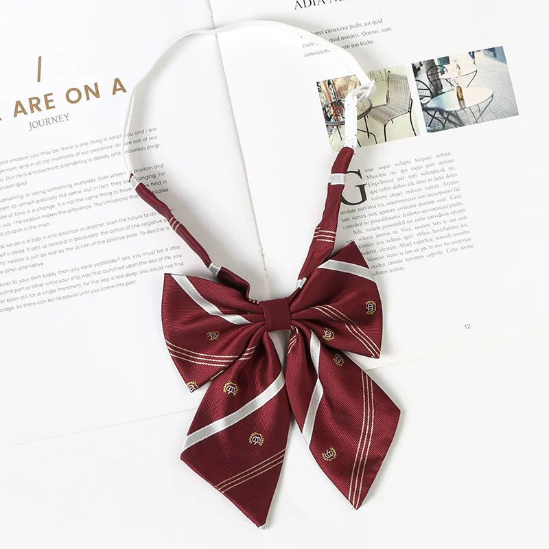 여성용 버건디 jk 넥타이 일본 대학 스타일 줄무늬 게으른 무료 졸업 사진 학사복 나비 넥타이 교복 액세서리