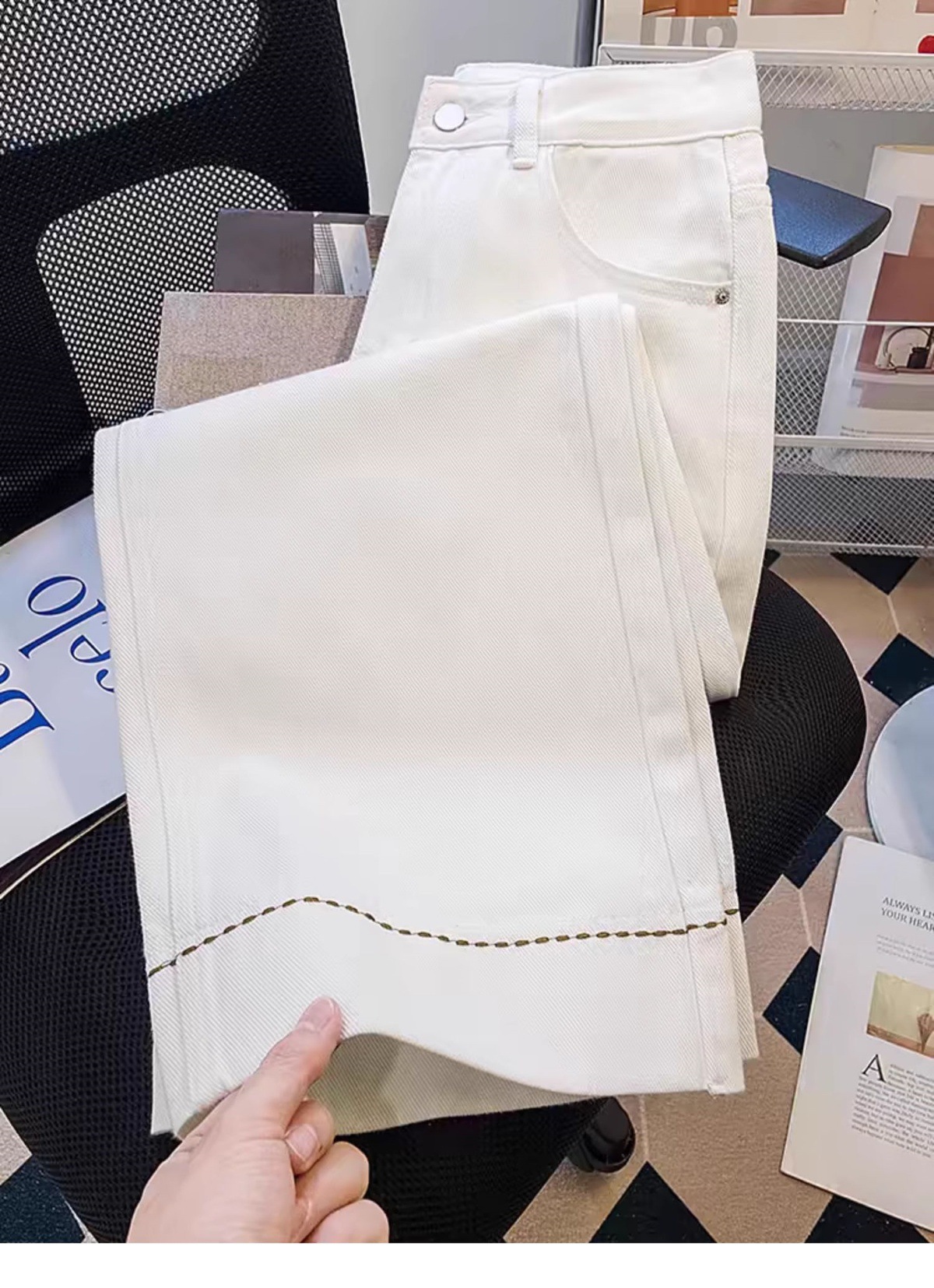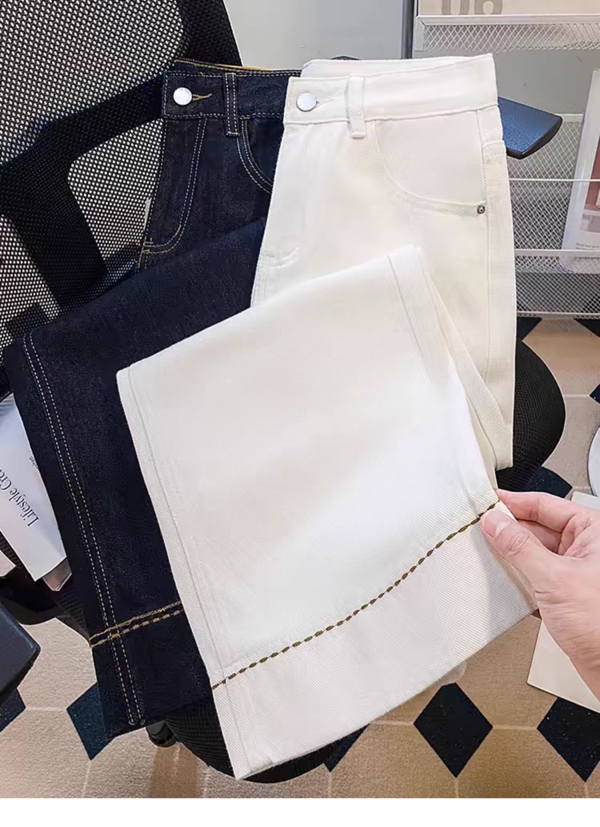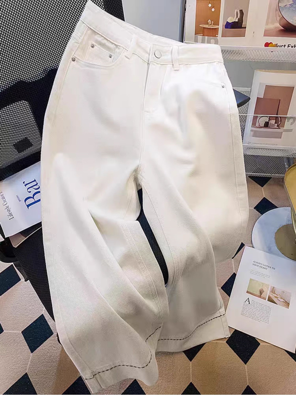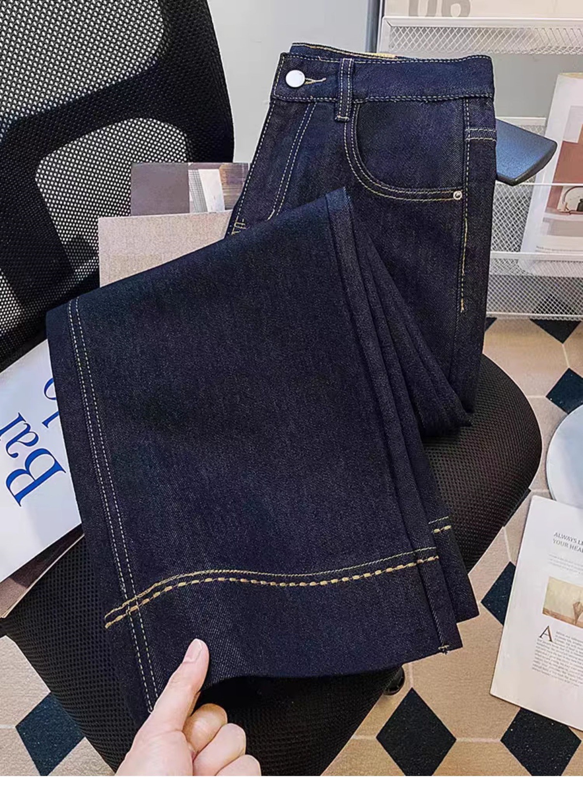 여성용 9부 청바지 2025 여름 얇은 대형 배형 바디 루즈 하이 웨이스트 슬림 스트레이트 와이드 팬츠스토어 가기