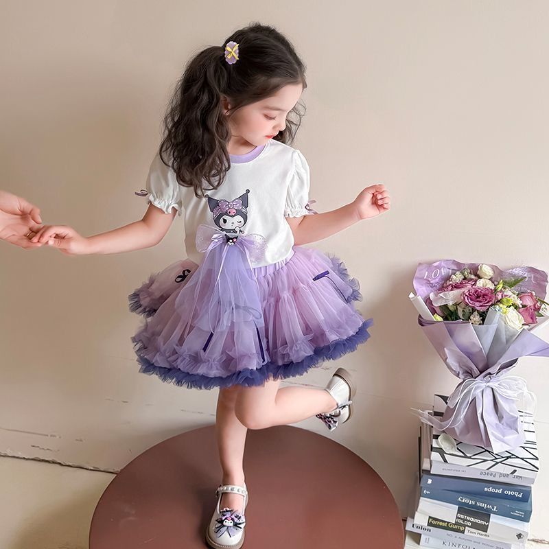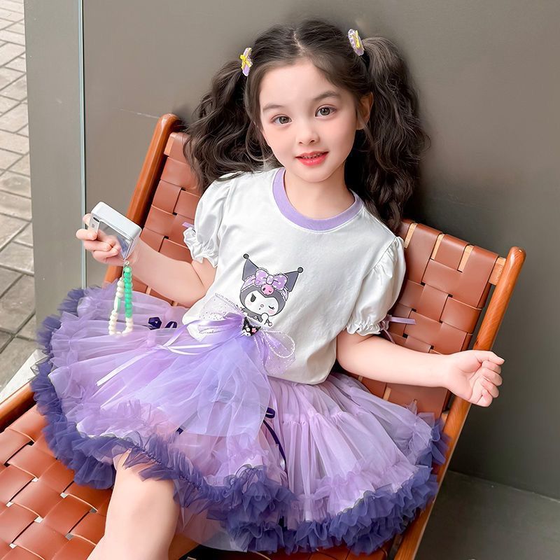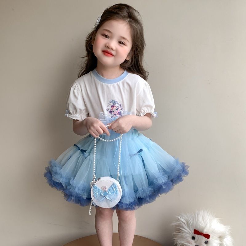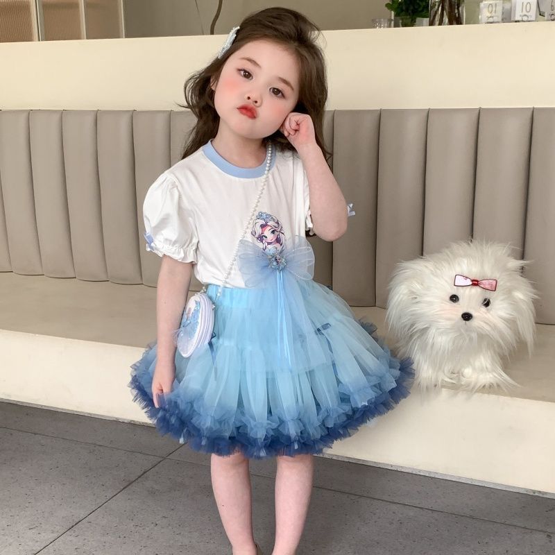여름 인터넷 연예인 인기 소녀 정장 반팔 귀여운 만화 탑 티셔츠 투피스 세트 공주 퍼프 케이크 스커트