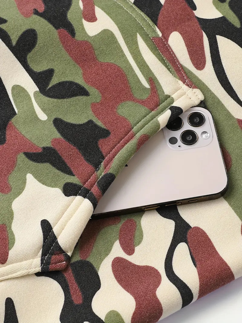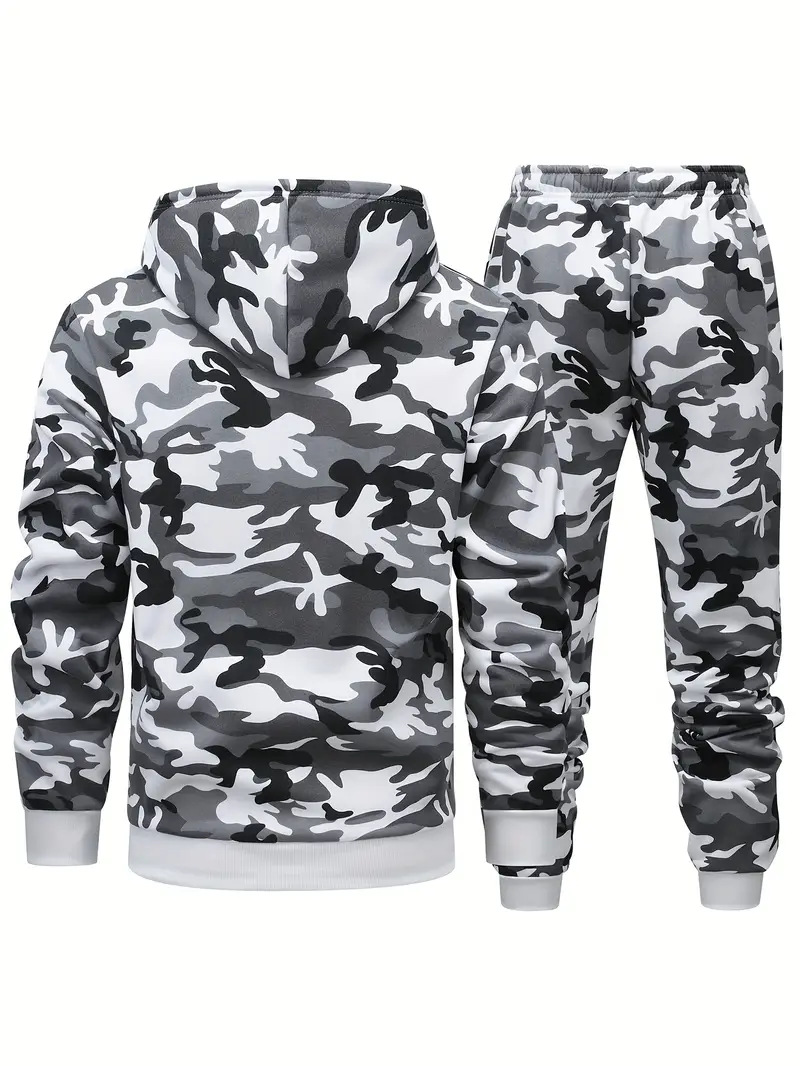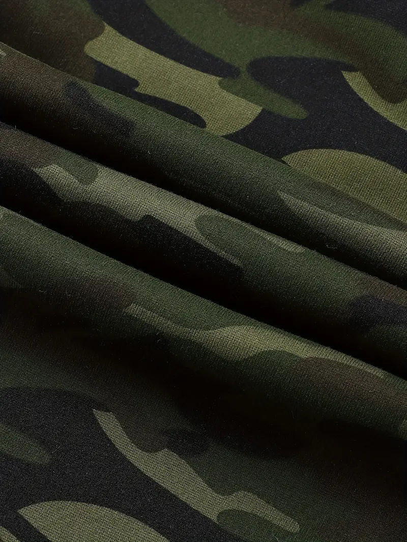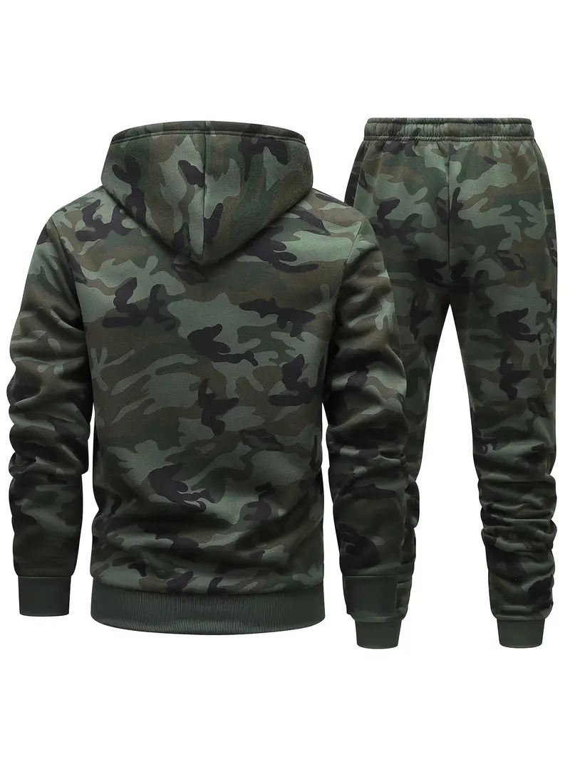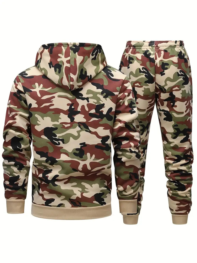 2025 국경 간 인기 군용 녹색 위장 프린트 슈트 야외 레저 스포츠 슈트 후드 티셔츠 및 스웨트 팬츠 슈트
