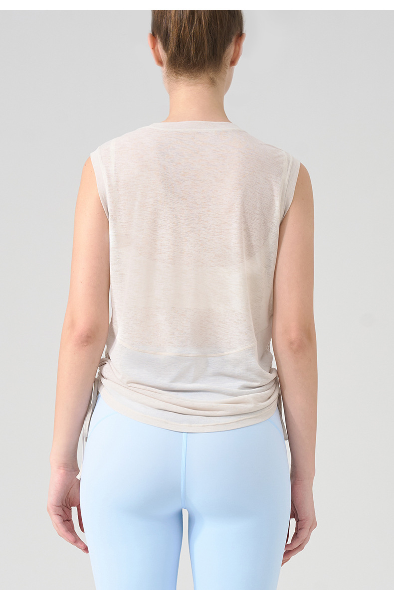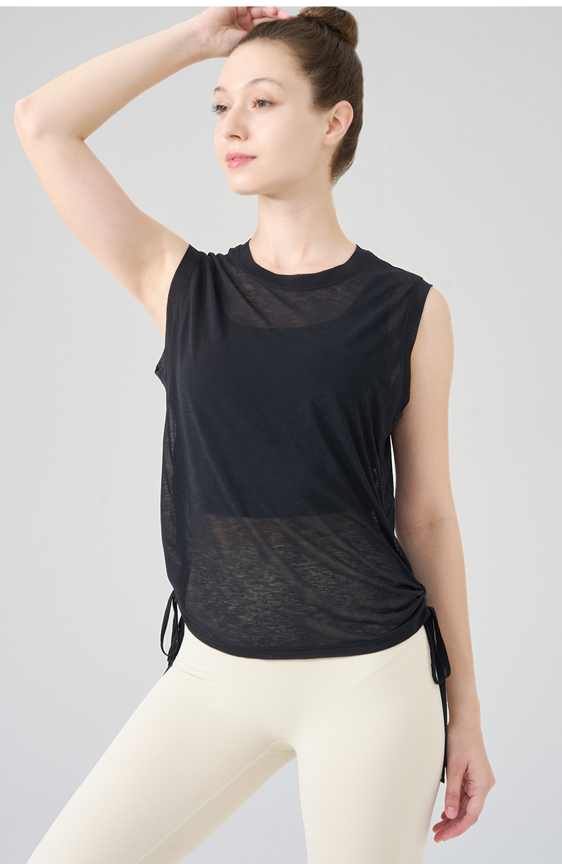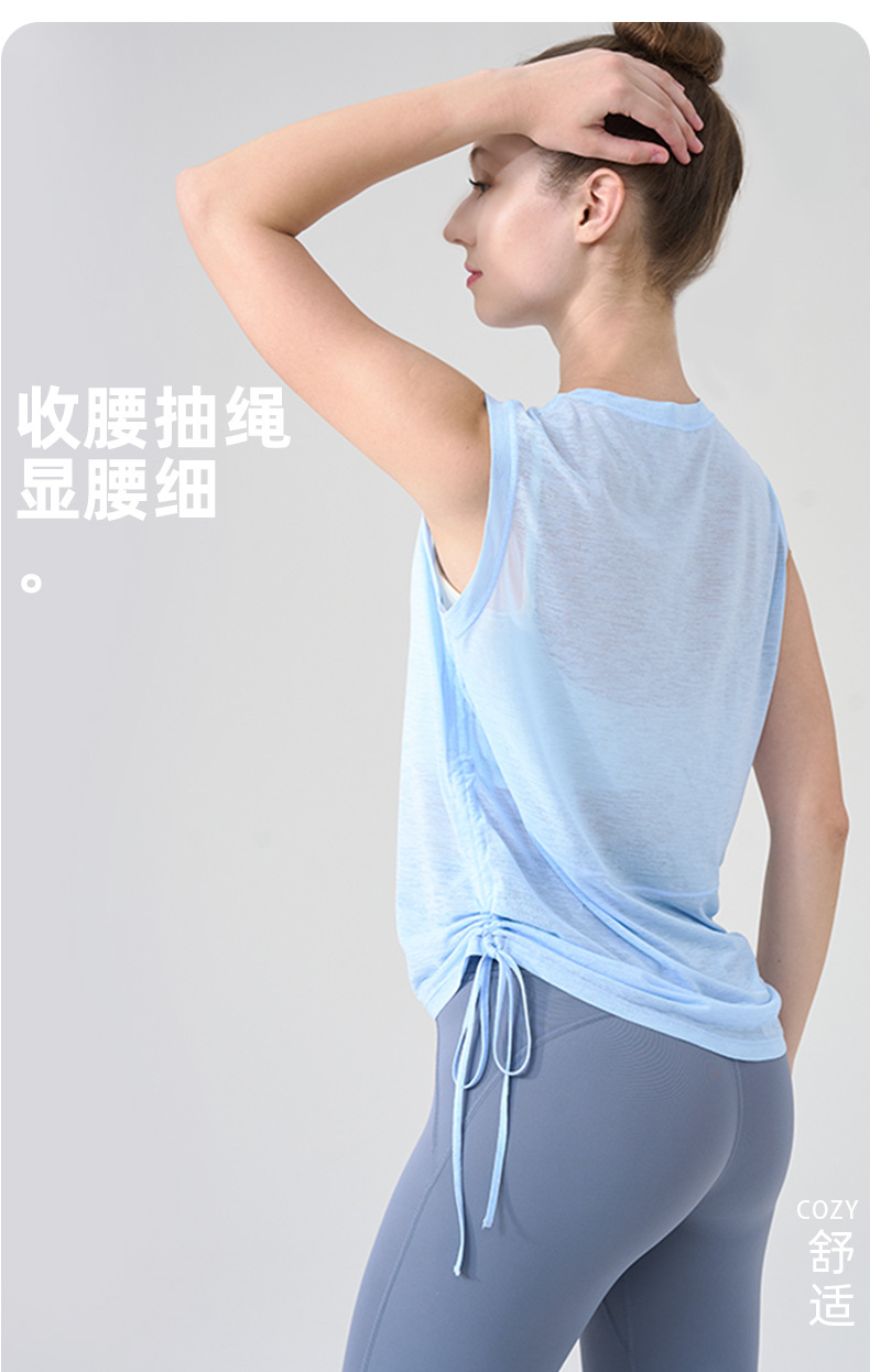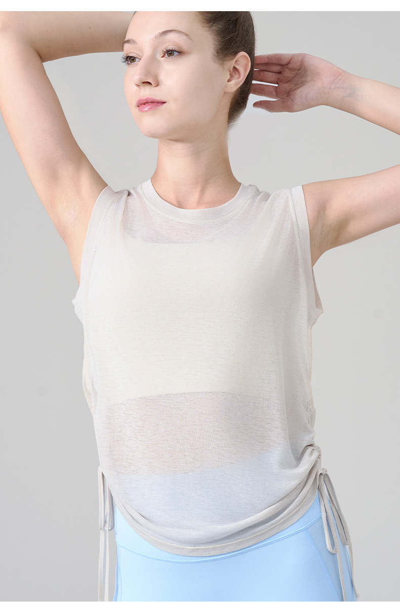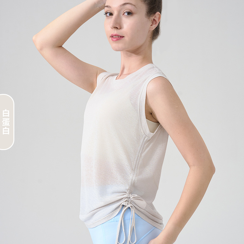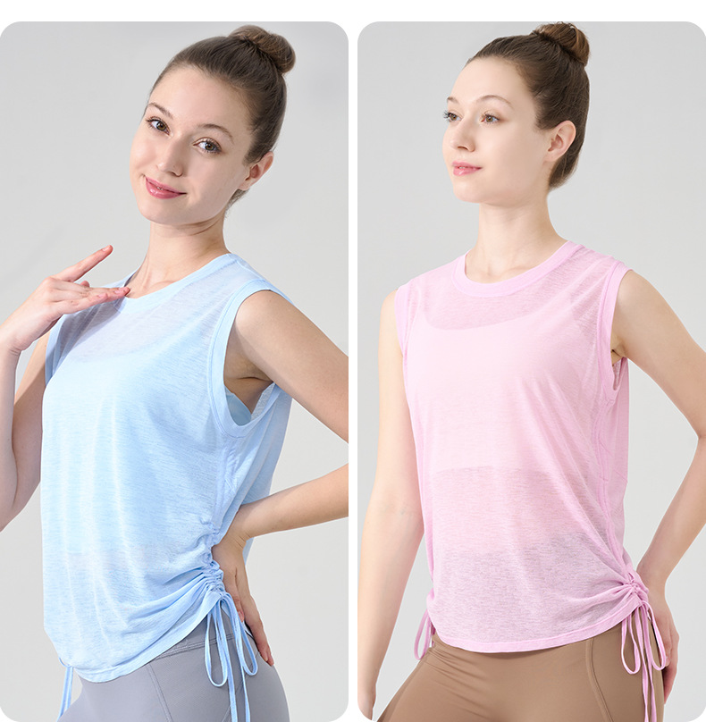 대나무 원사 요가 조끼 여성 여름 통기성 느슨한 풀오버 민소매 스포츠 탑 밑단 Drawstring 요가 커버 업